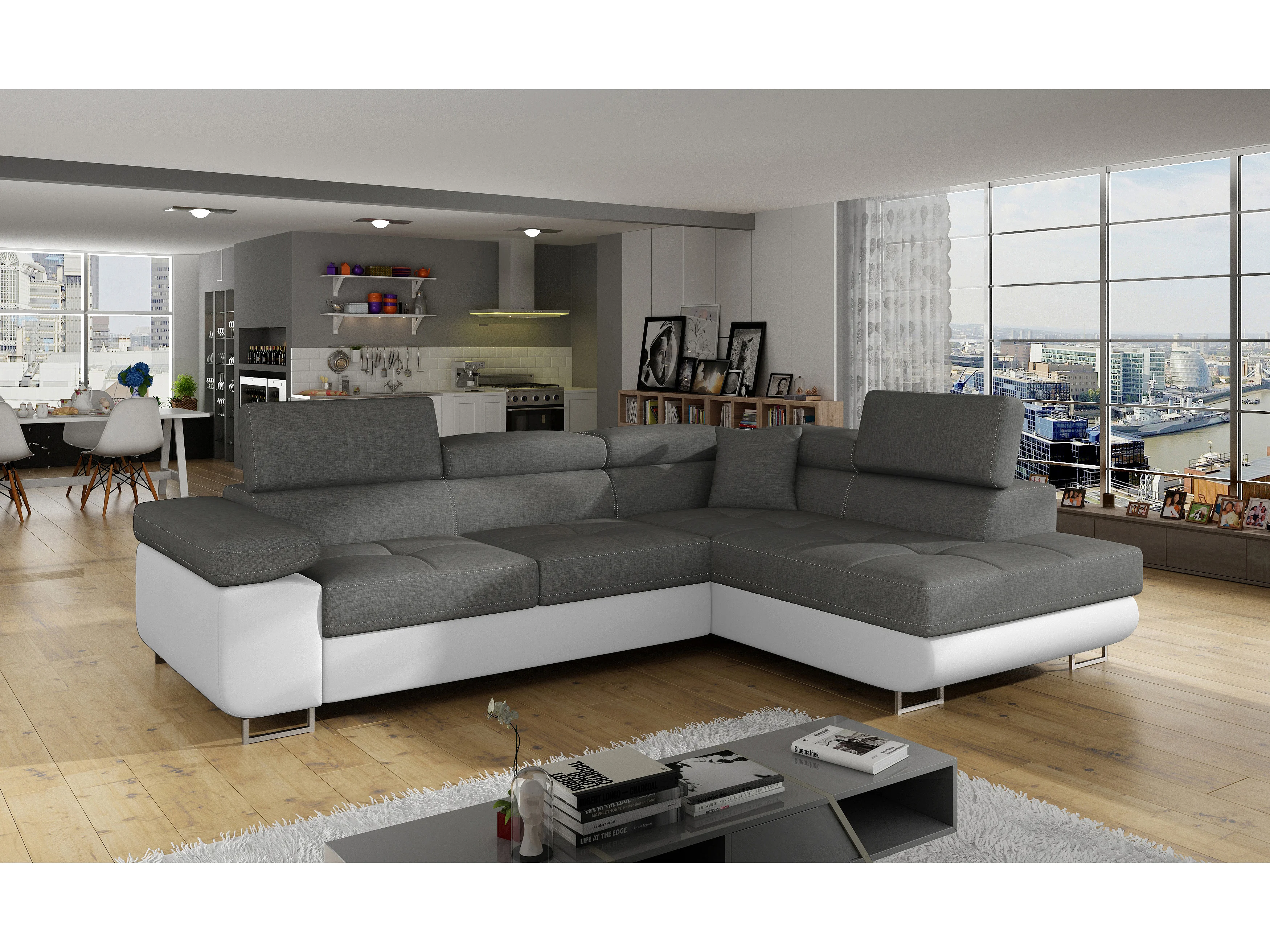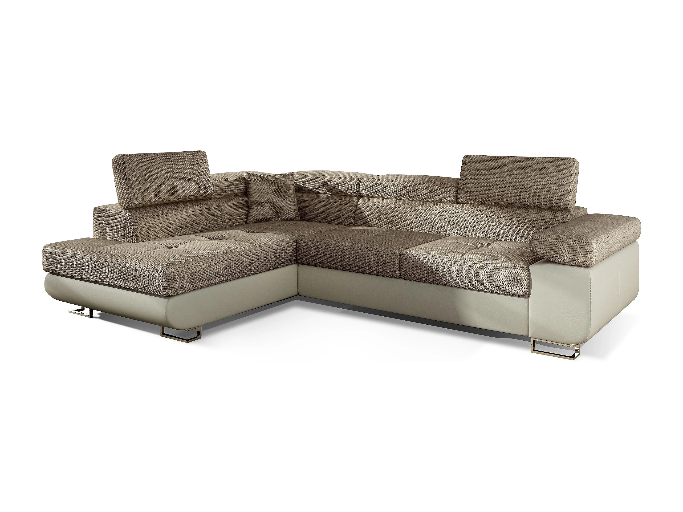 Sofá esquinero convertible en símil piel y tela reposacabezas elevables - Colección Marka-Beige claro/Beige jaspeado-Ángulo izquierdo