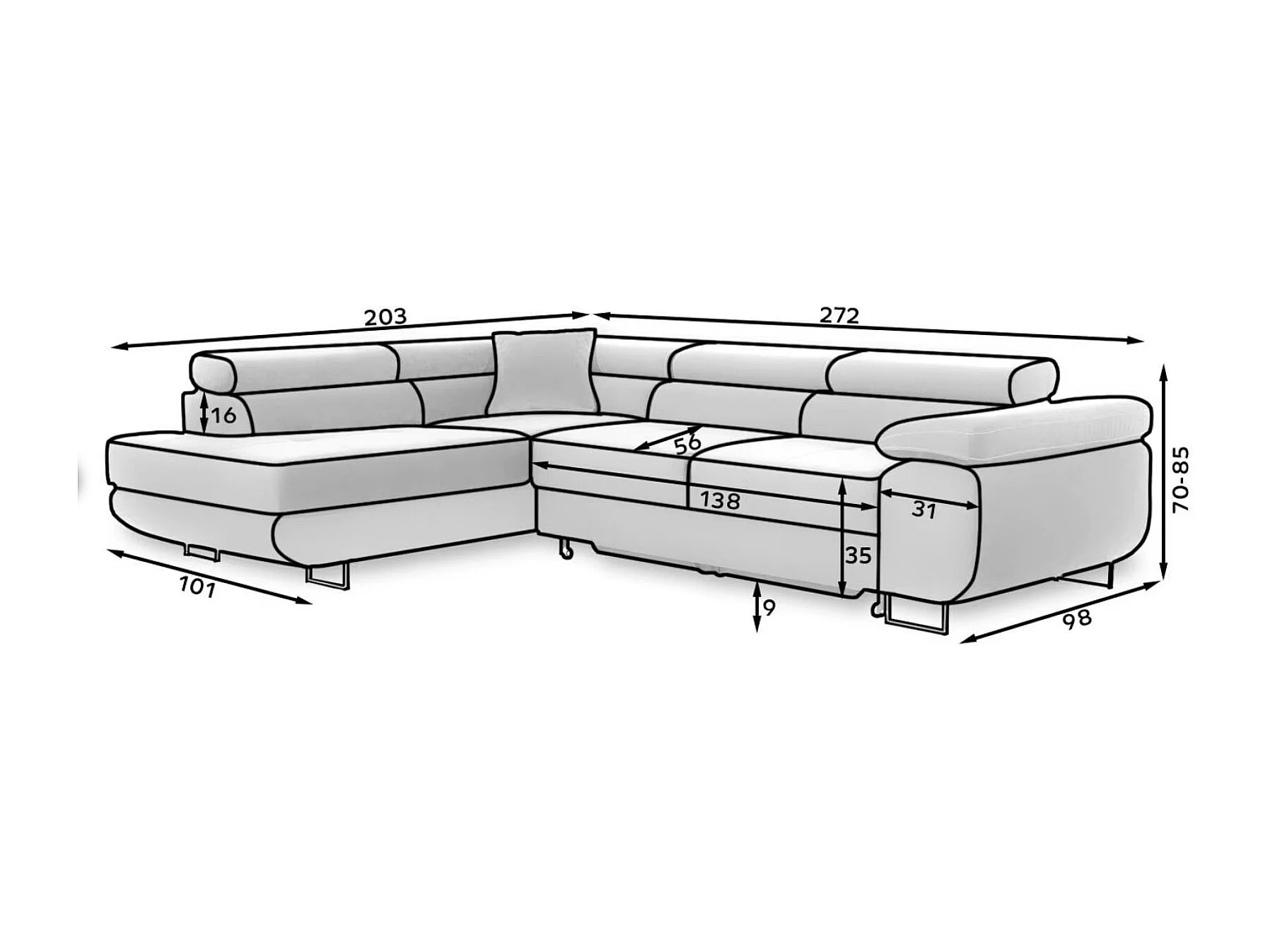 Sofá esquinero convertible en símil piel y tela reposacabezas elevables - Colección Marka-Negro/Gris oscuro-Ángulos rectos