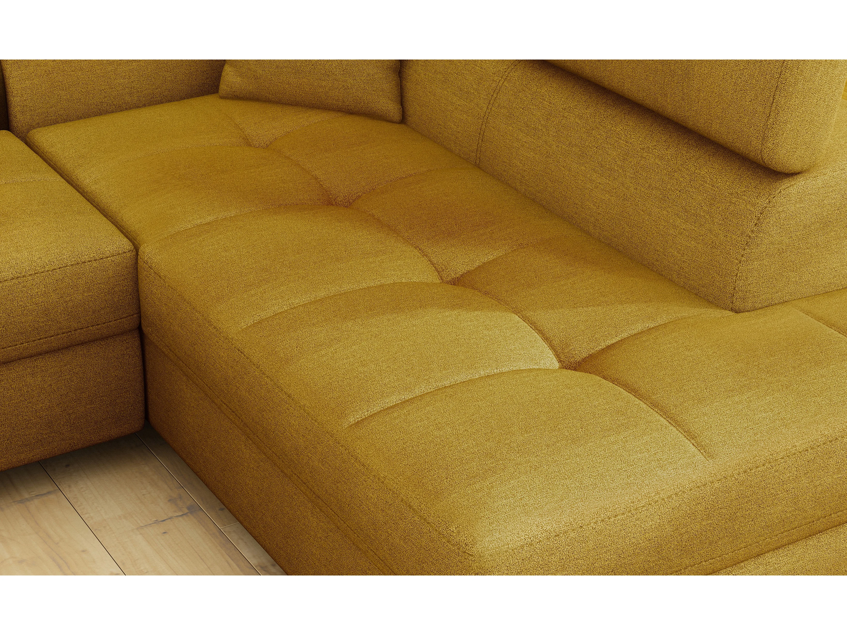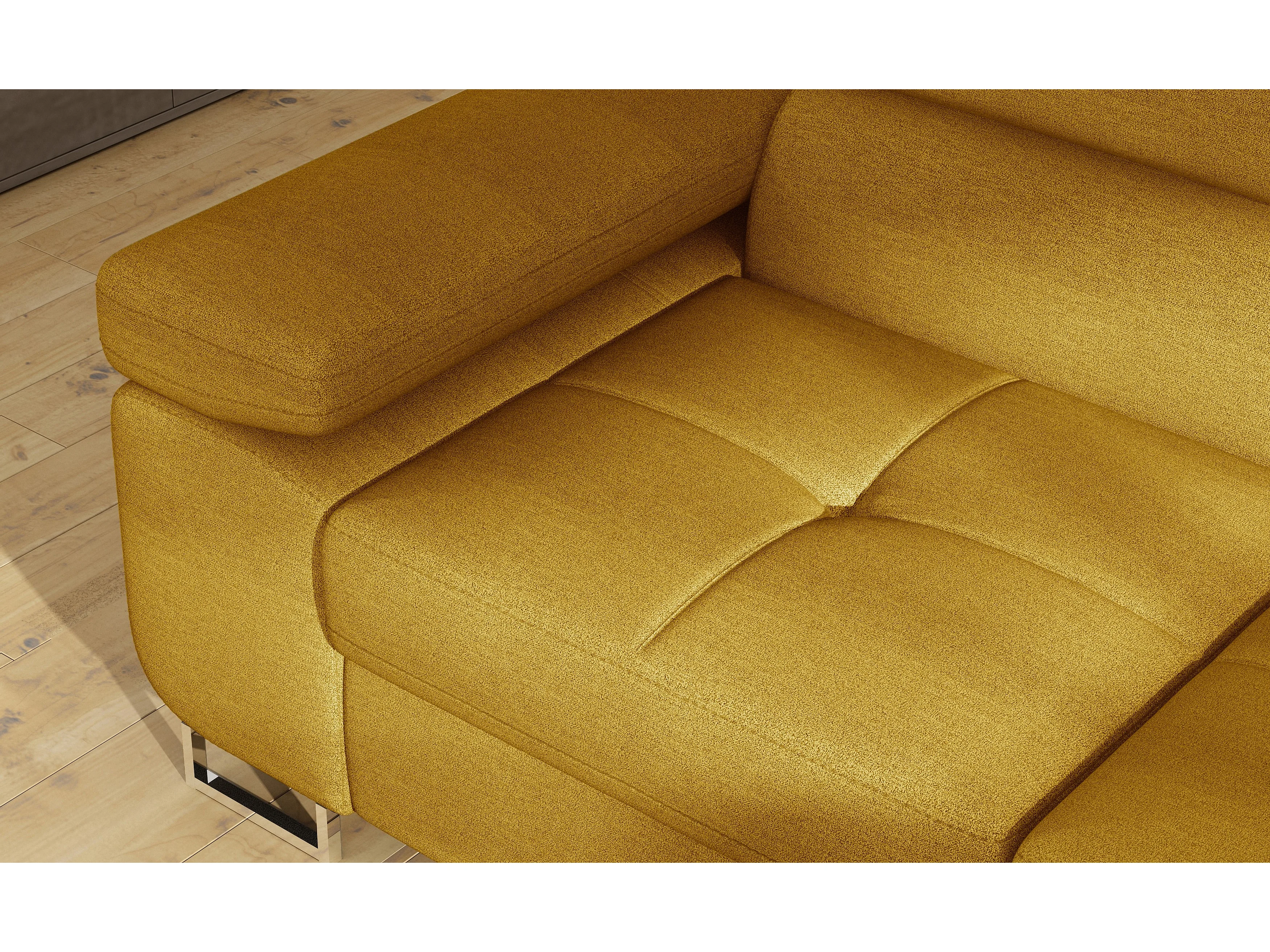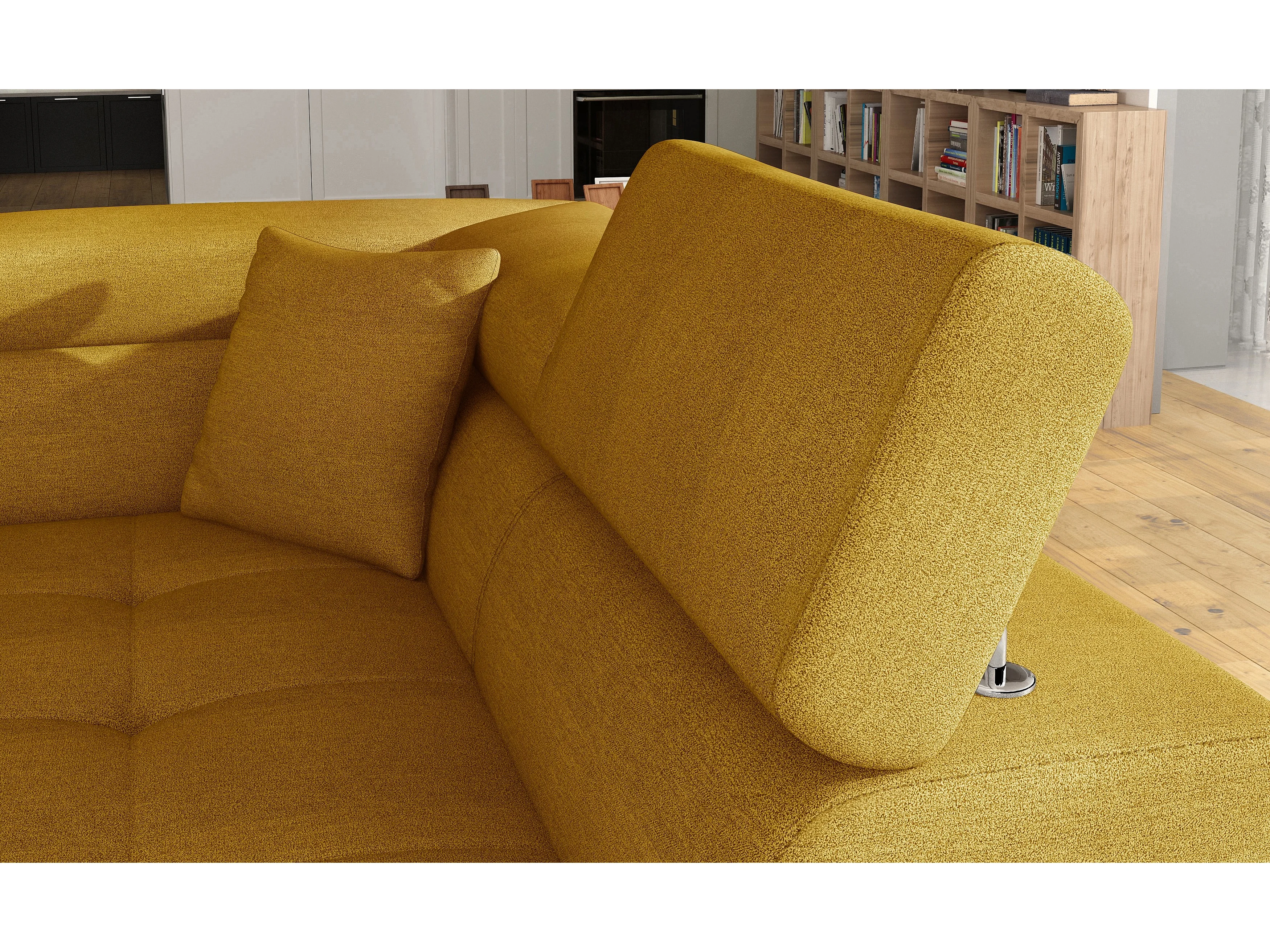 Sofá esquinero convertible en terciopelo con reposacabezas elevables - Colección Marka-Amarillo mostaza-Ángulos rectos