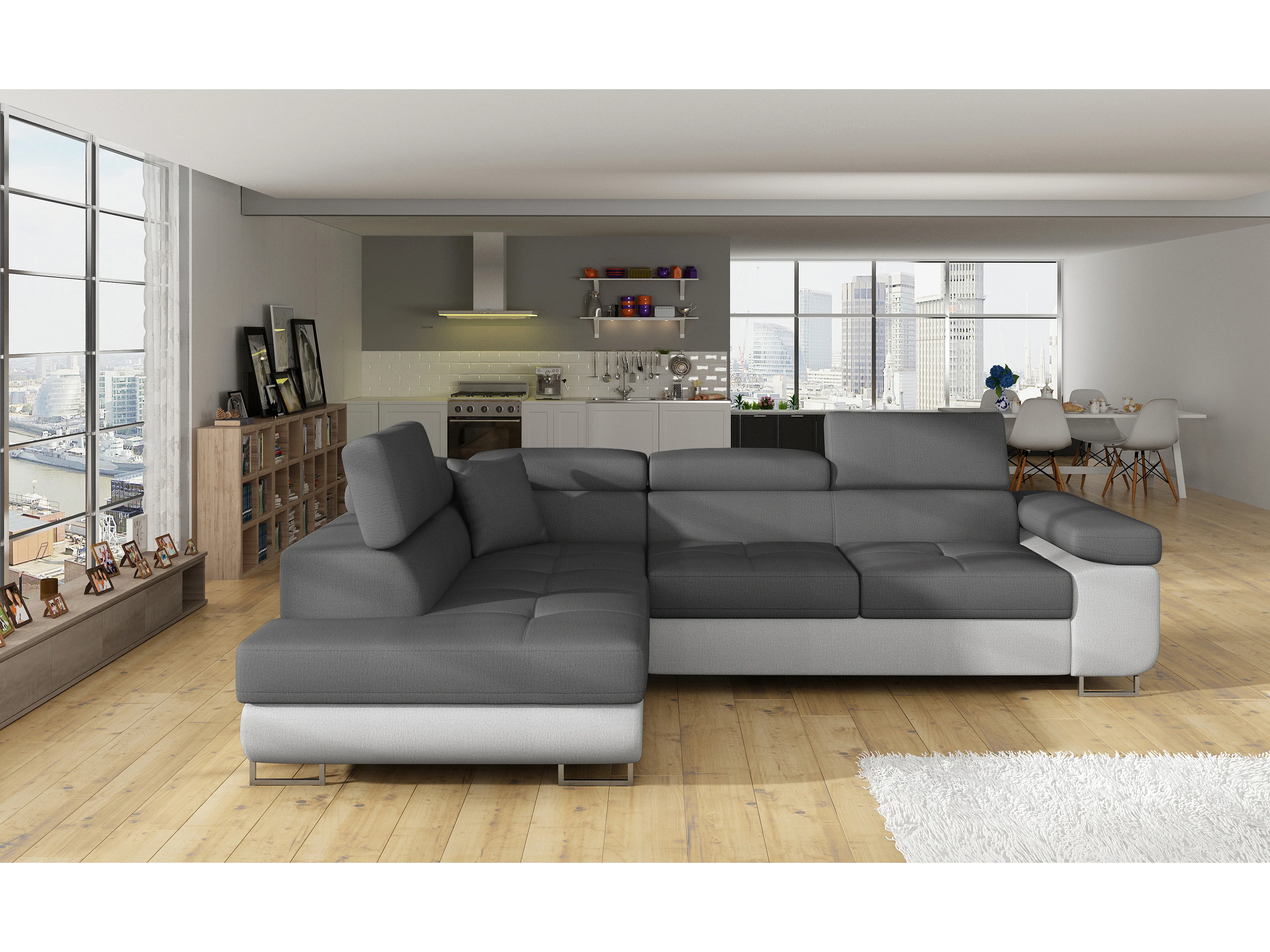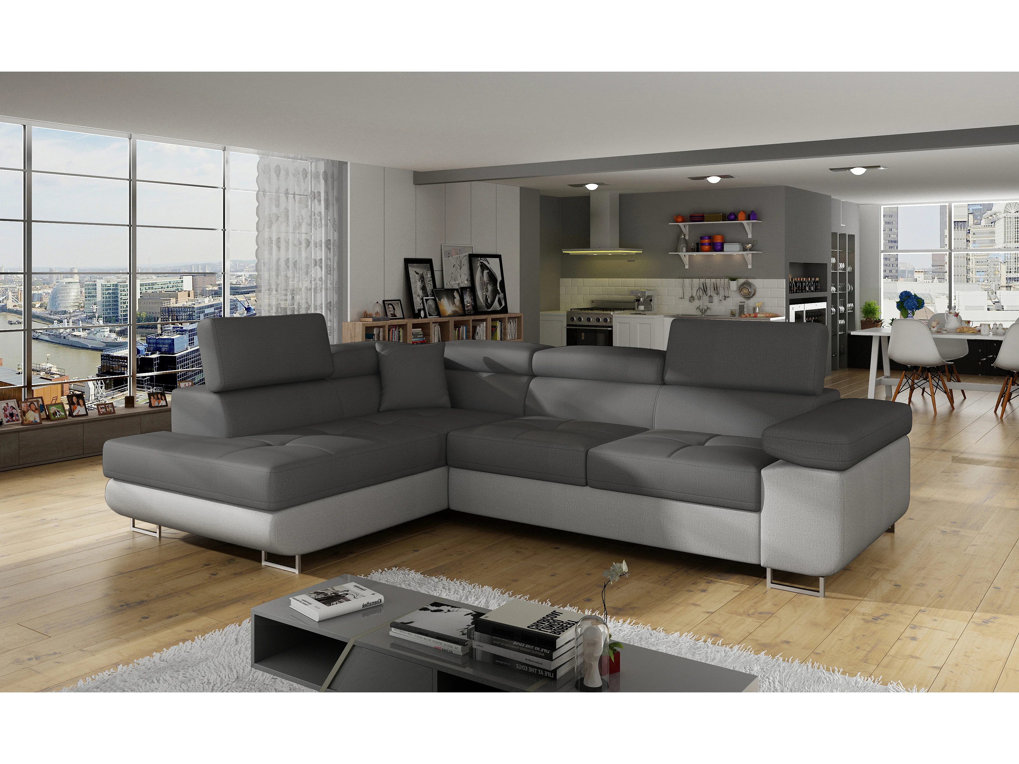 Sofá esquinero convertible en terciopelo con reposacabezas elevables - Colección Marka-Gris/Gris oscuro-Ángulo izquierdo