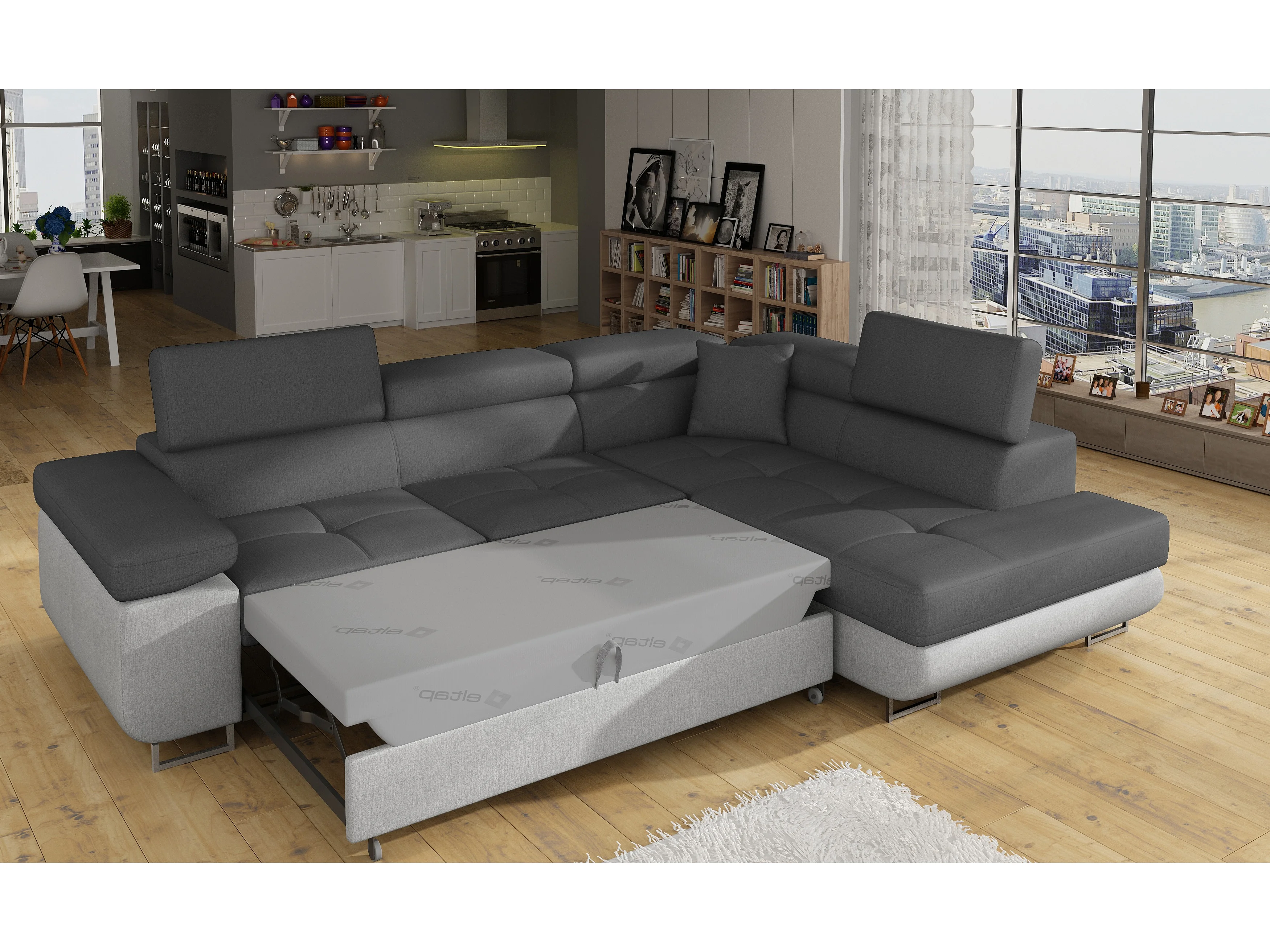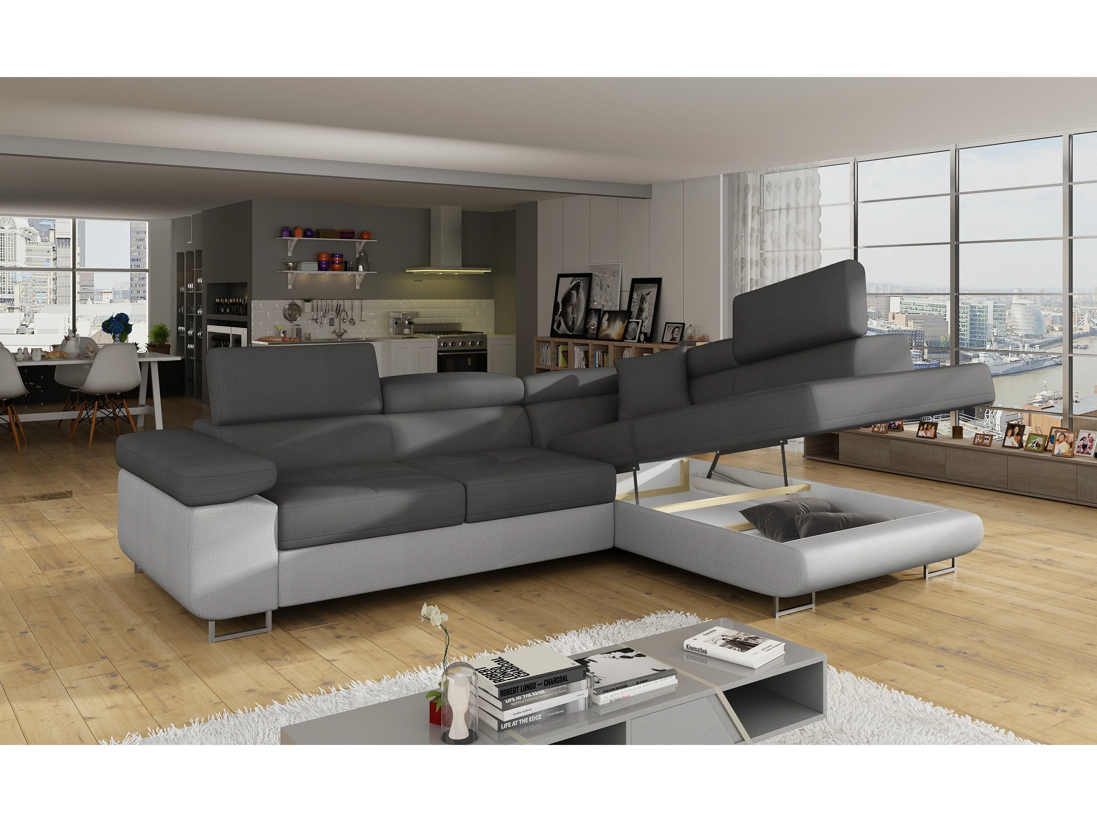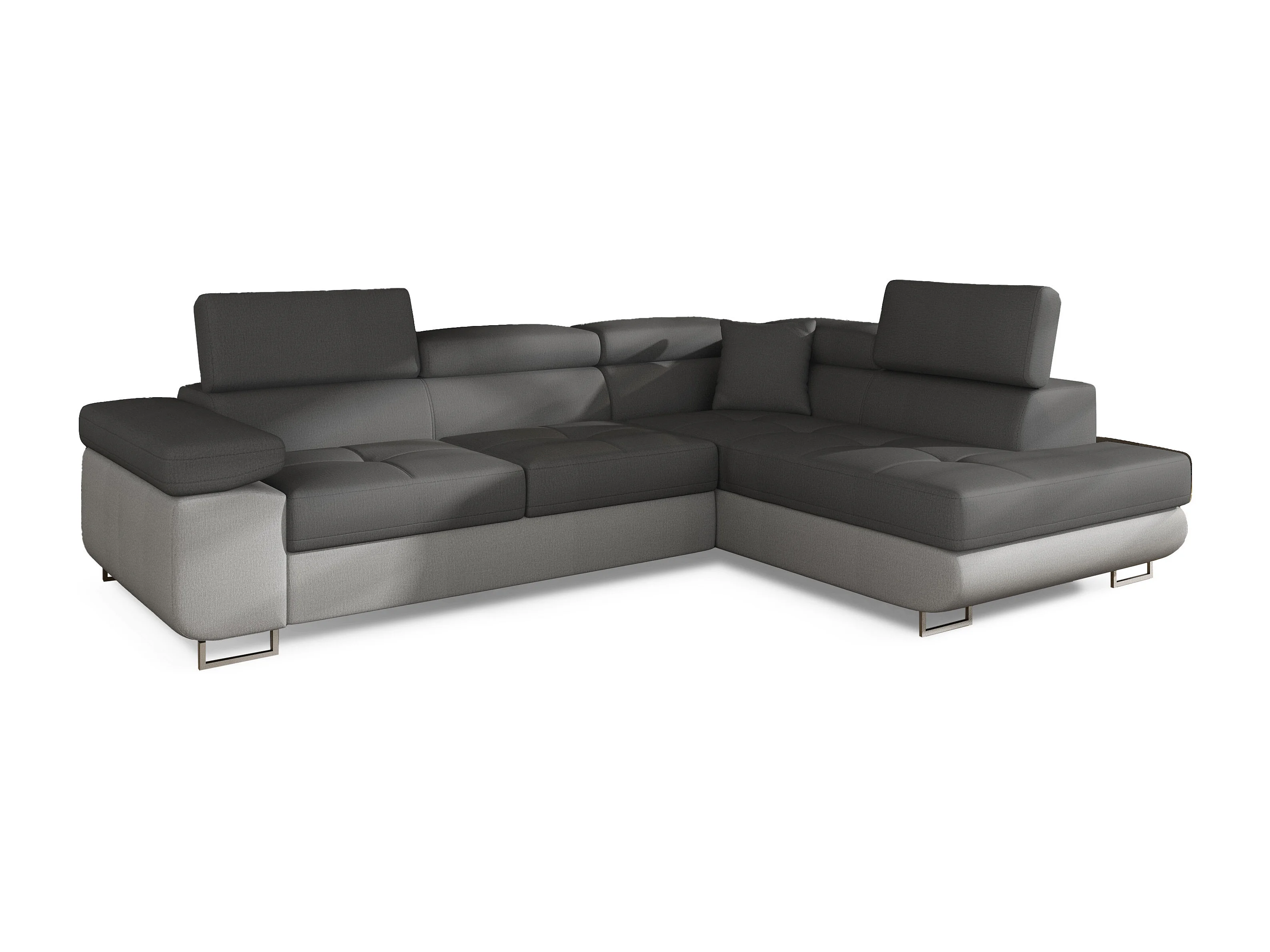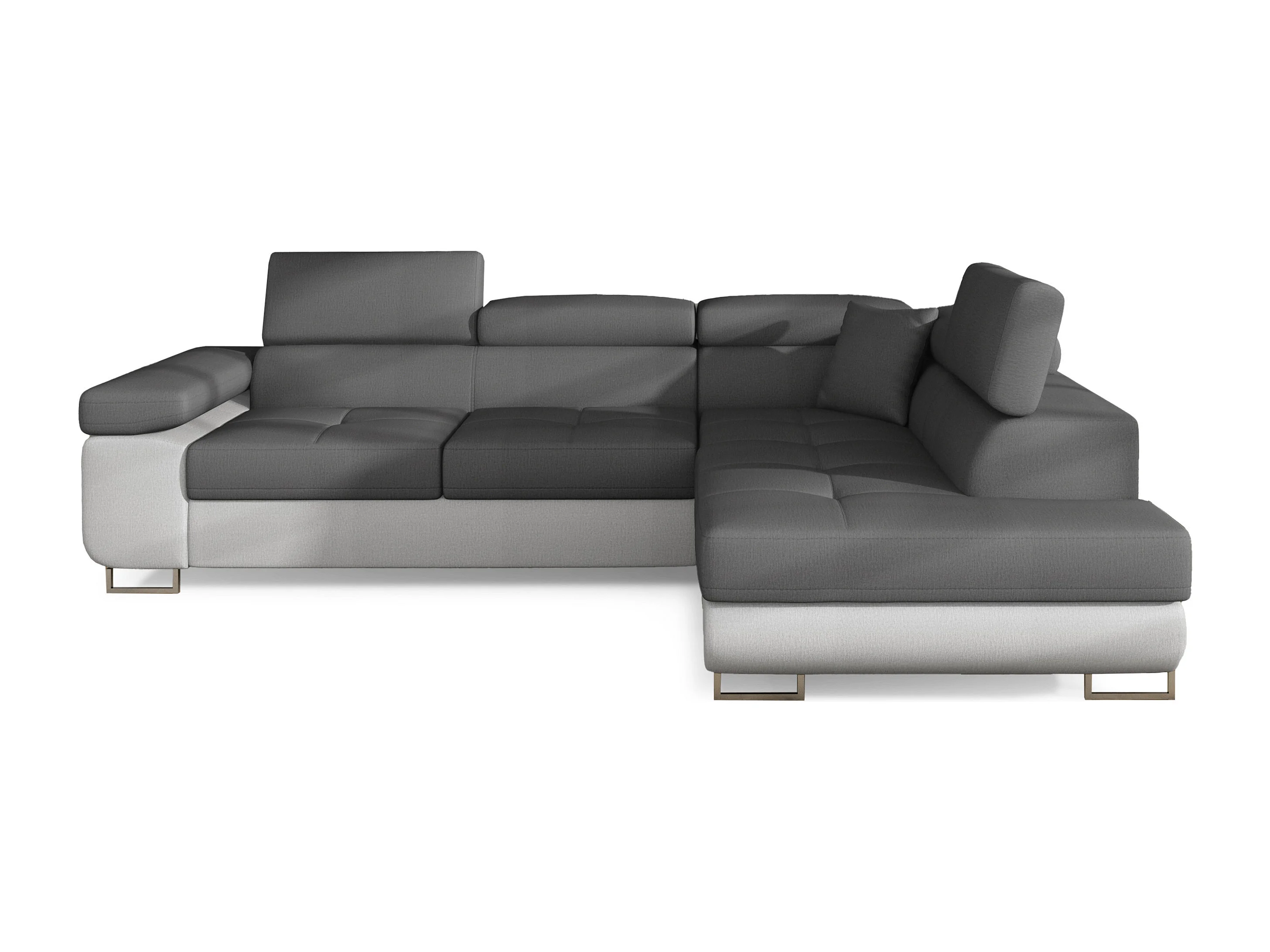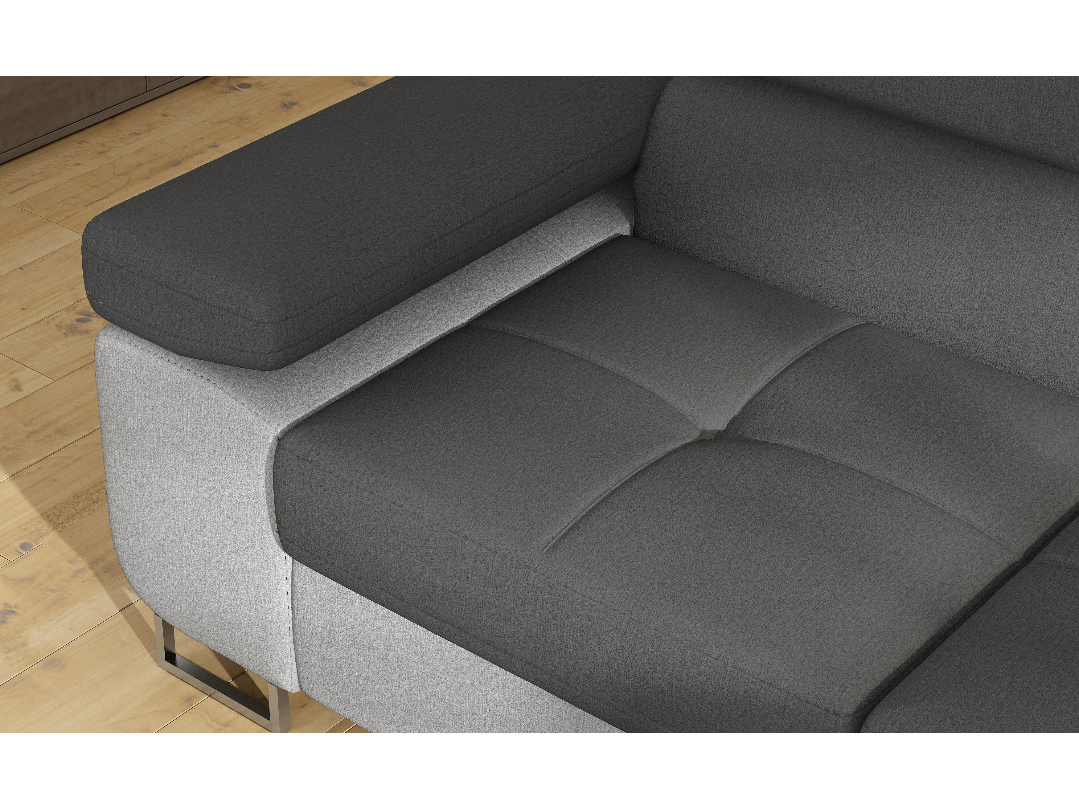 Sofá esquinero convertible en terciopelo con reposacabezas elevables - Colección Marka-Gris/Gris oscuro-Ángulos rectos