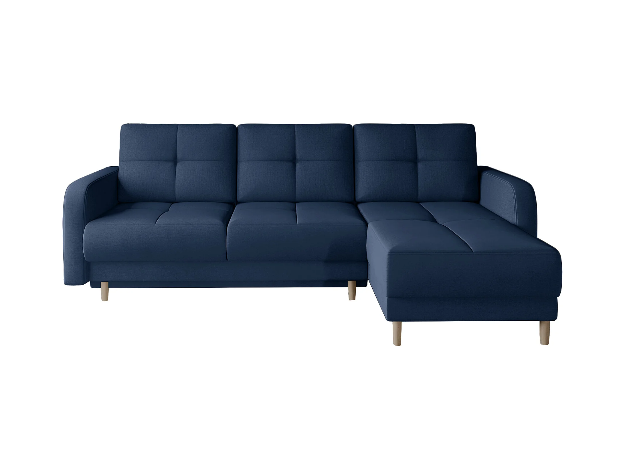 Sofá esquinero convertible y reversible de tela KINDO - Patas de madera clara-Color Azul oscuro