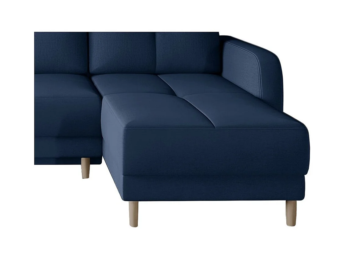 Sofá esquinero convertible y reversible de tela KINDO - Patas de madera clara-Color Azul marino