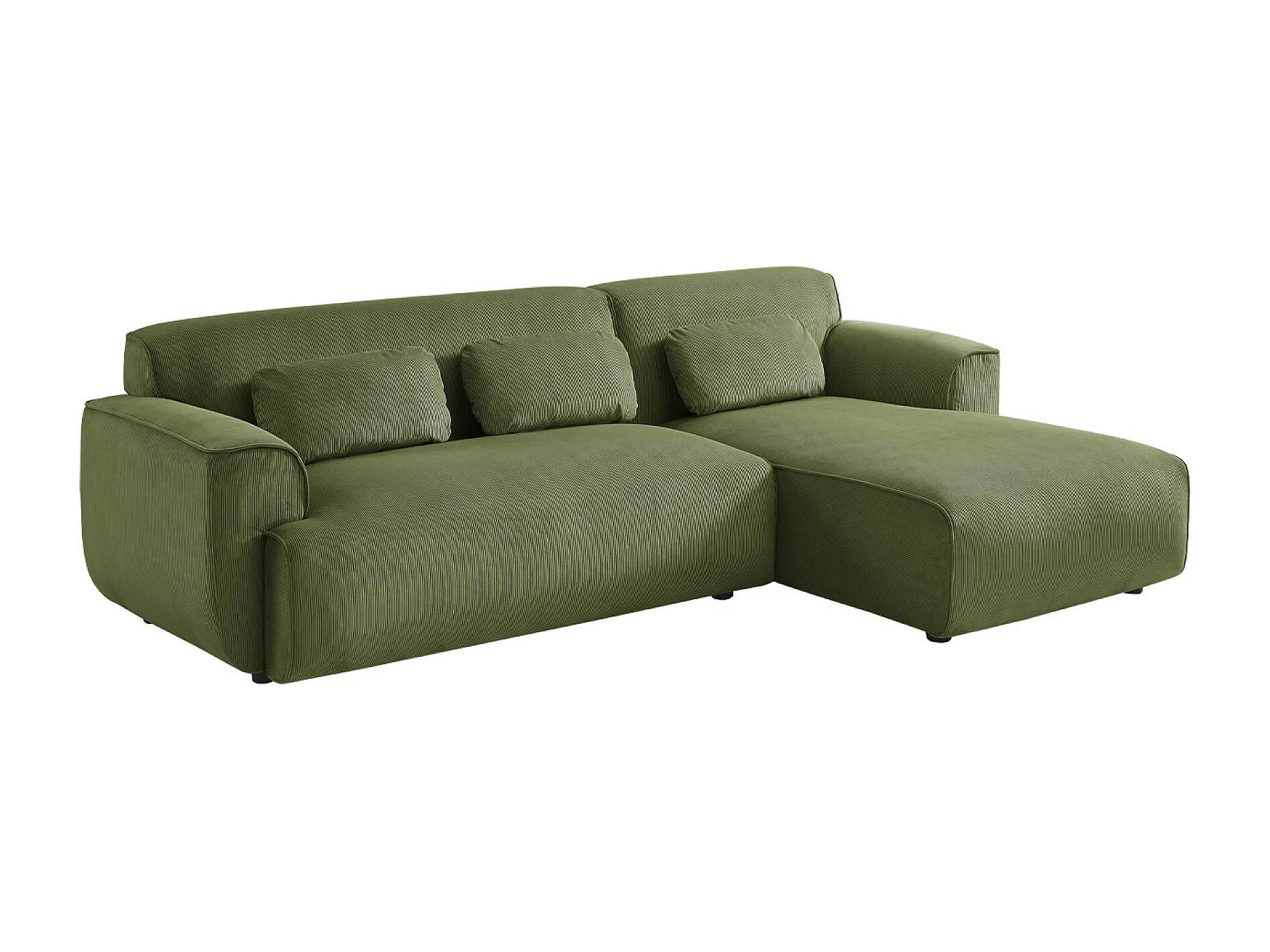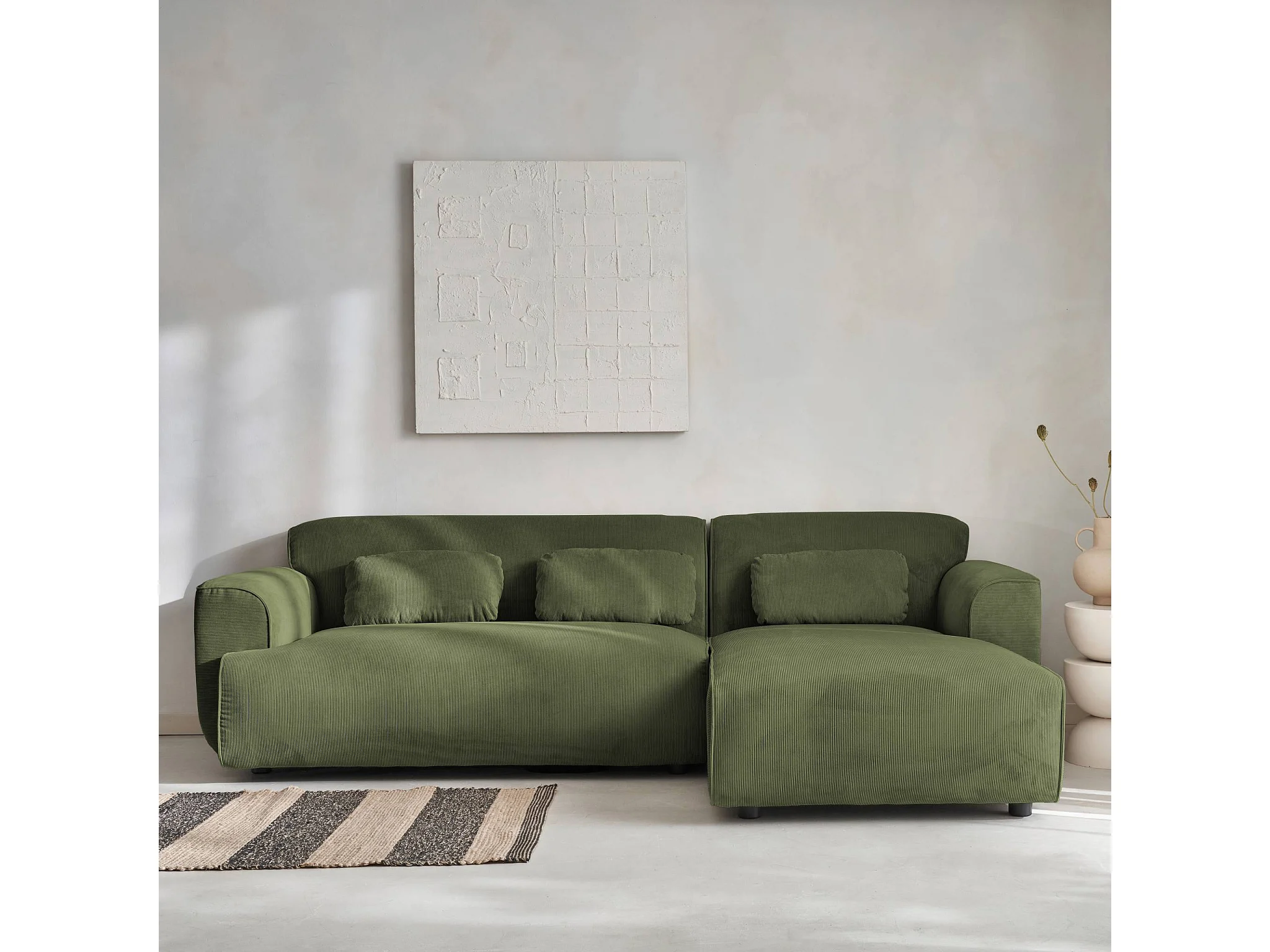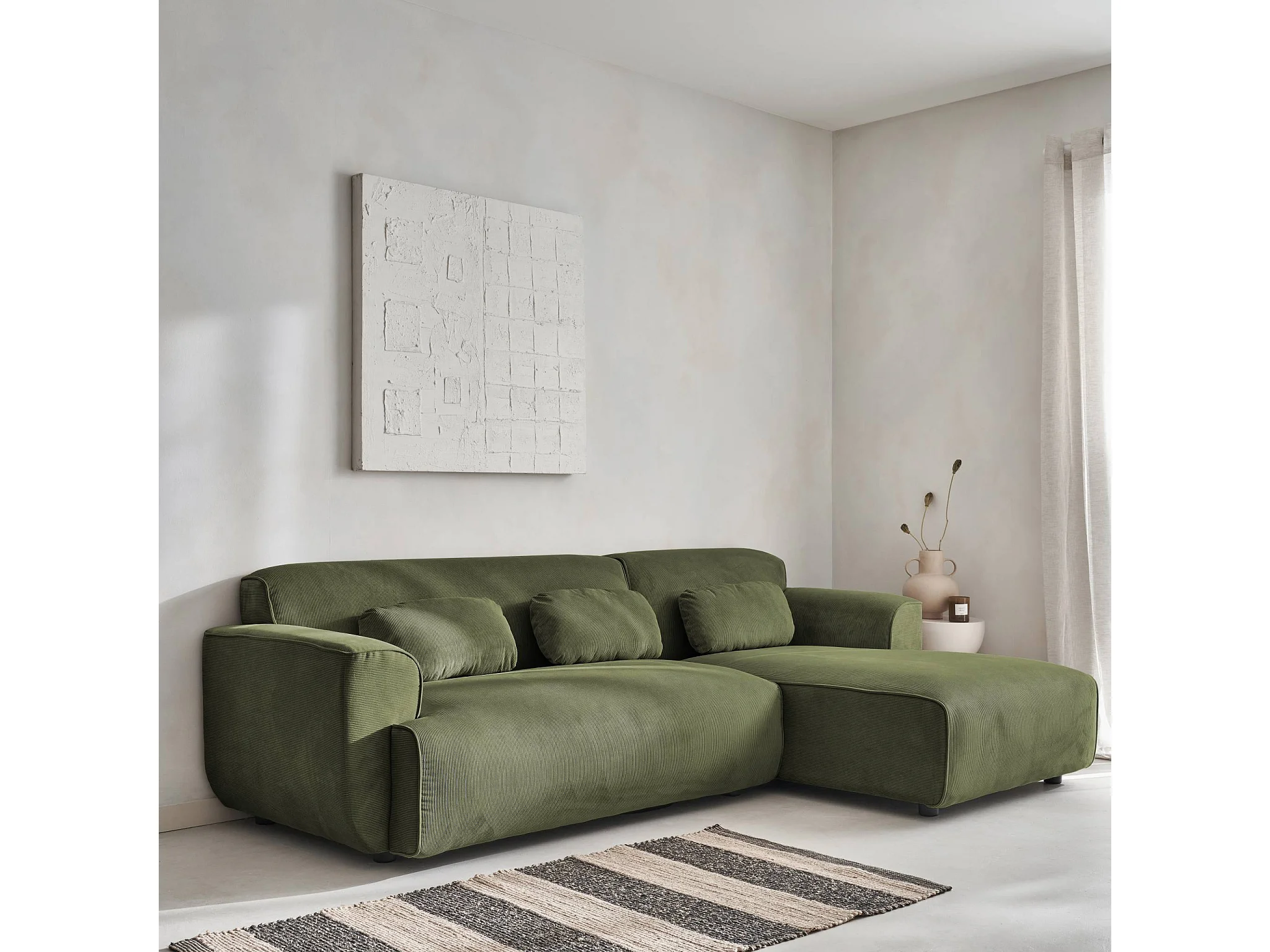 Sofá esquinero de pana de 2 a 3 plazas, esquina derecha verde