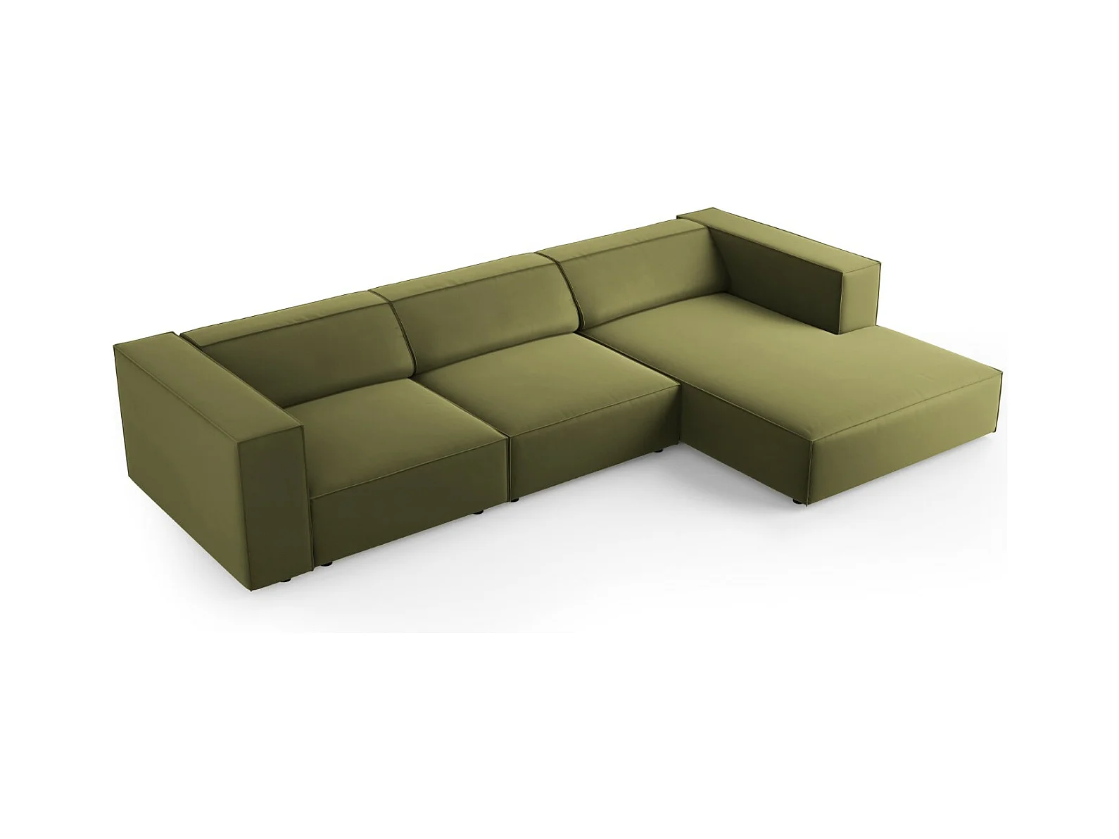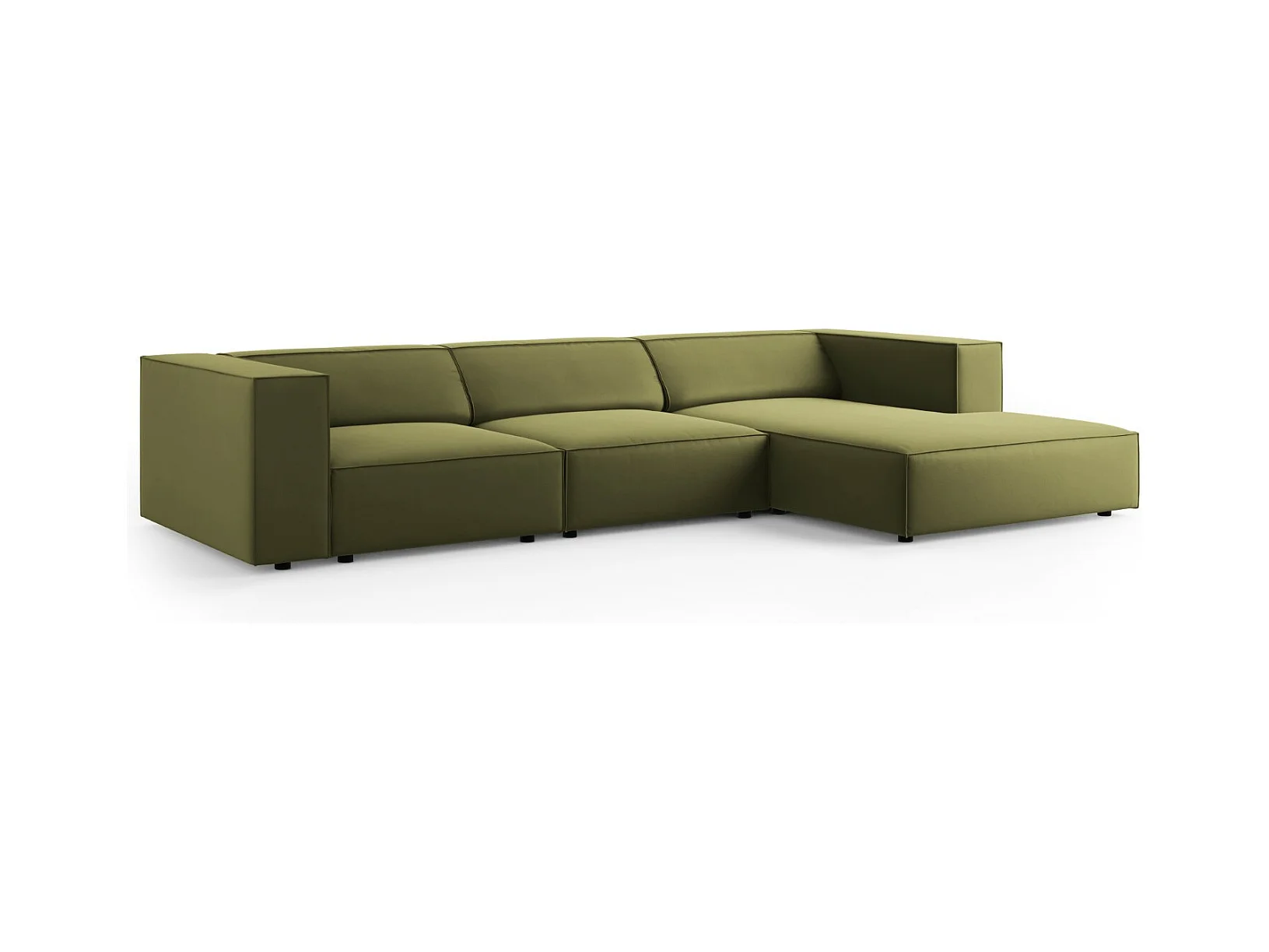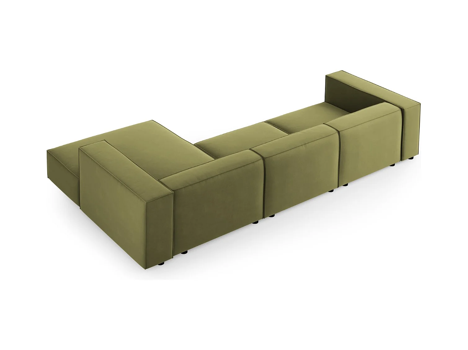 Cosmopolitan Design - Sofá esquinero derecho "Arendal" 4 plazas de terciopelo verde claro - 284x166x70cm
