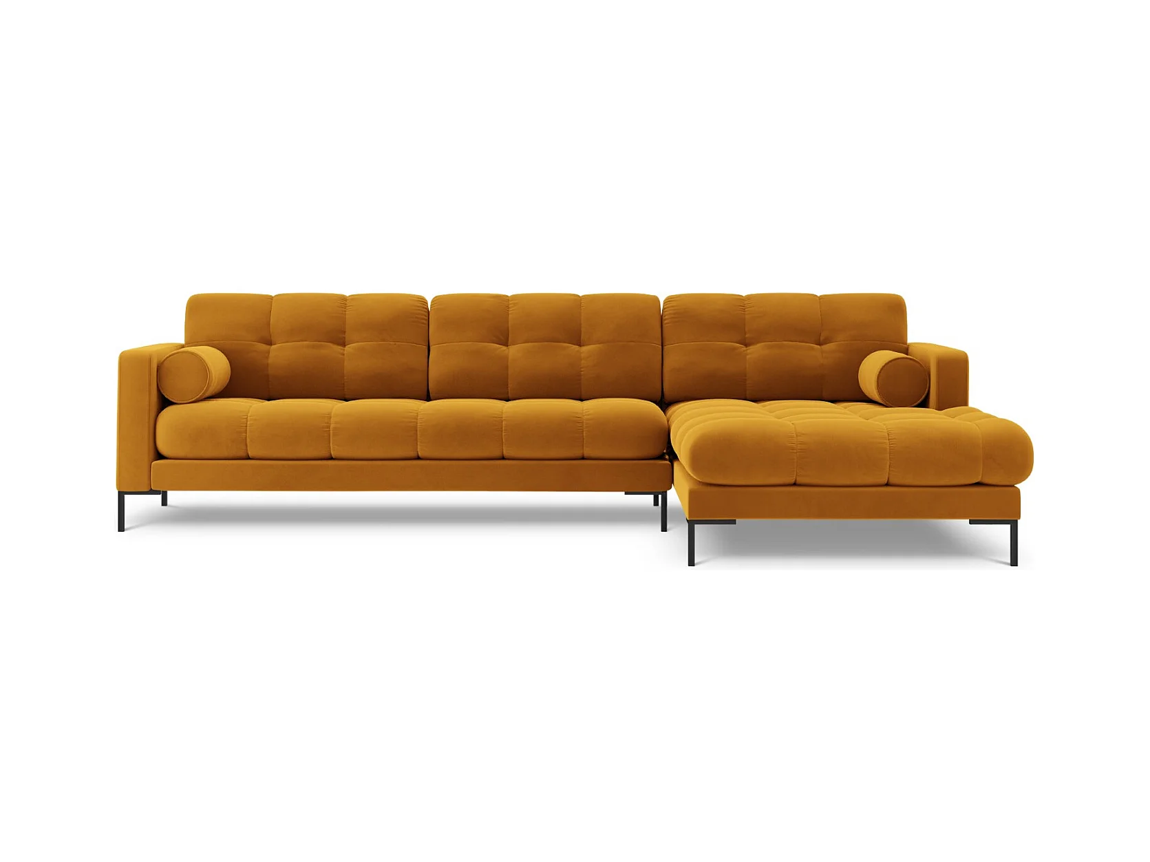Cosmopolitan Design - Sofá esquinero derecho "Bali" 5 plazas de terciopelo amarillo - 293x185x75cm