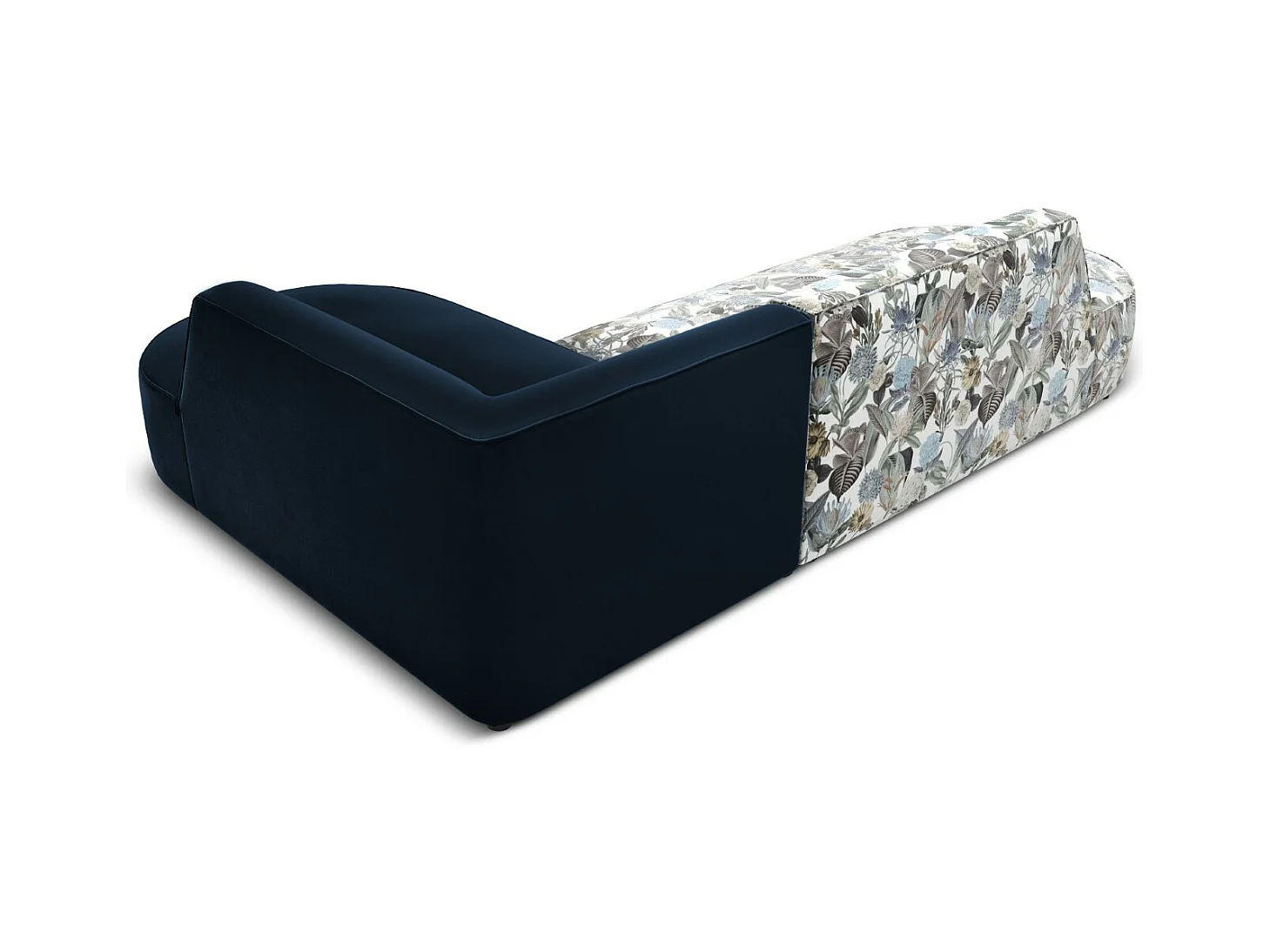 CXL by Christian Lacroix - Sofá esquinero derecho "Charles" 4 plazas de terciopelo estampado jardín azul claro - 273x180x69cm