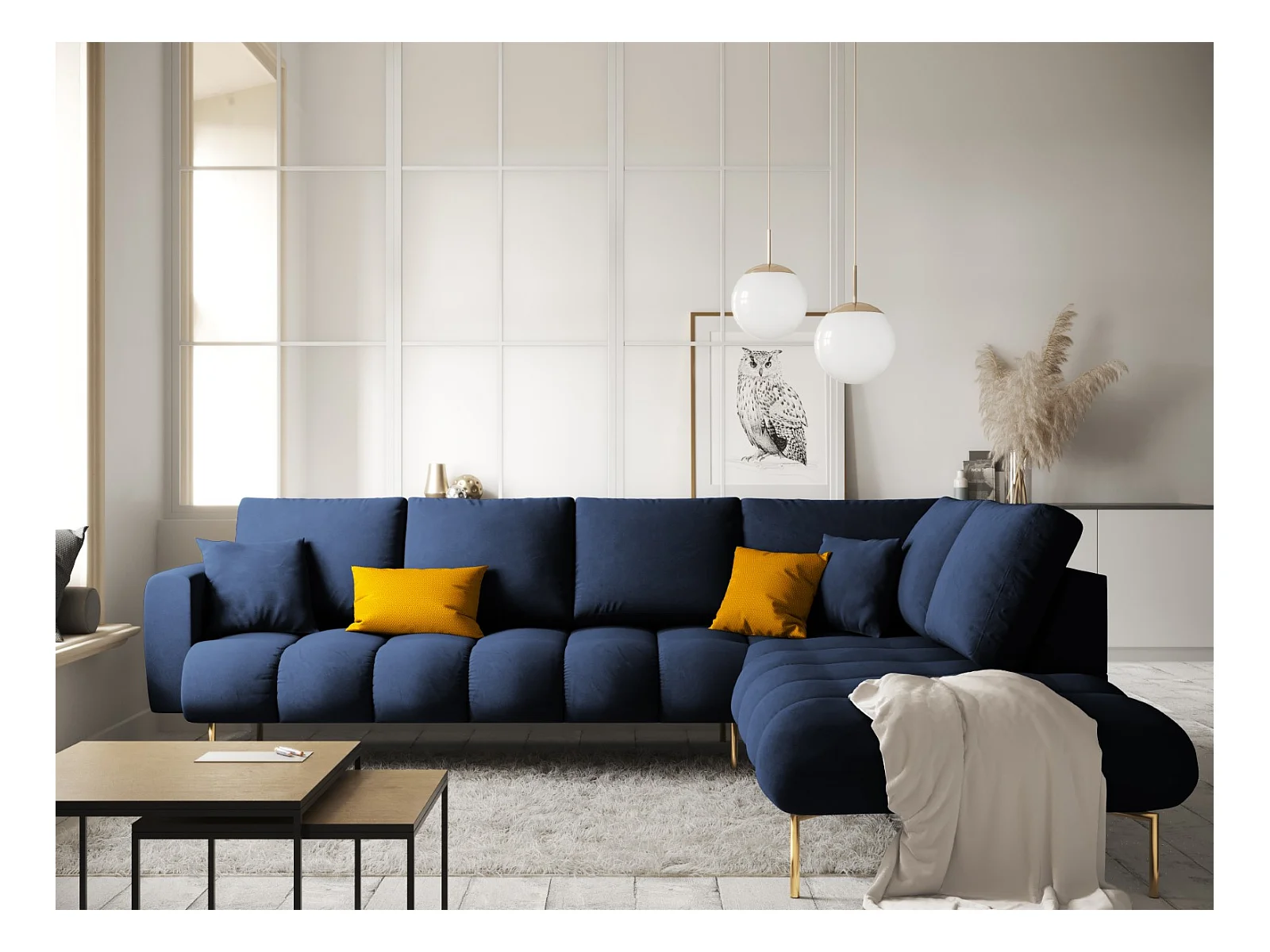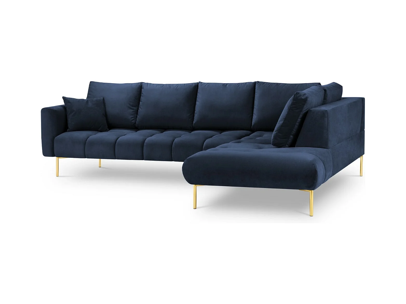 Cosmopolitan Design - Sofá esquinero derecho "Hastings" 5 plazas de terciopelo azul regio - 301x216x75cm