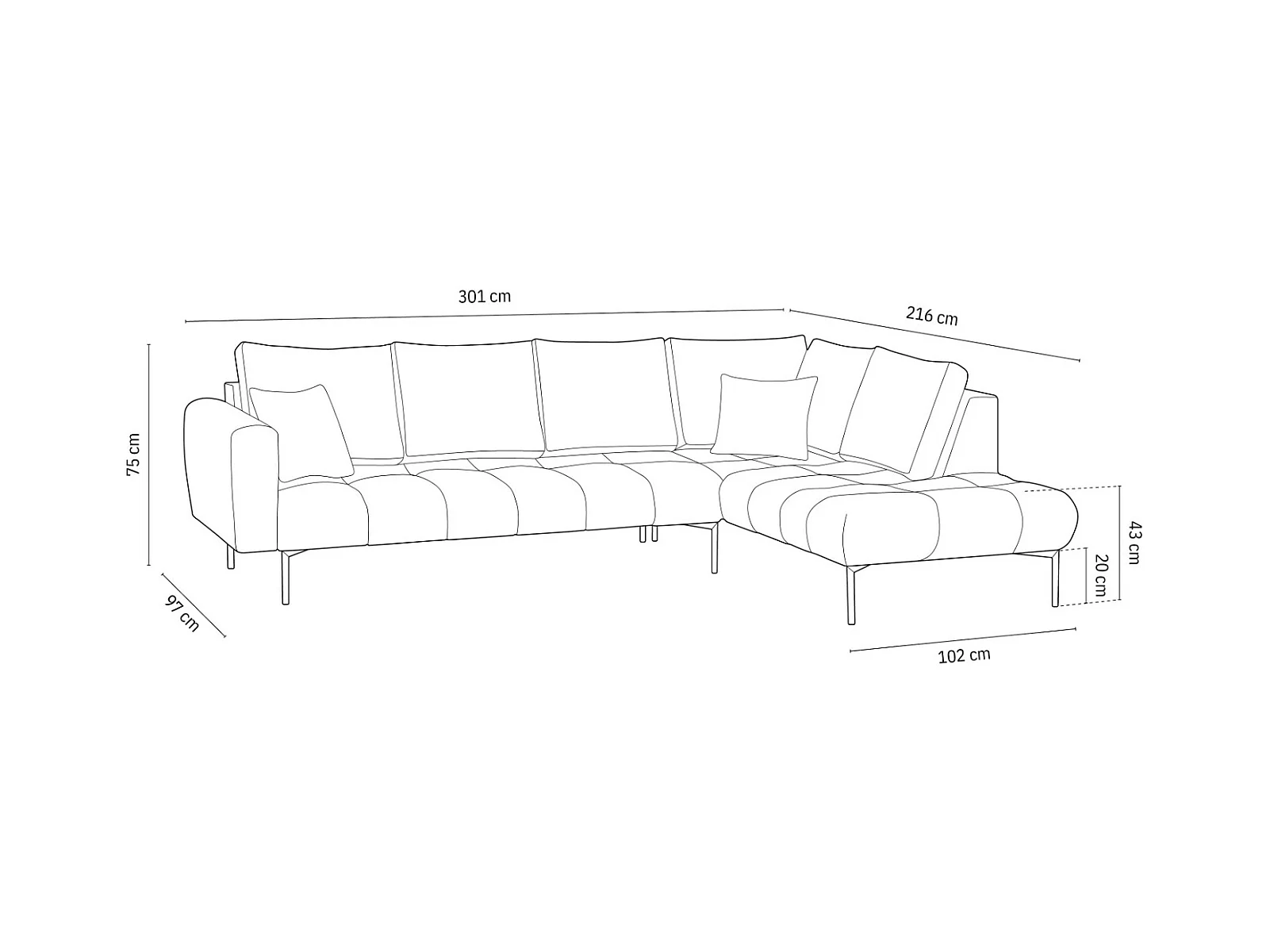 Cosmopolitan Design - Sofá esquinero derecho "Vienna" 5 plazas de terciopelo azul claro - 255x170x95cm