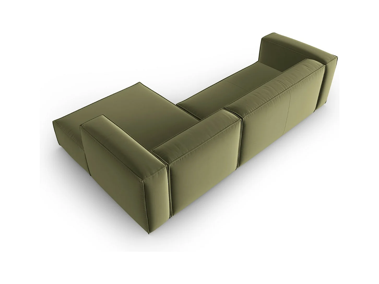 Cosmopolitan Design - Sofá esquinero derecho "Mackay" 4 plazas de terciopelo verde claro - 282x166x73cm