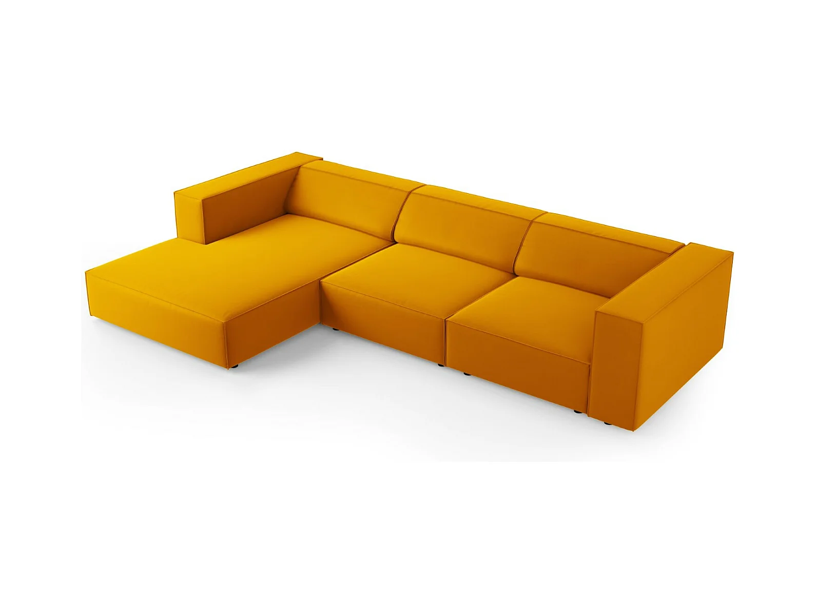 Cosmopolitan Design - Sofá esquinero izquierdo "Arendal" 4 plazas de terciopelo amarillo - 284x166x70cm