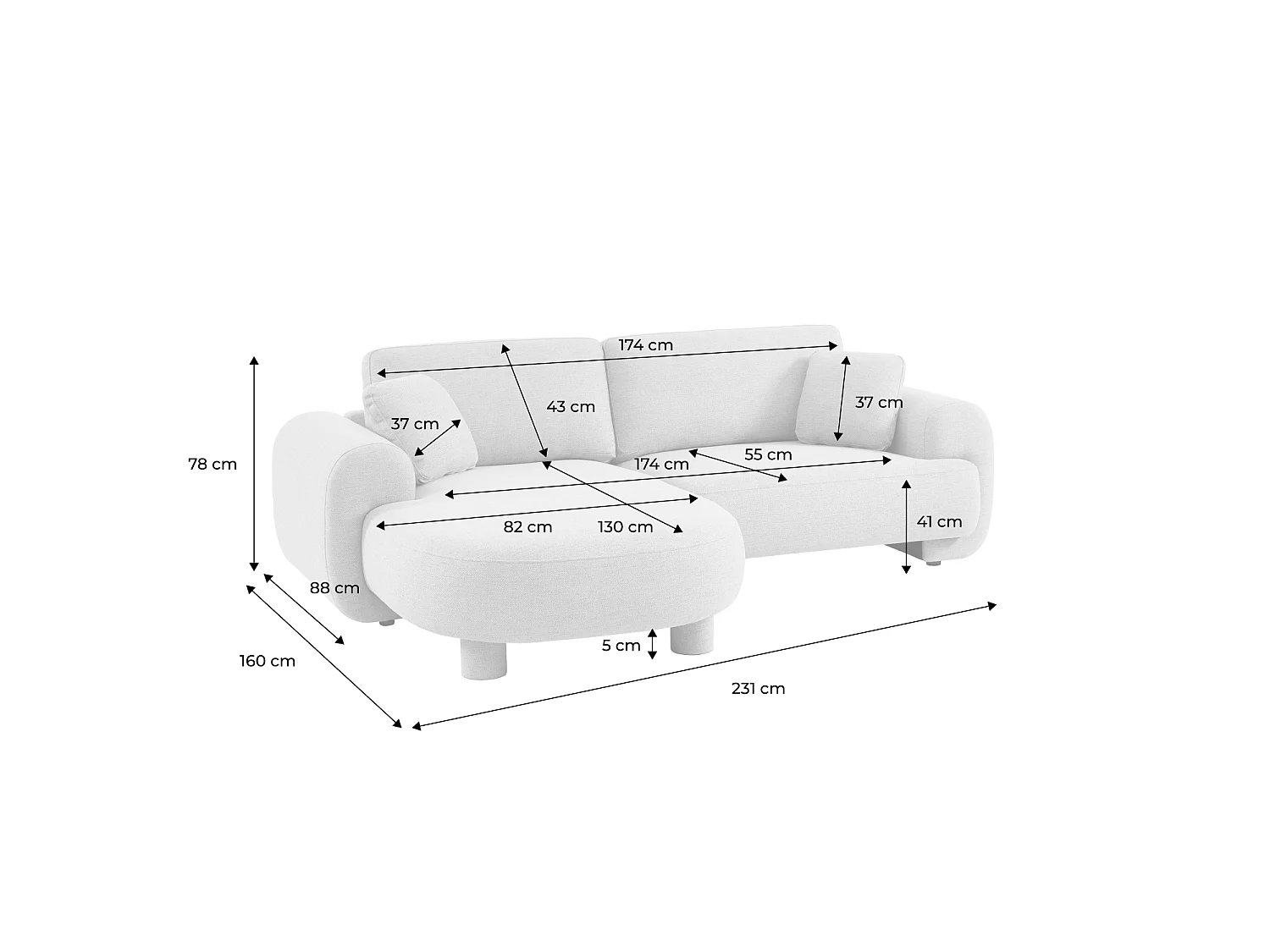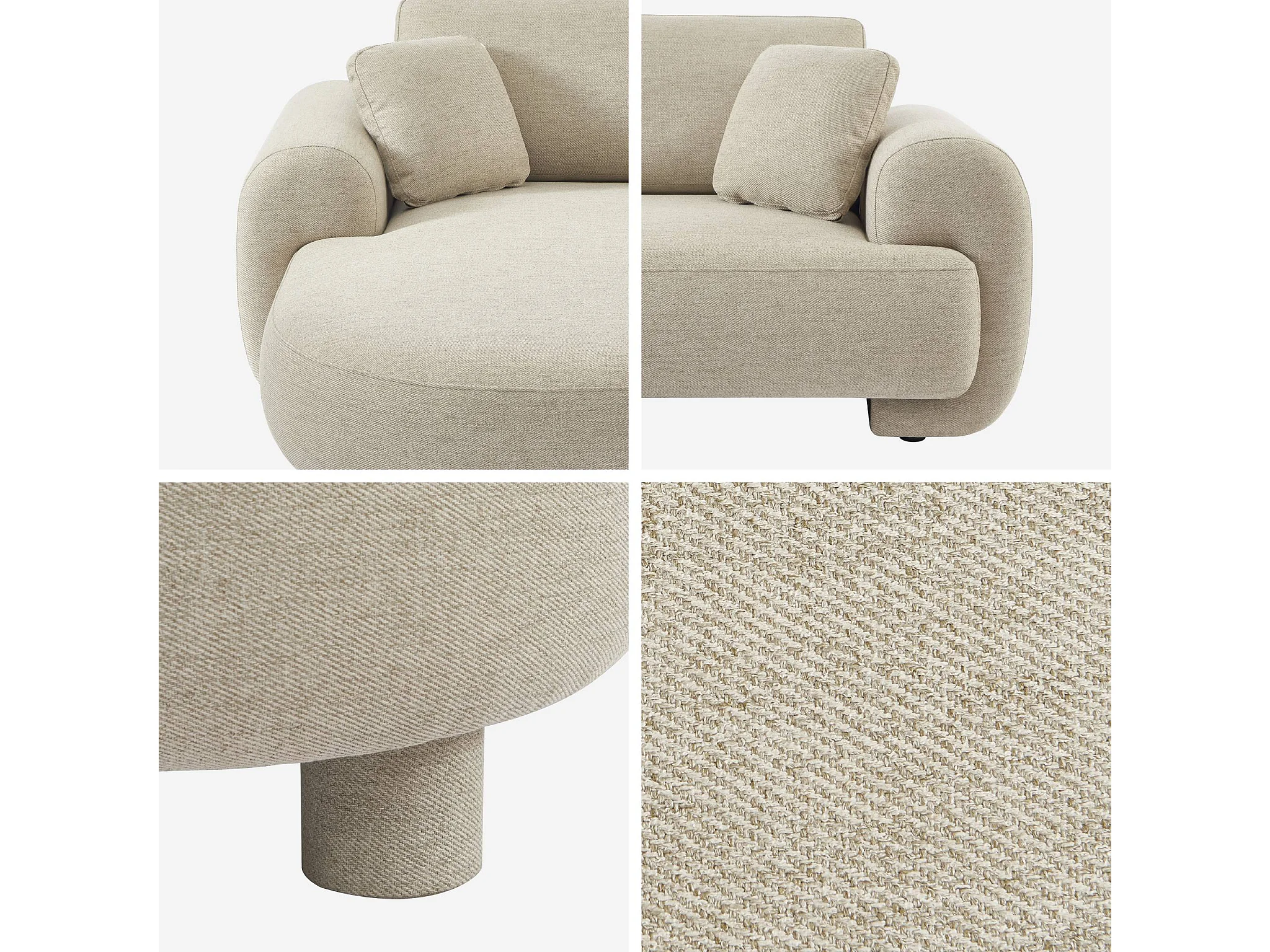 Sofá esquinero izquierdo con patas redondas, 3 plazas beige