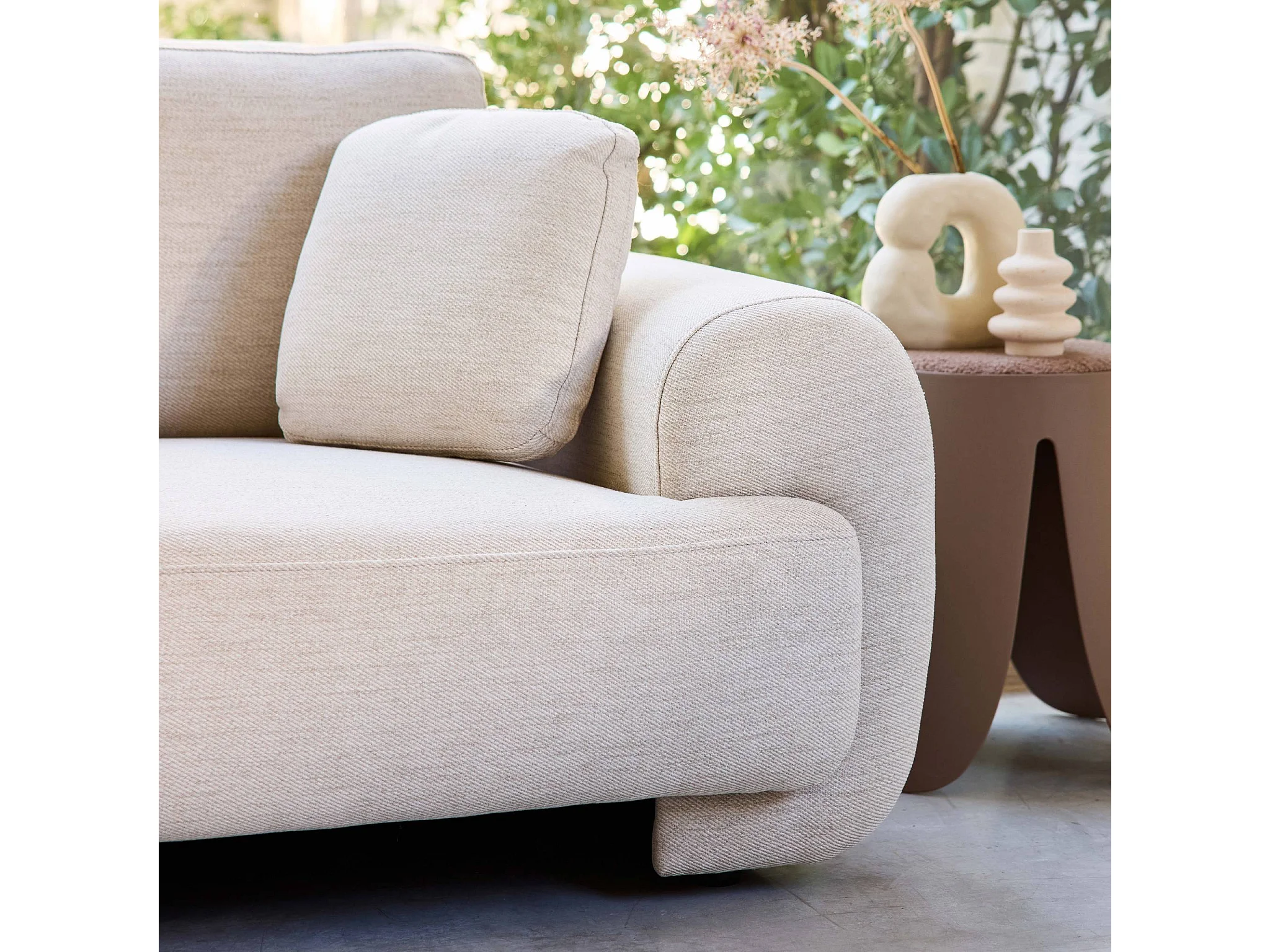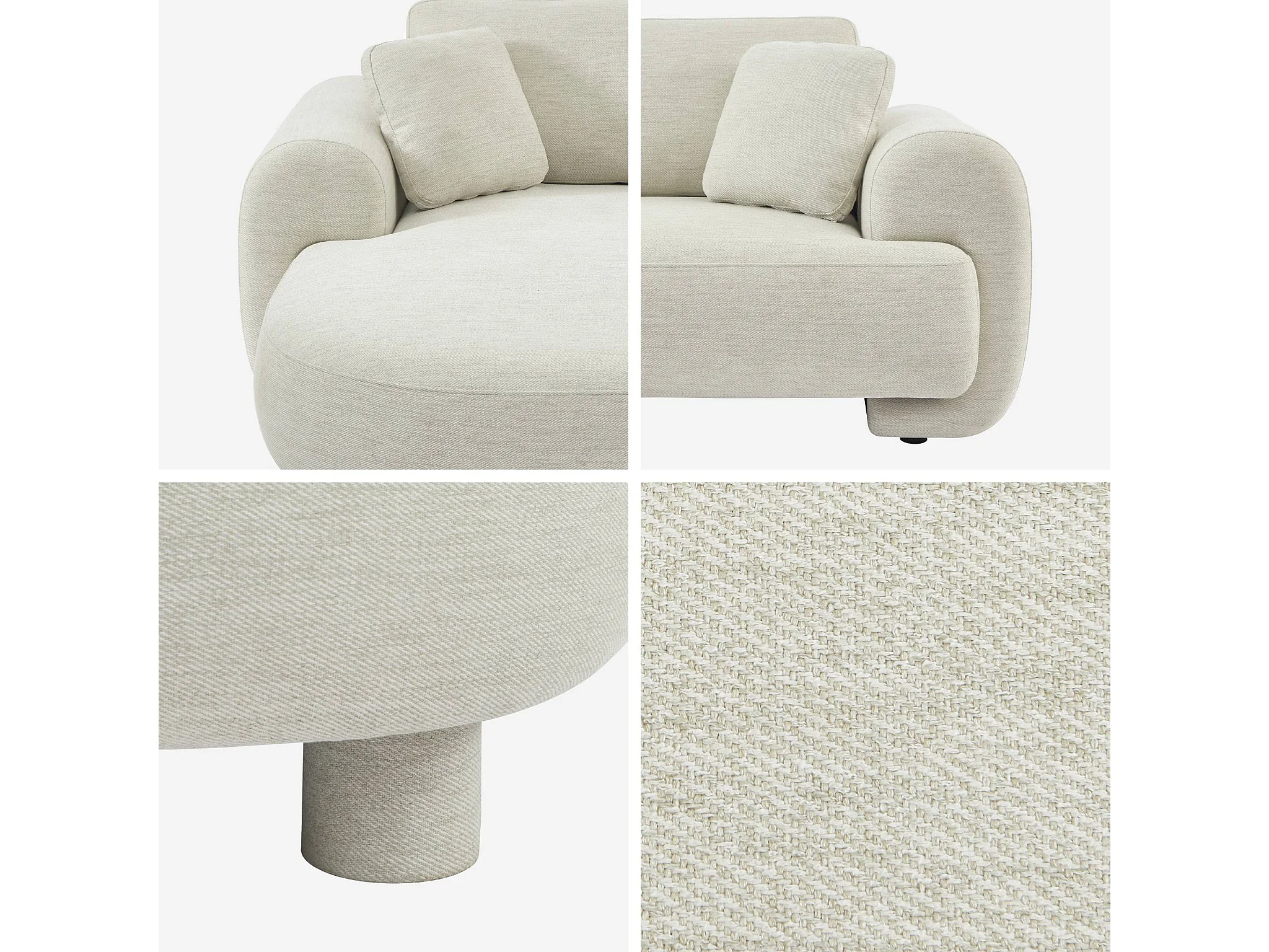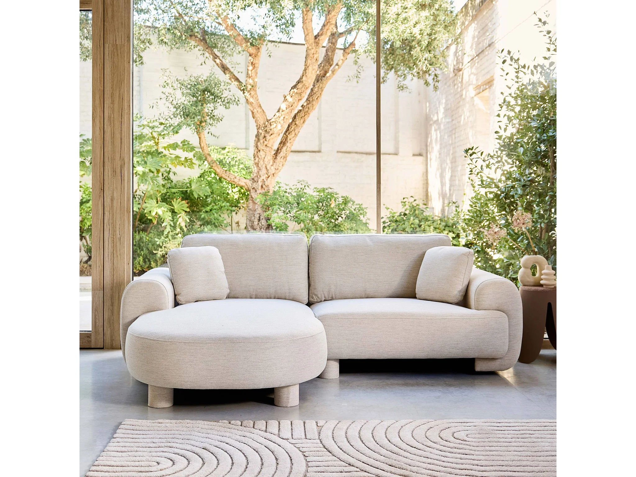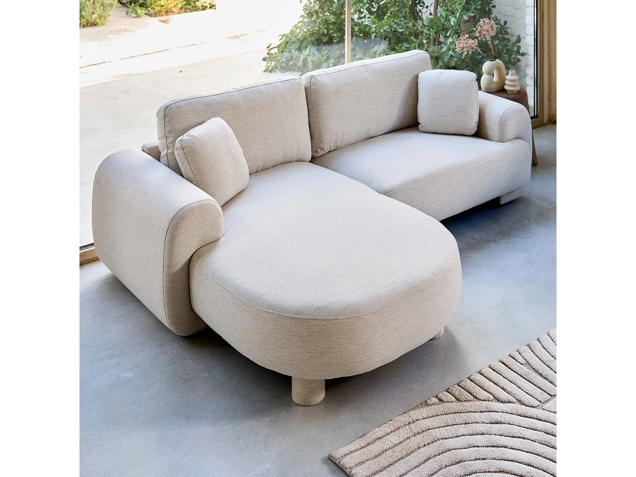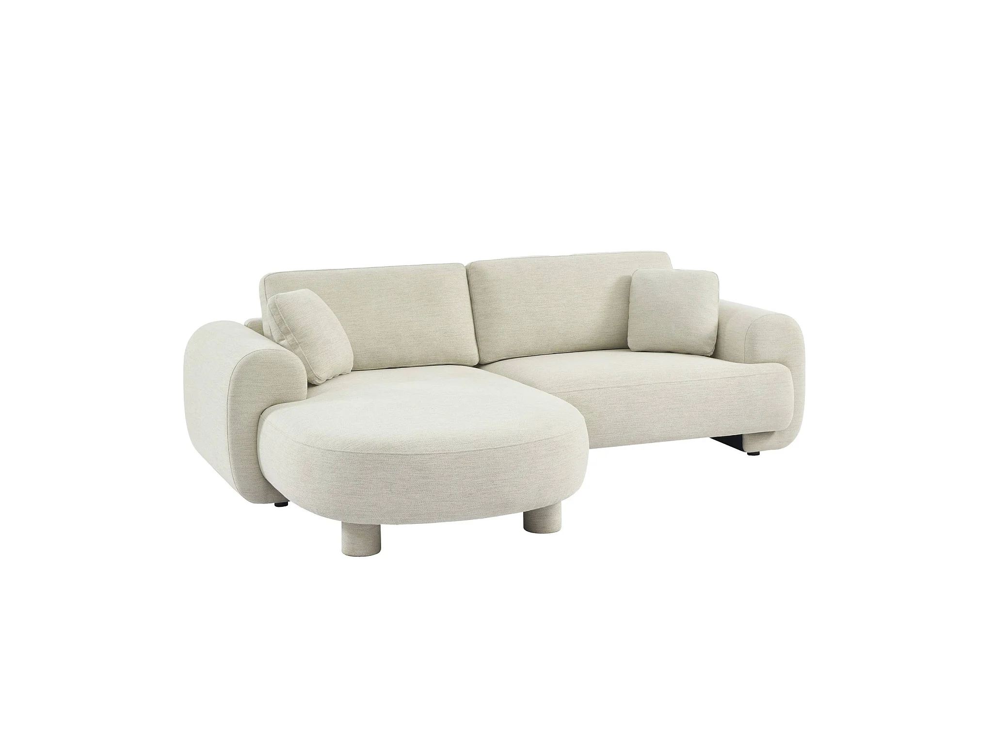 Sofá esquinero izquierdo con patas redondas, 3 plazas crema
