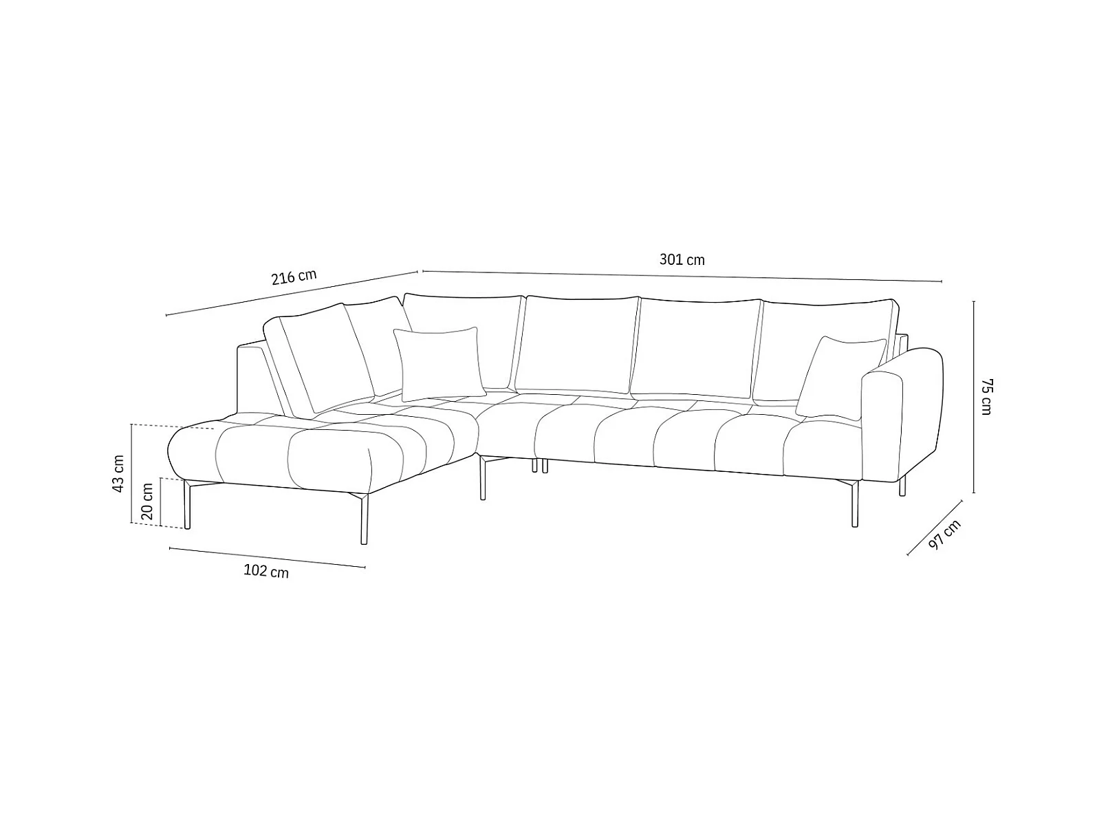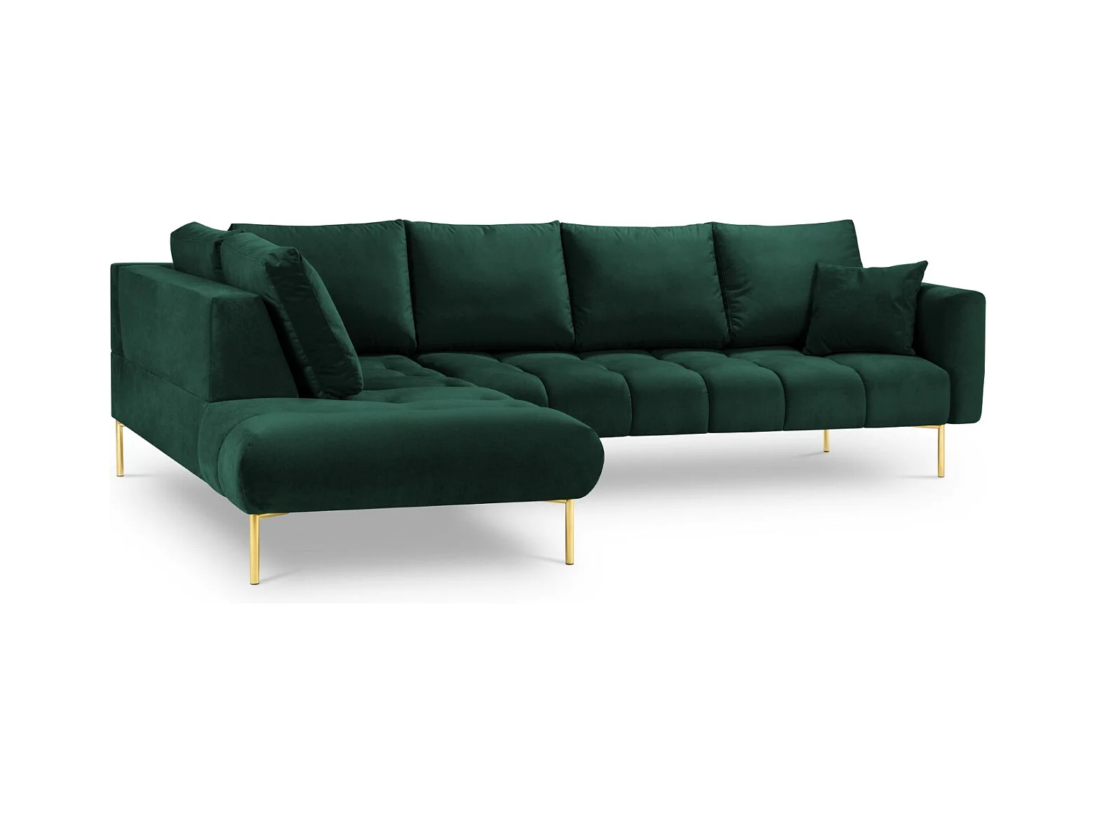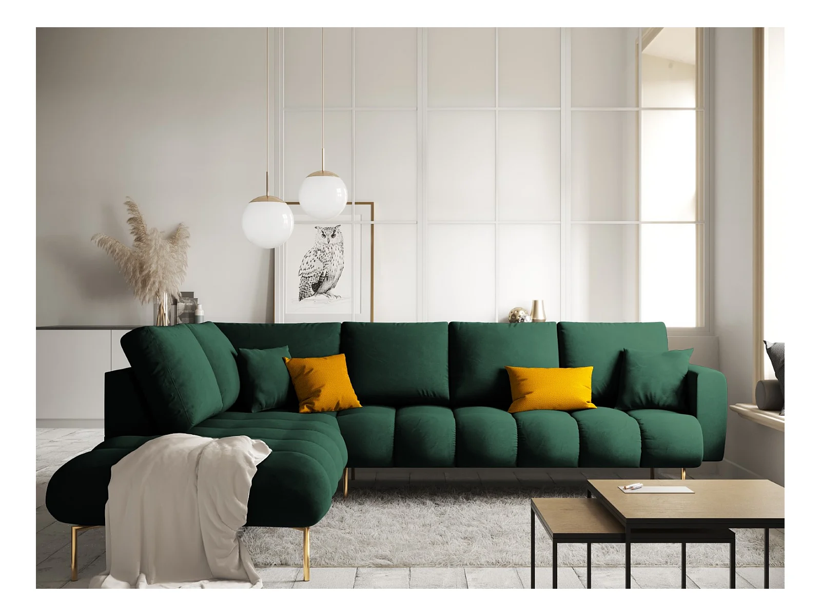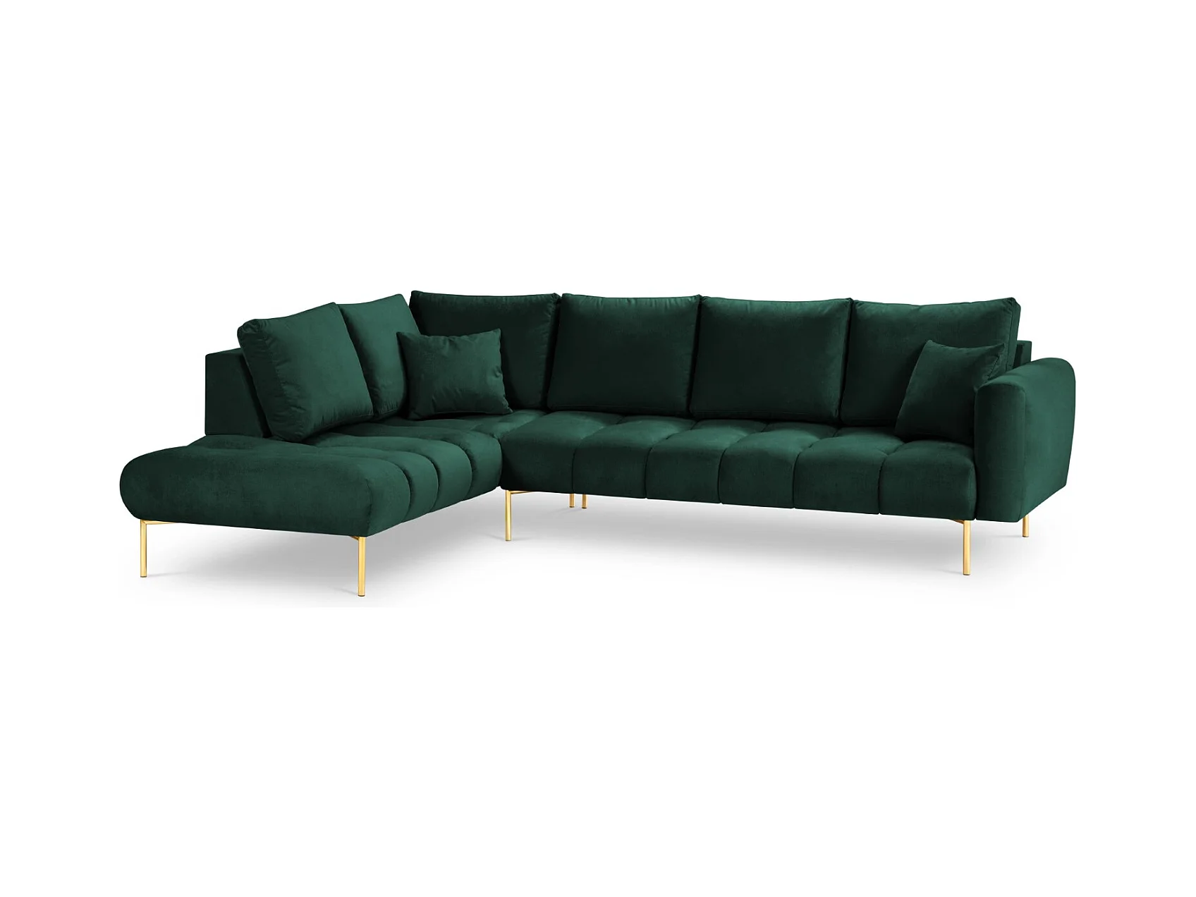 Cosmopolitan Design - Sofá esquinero izquierdo "Hastings" 5 plazas de terciopelo verde botella - 301x216x75cm