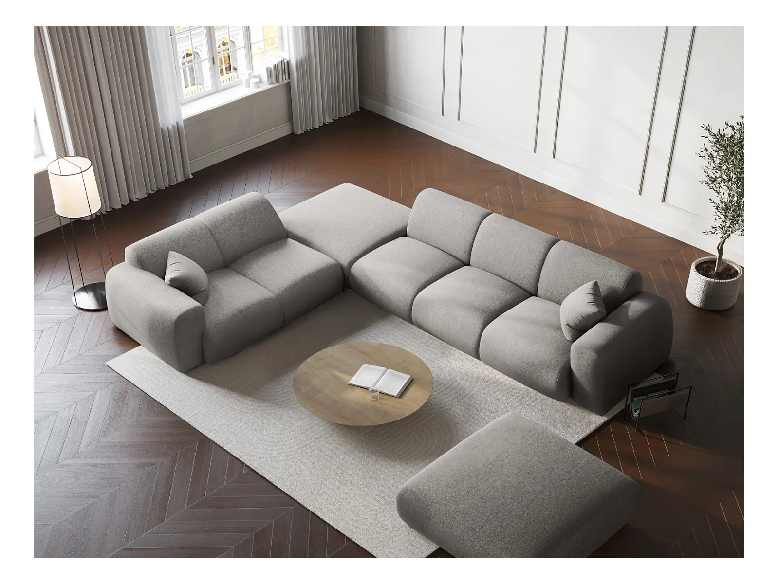 Cosmopolitan Design - Sofá esquinero izquierdo "Nolio" 4 plazas de tejido chenilla gris claro - 315x250x72cm