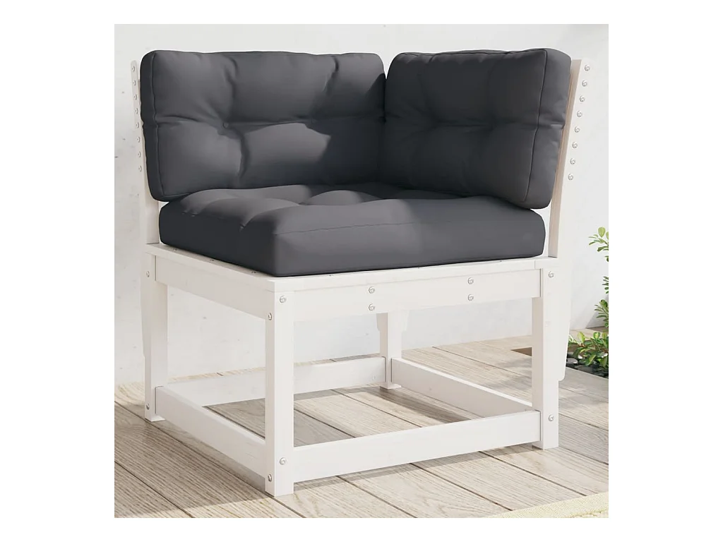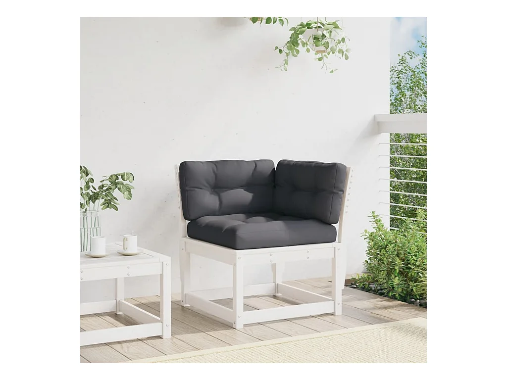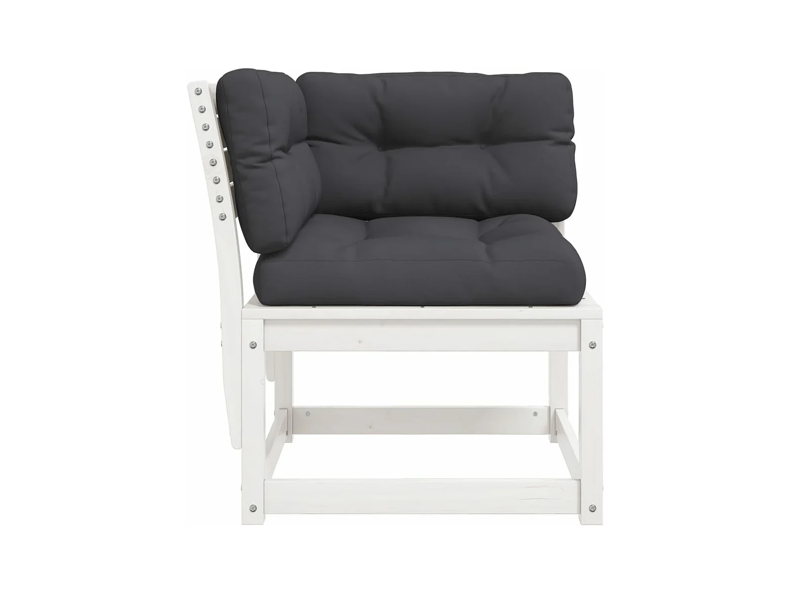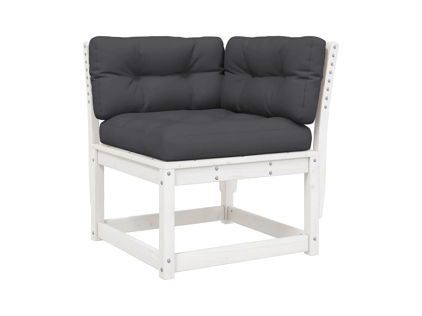 Sofá esquinero jardín y cojines madera pino blanco 73x73x78 cm ES608545