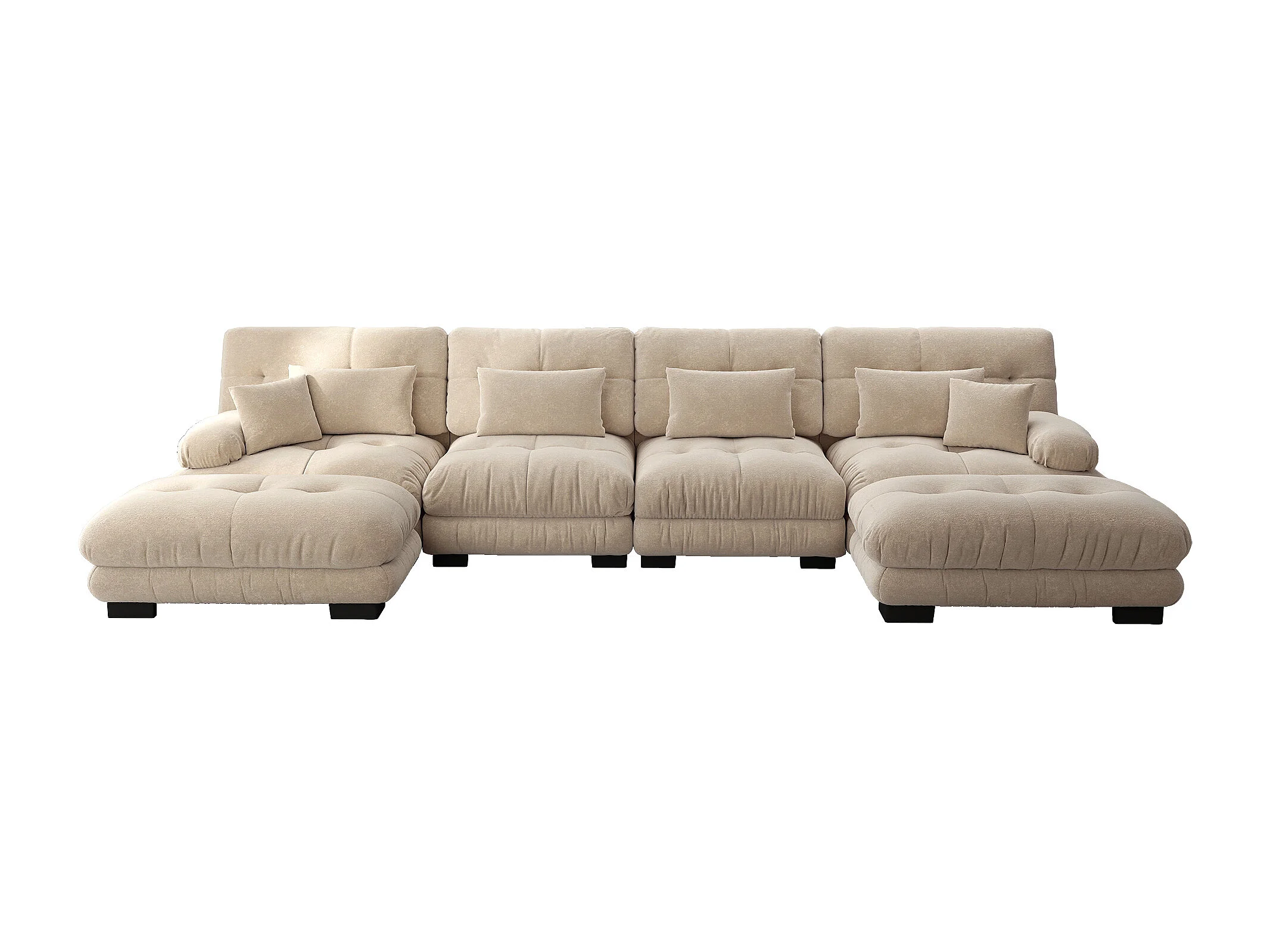 Sofá esquinero modular en forma de U de tela de chenilla, sofá de 4 plazas con cómoda otomana para sala de estar, color marrón claro