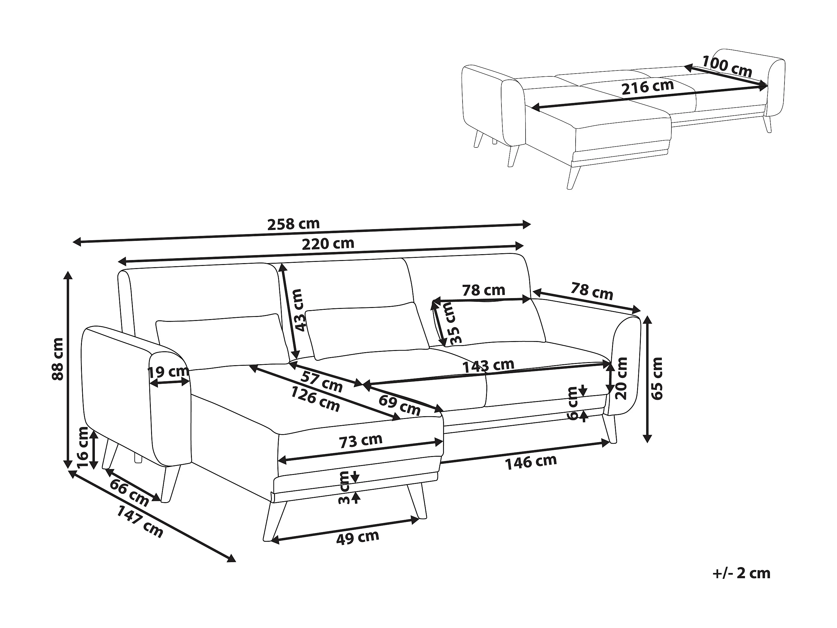 Sofá cama esquinero OLLSTA Tela Negro 3 plazas Derecha