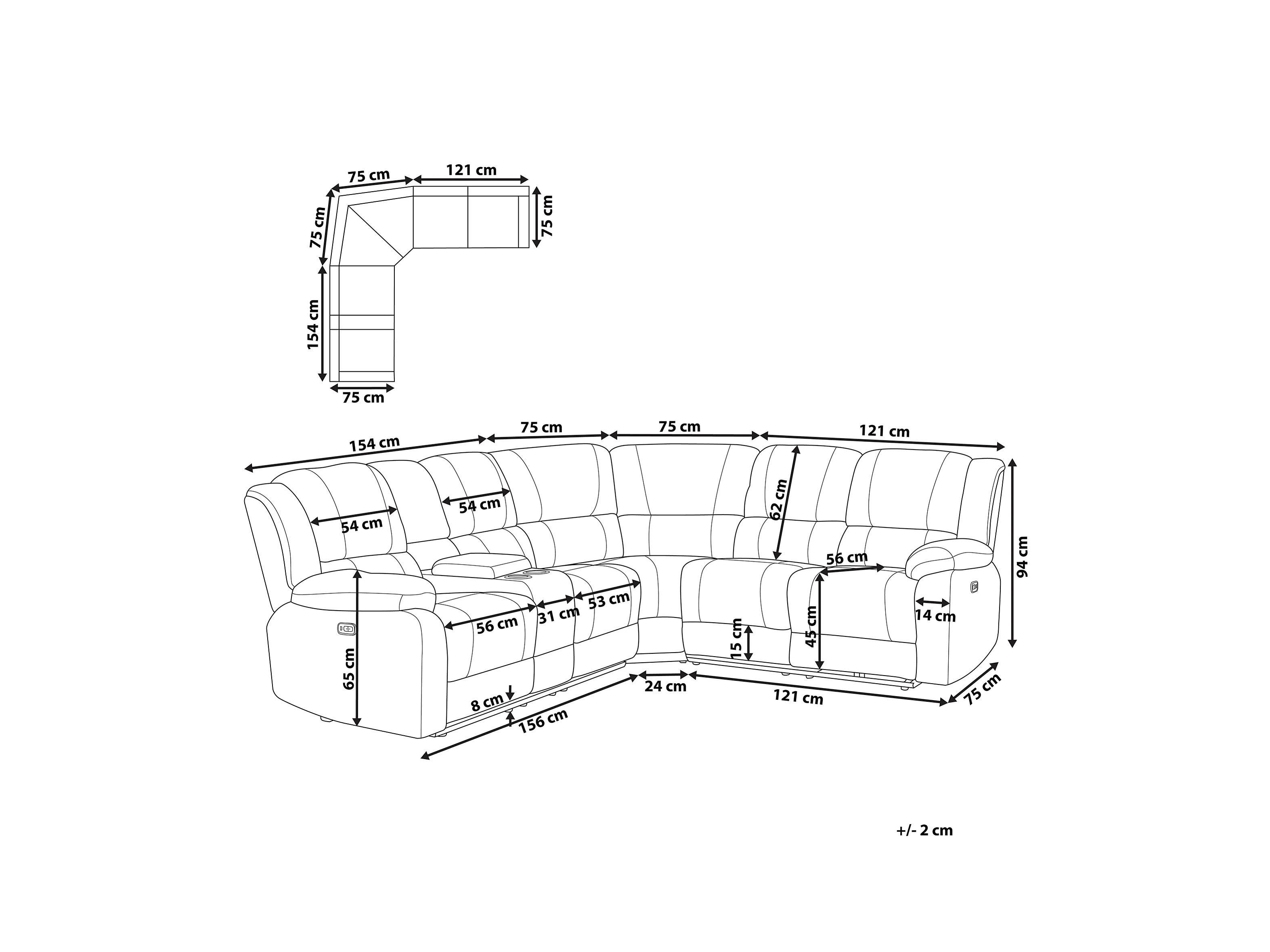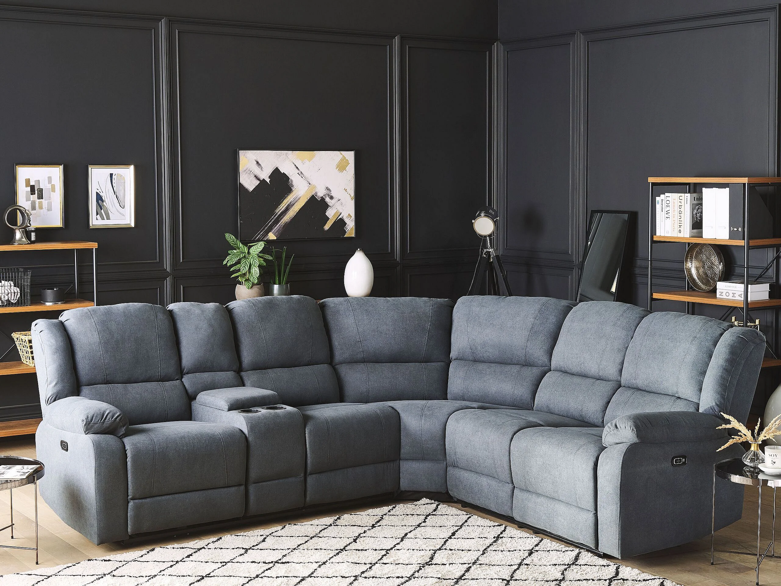 Sofá esquinero reclinable eléctrico ROKKE Tela Gris con puerto USB 5 plazas Izquierda