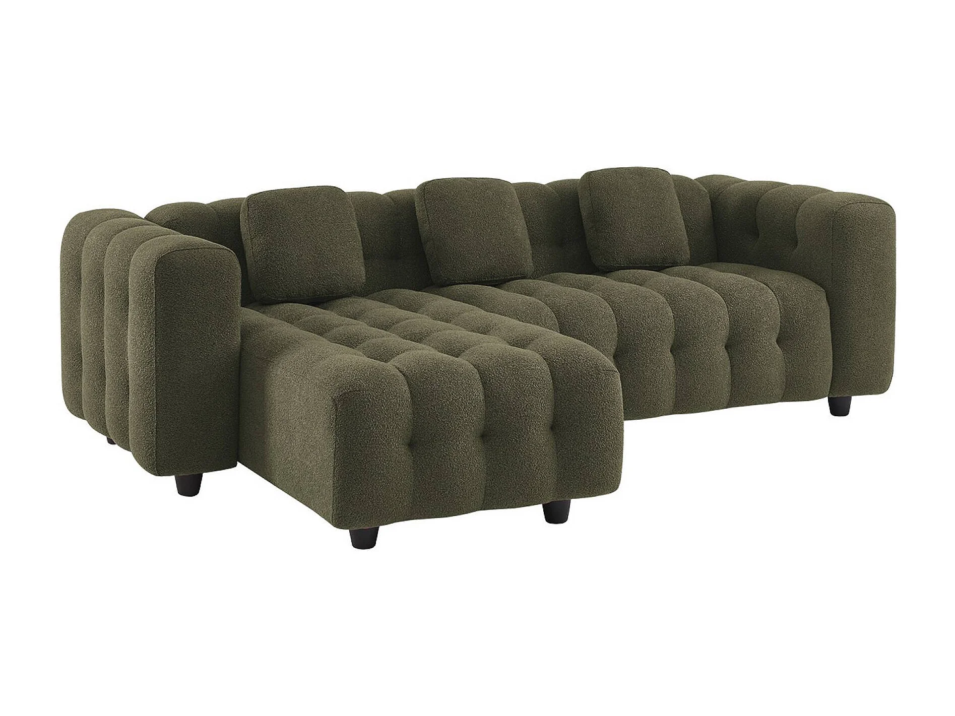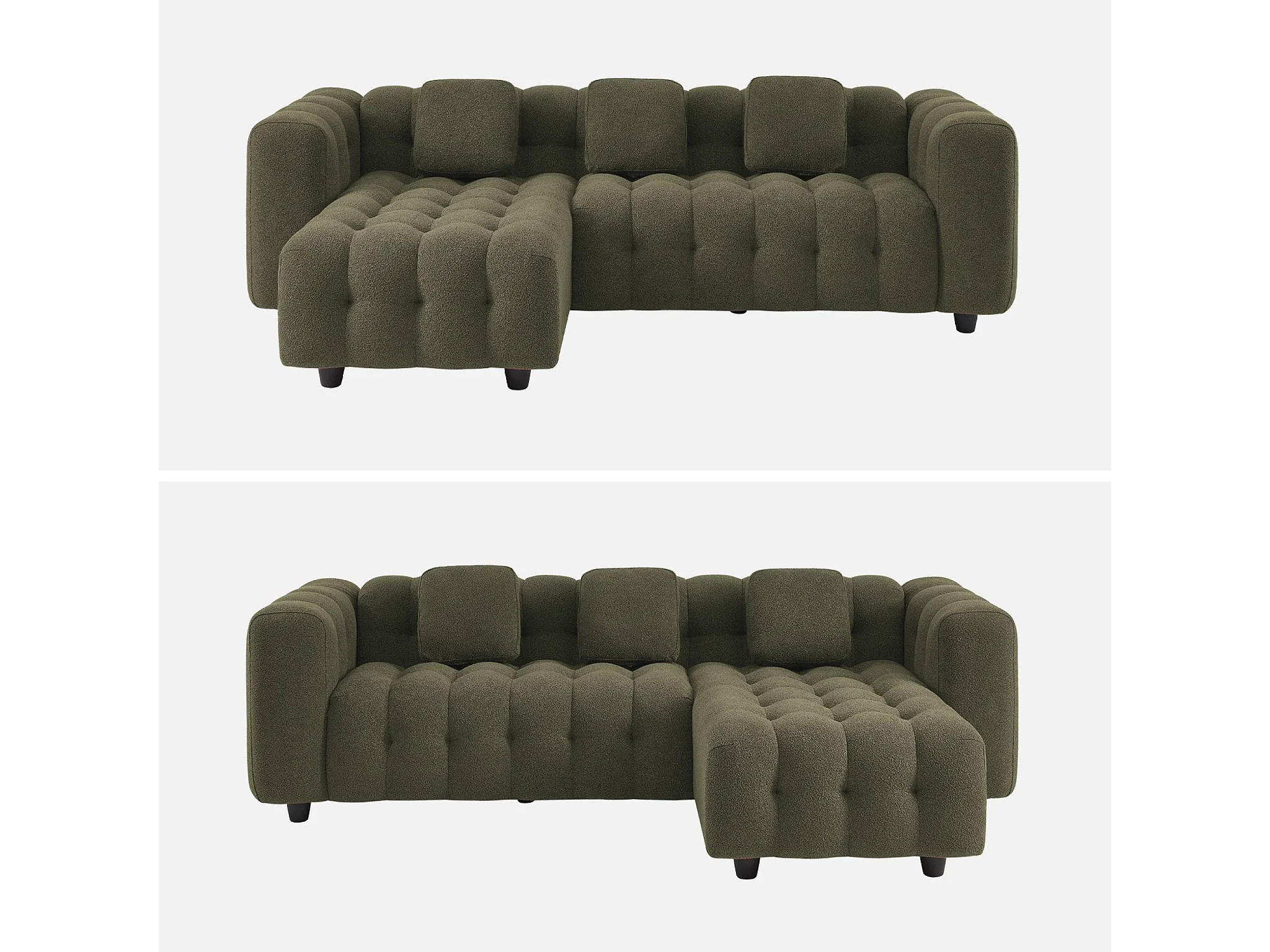 Sofá esquinero reversible con rizo texturado kaki oscuro