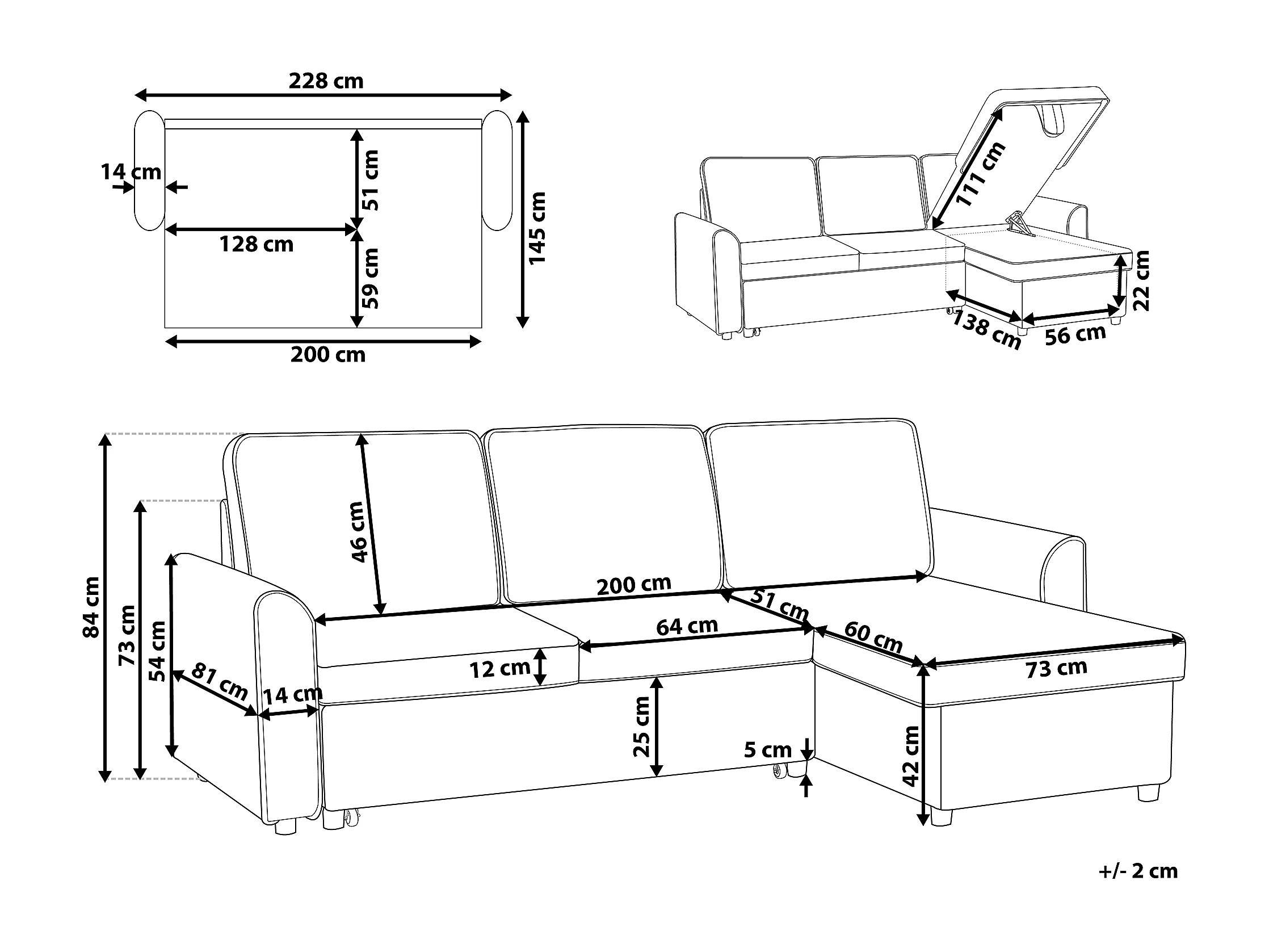 Sofá cama esquinero NESNA Tela Gris claro con almacenaje 3 plazas Izquierda