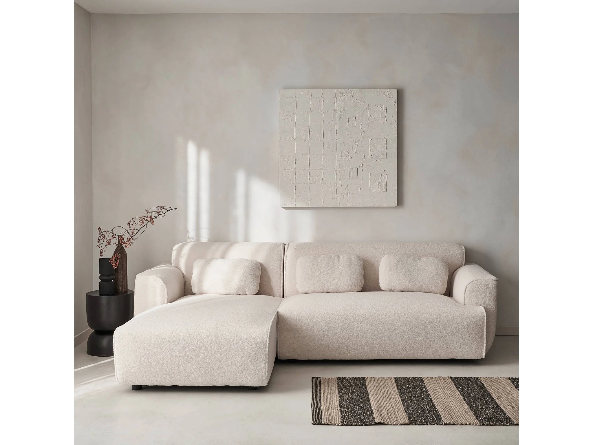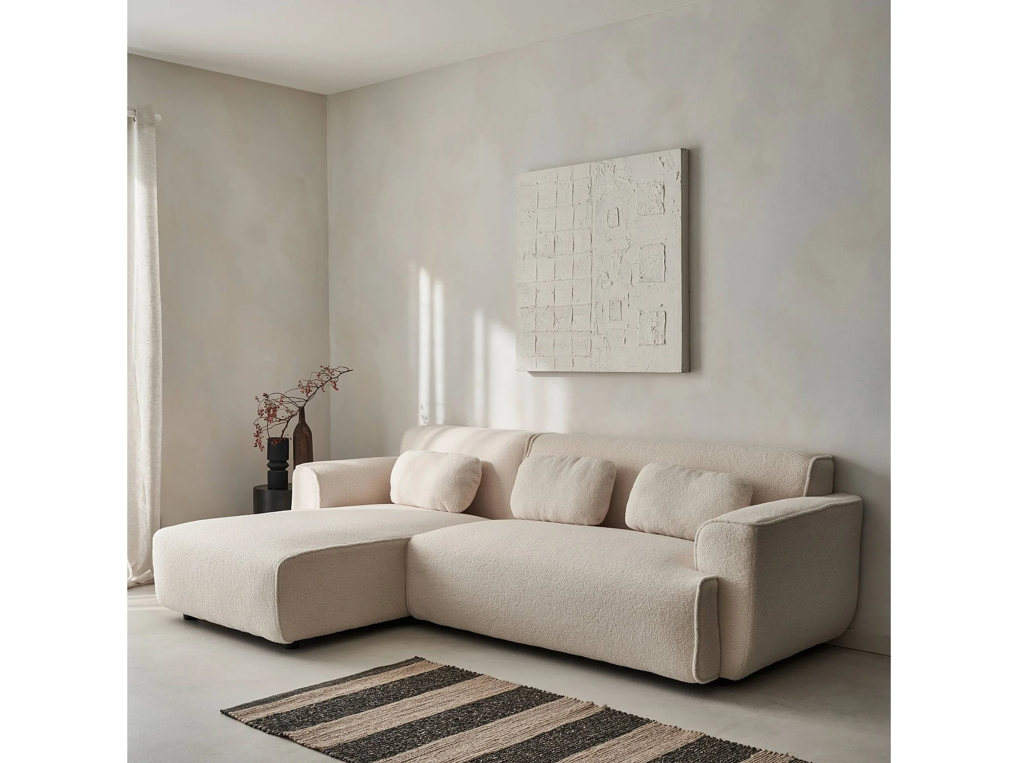 Sofá esquinero, tela borreguito de 3 plazas crema