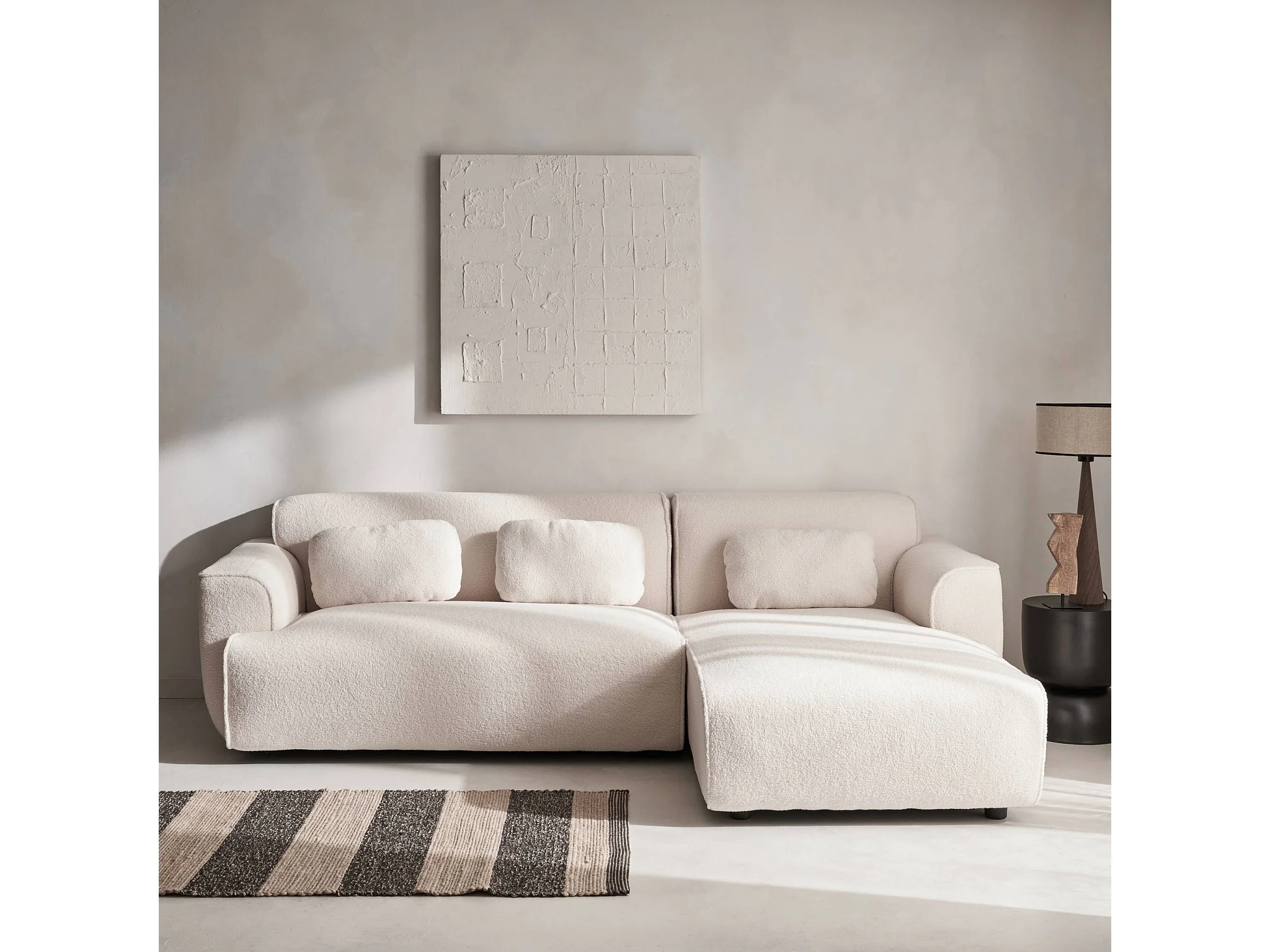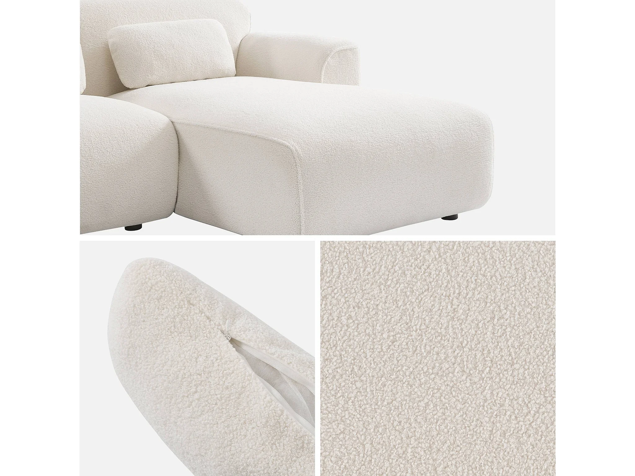 Sofá esquinero, tela borreguito de 3 plazas crema