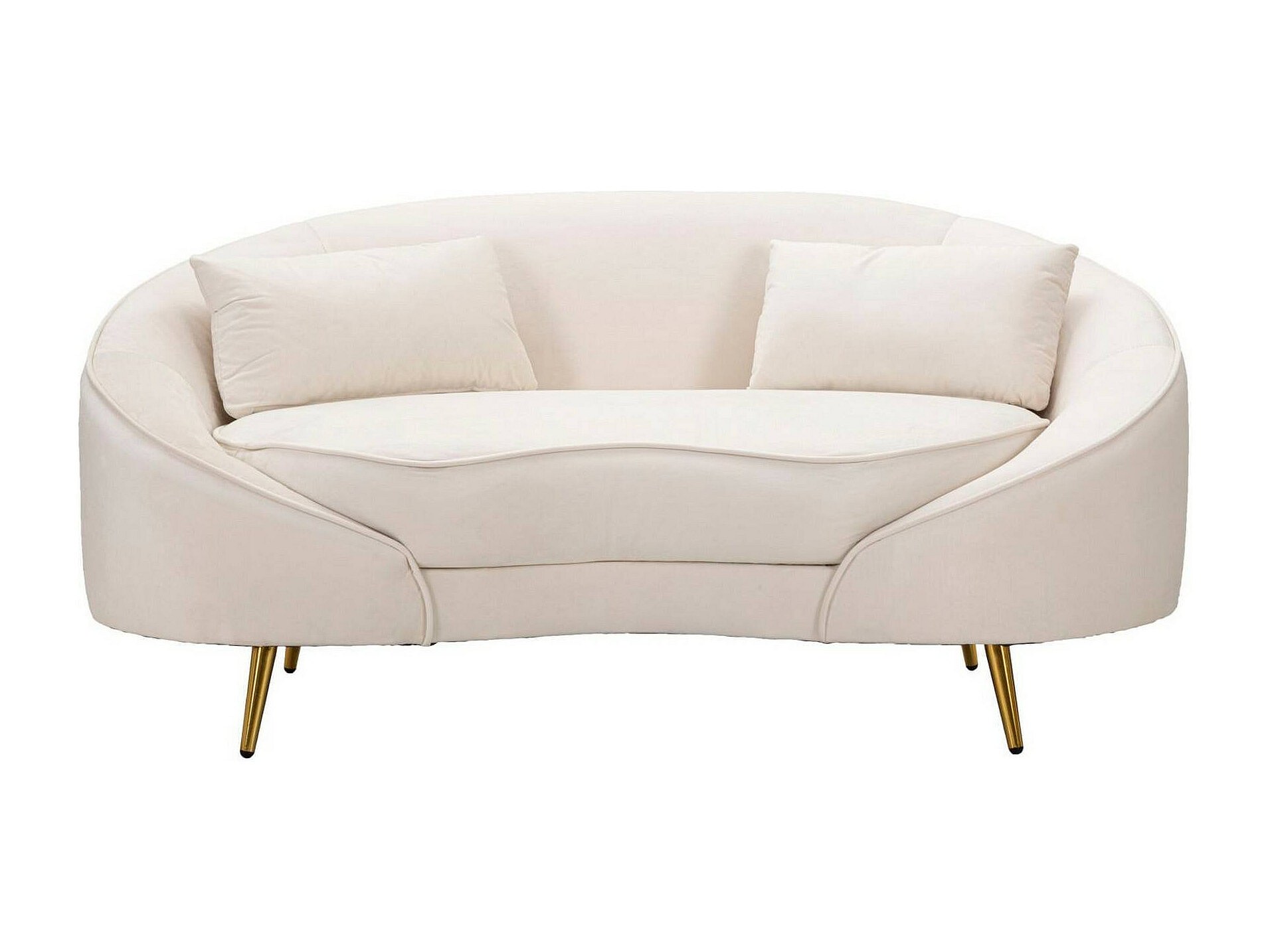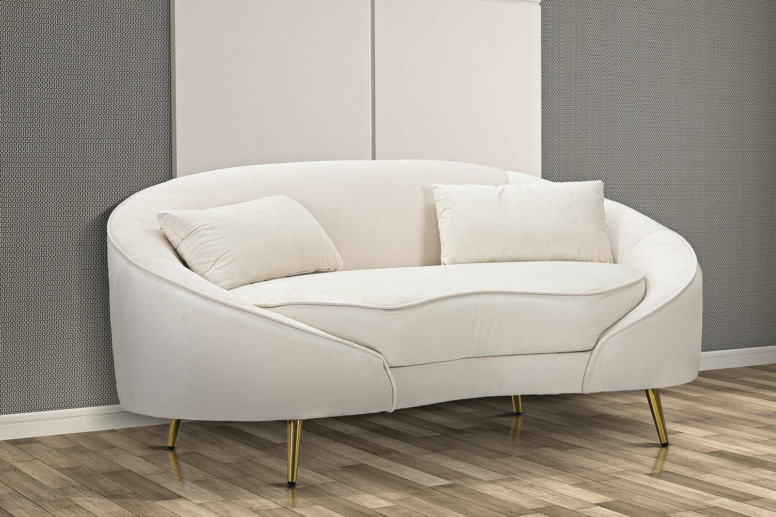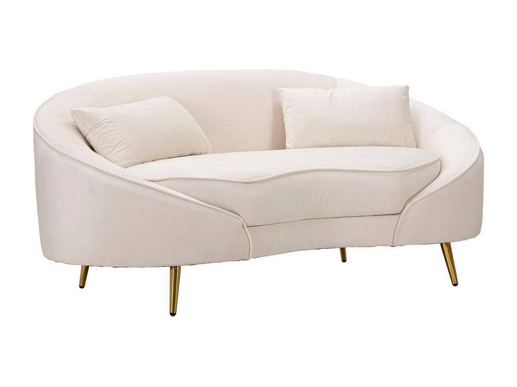 Sofá fijo 2 plazas Gupta, Sofá recto, Sofá para salón, Sillón doble con contenedor, 148x84 h68 cm, Crema y Oro