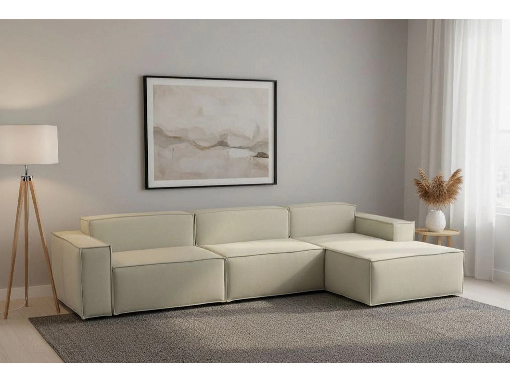 Sofá fijo Dmaiol, Sofá modular 4 plazas península derecha, 100% Made in Italy, Sofá moderno en tela, Cm 340x170h70, Beige
