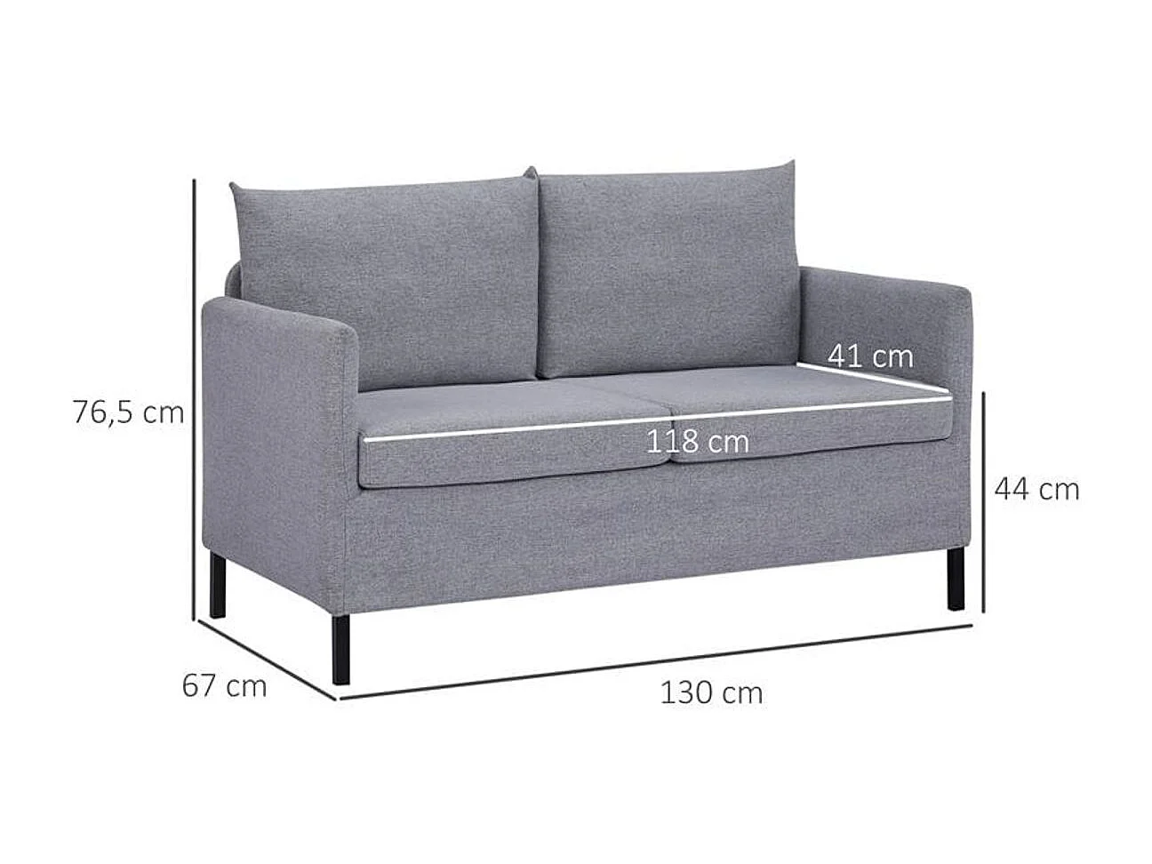 Sofá Homcom 2 plazas gris 76,5x130x67 cm