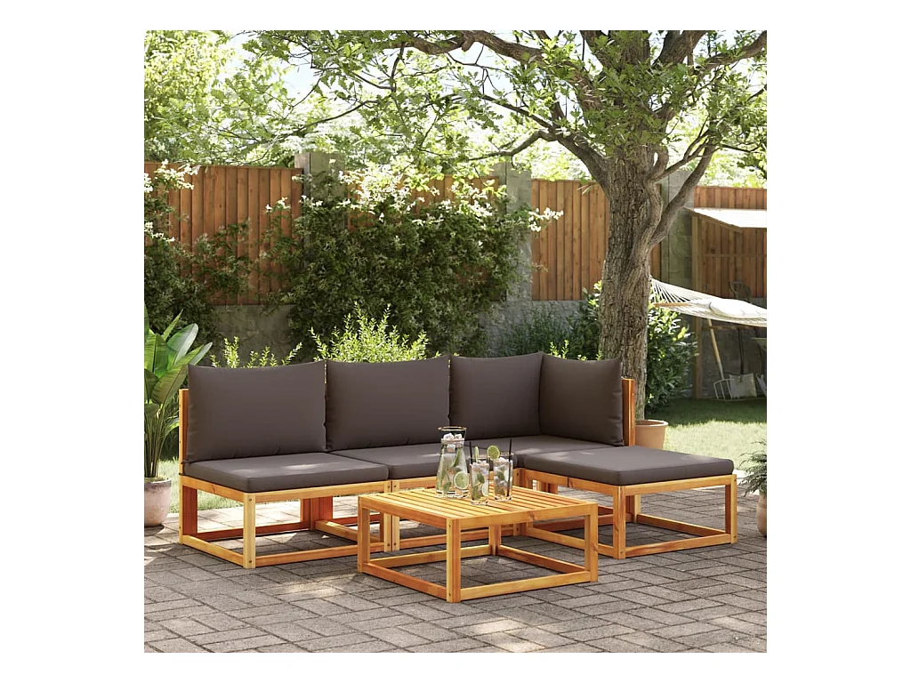 Sofá jardín sin reposabrazos con cojines madera maciza acacia ES406472