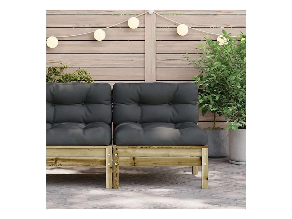 Sofá de jardín sin reposabrazos y cojines de madera de pino impregnada