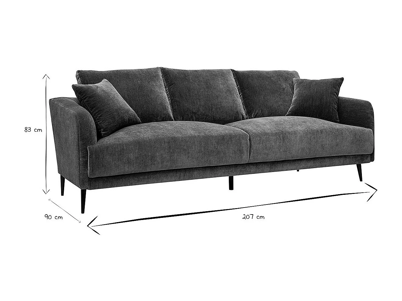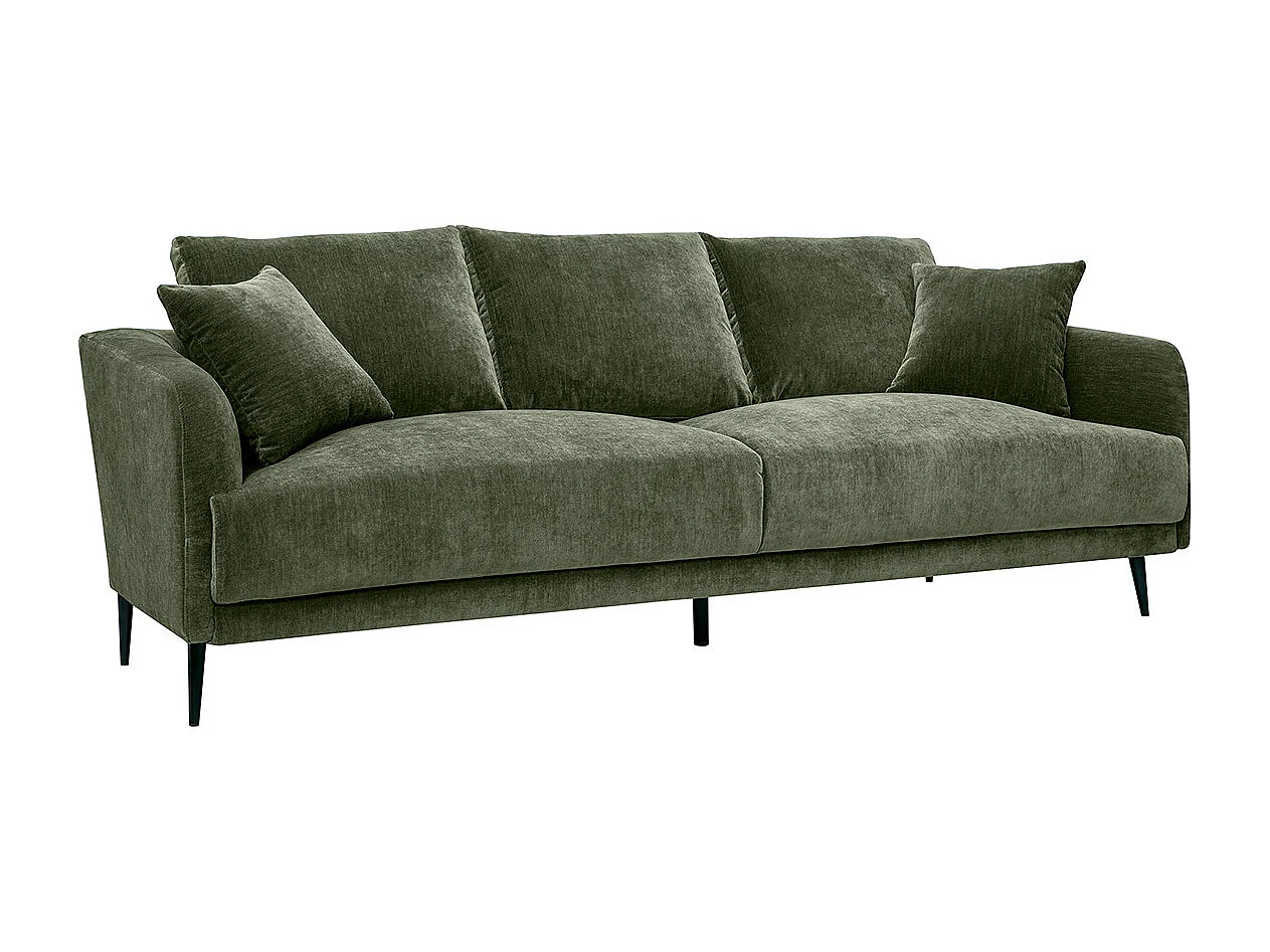 Sofá moderno 3 plazas de tejido efecto aterciopelado caqui y metal negro JERRY