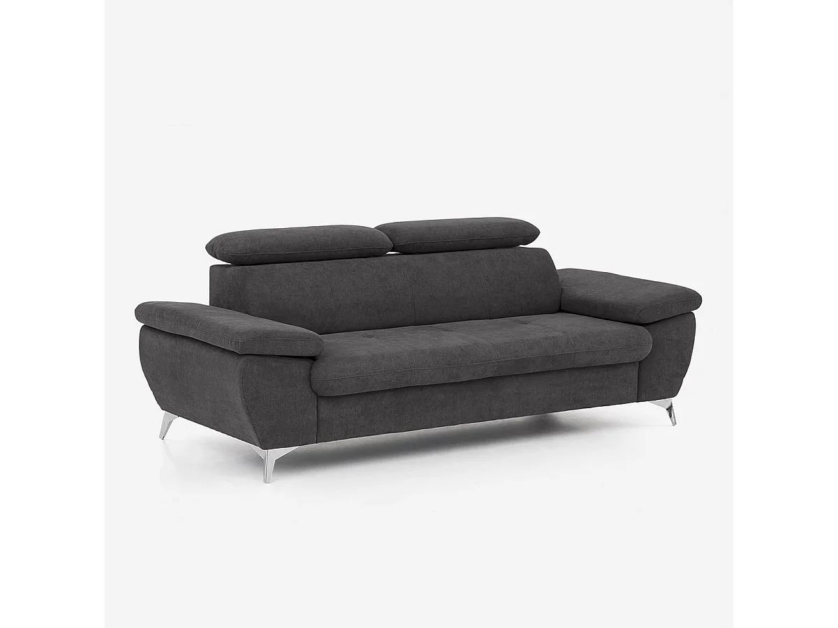 Sofá moderno de 3 plazas en tela con respaldo y reposabrazos ajustables Zana - Negro