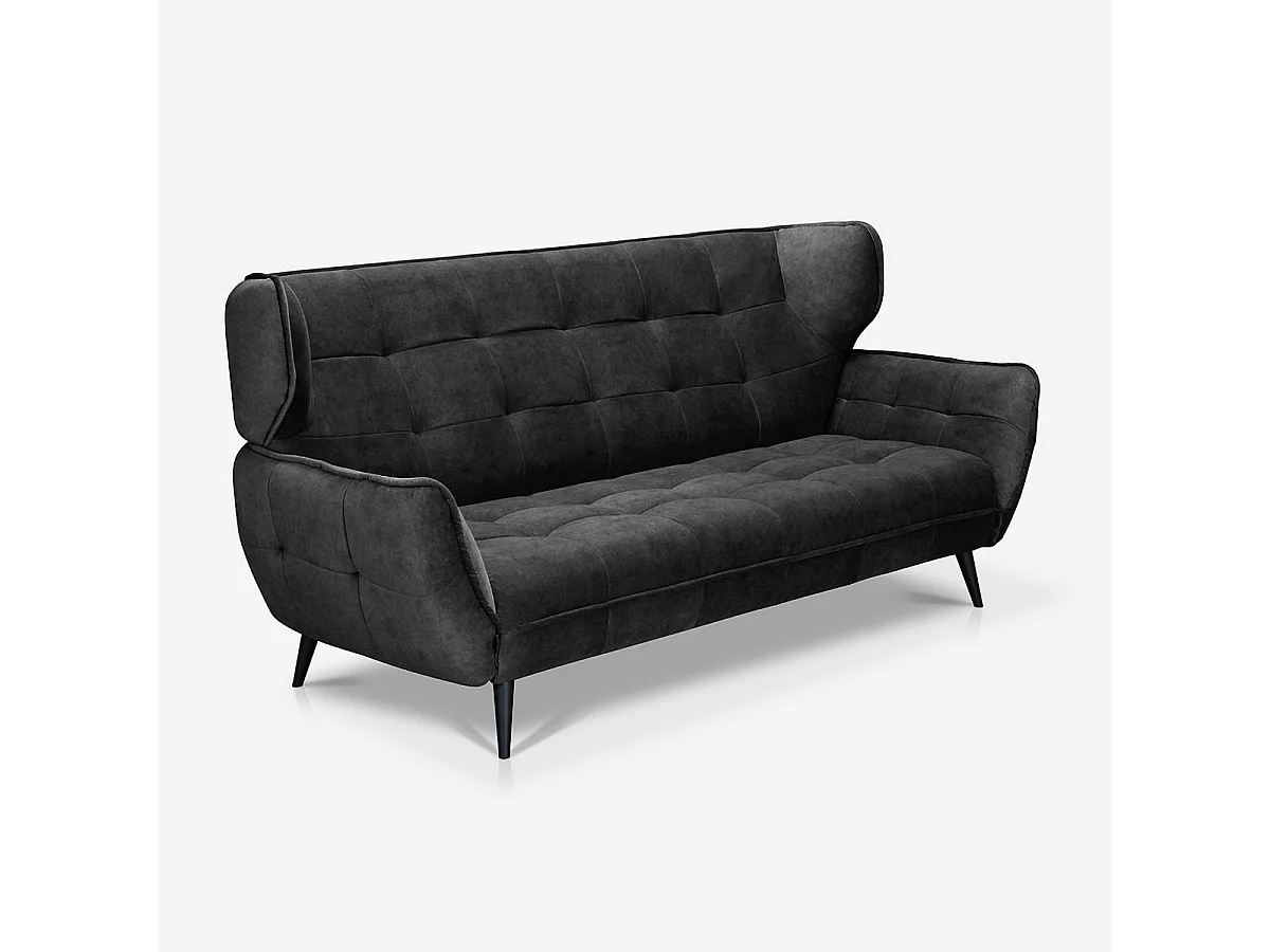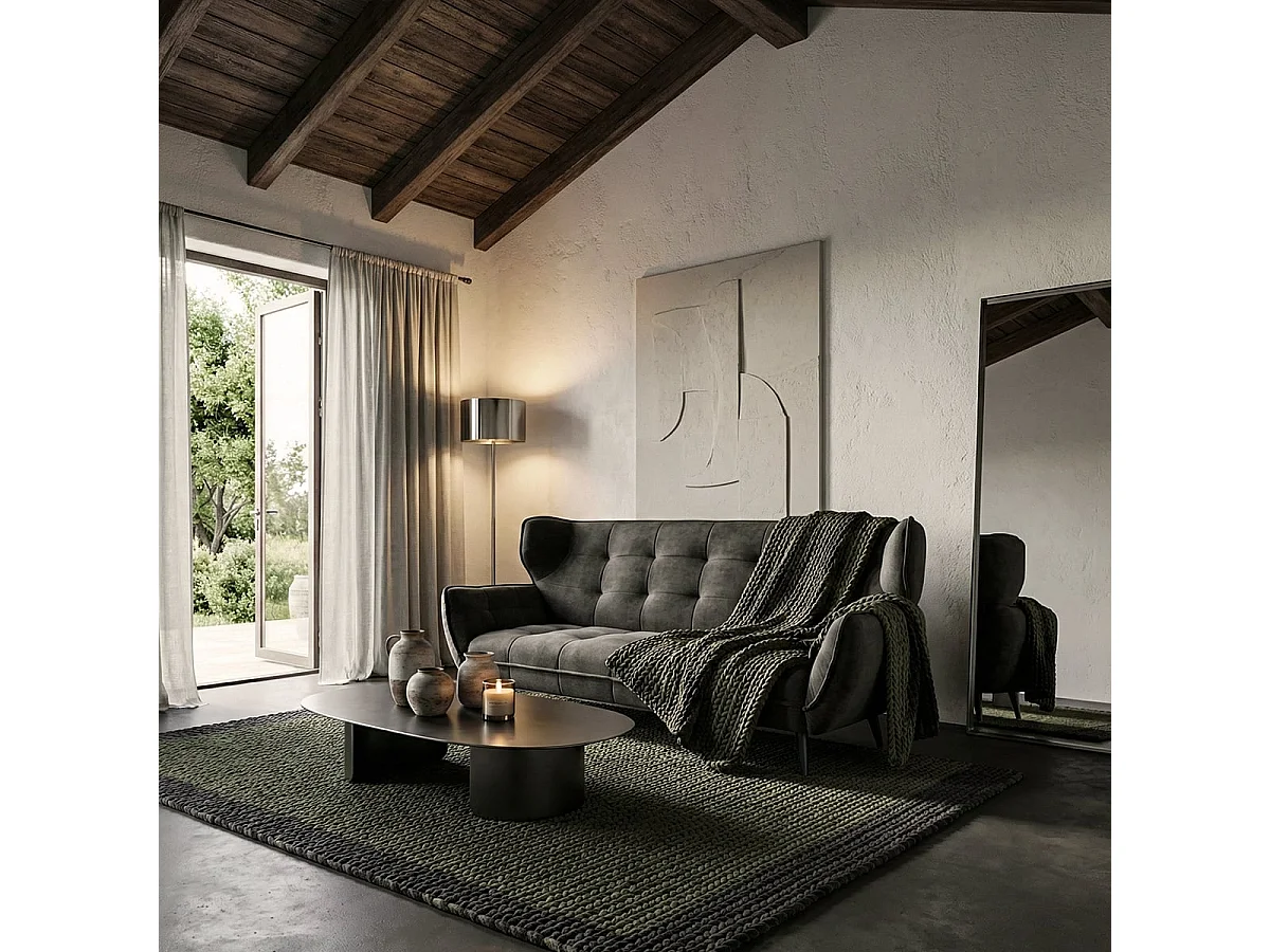Sofá moderno de 3 plazas en terciopelo estilo capitoné Buran - Antracita