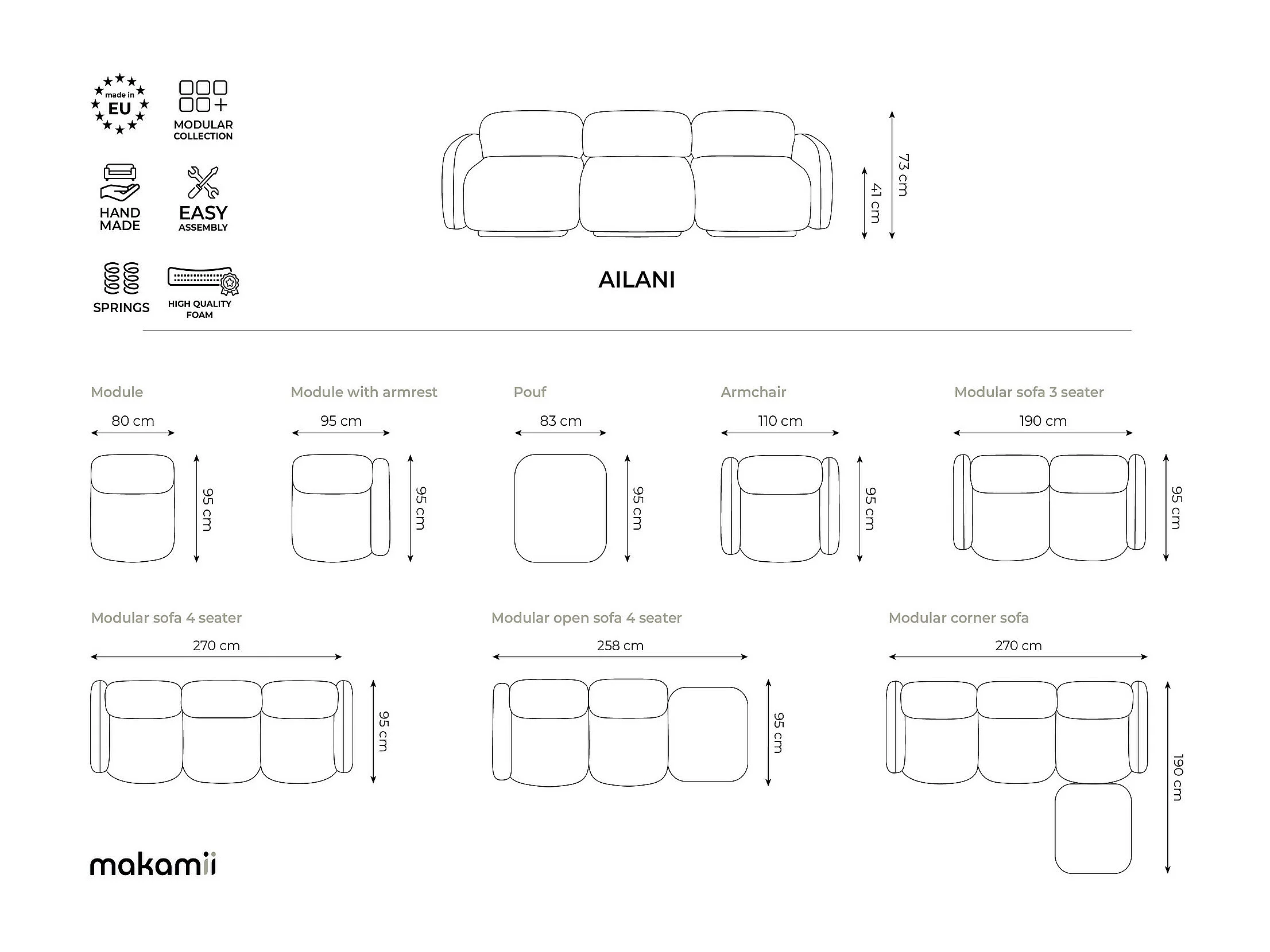 Sofá modular 3 plazas derecho de tela chenilla plata - AILANI