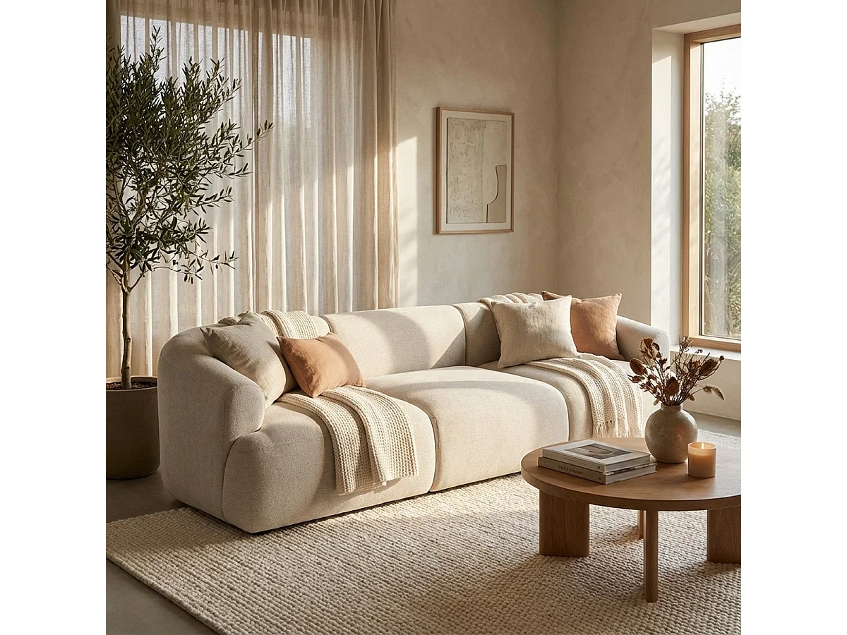 Sofa modular curvo de 3 plazas por módulos de tela beige Yuna-3