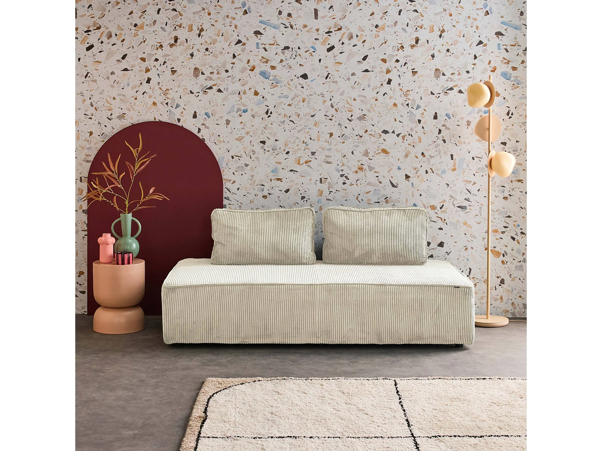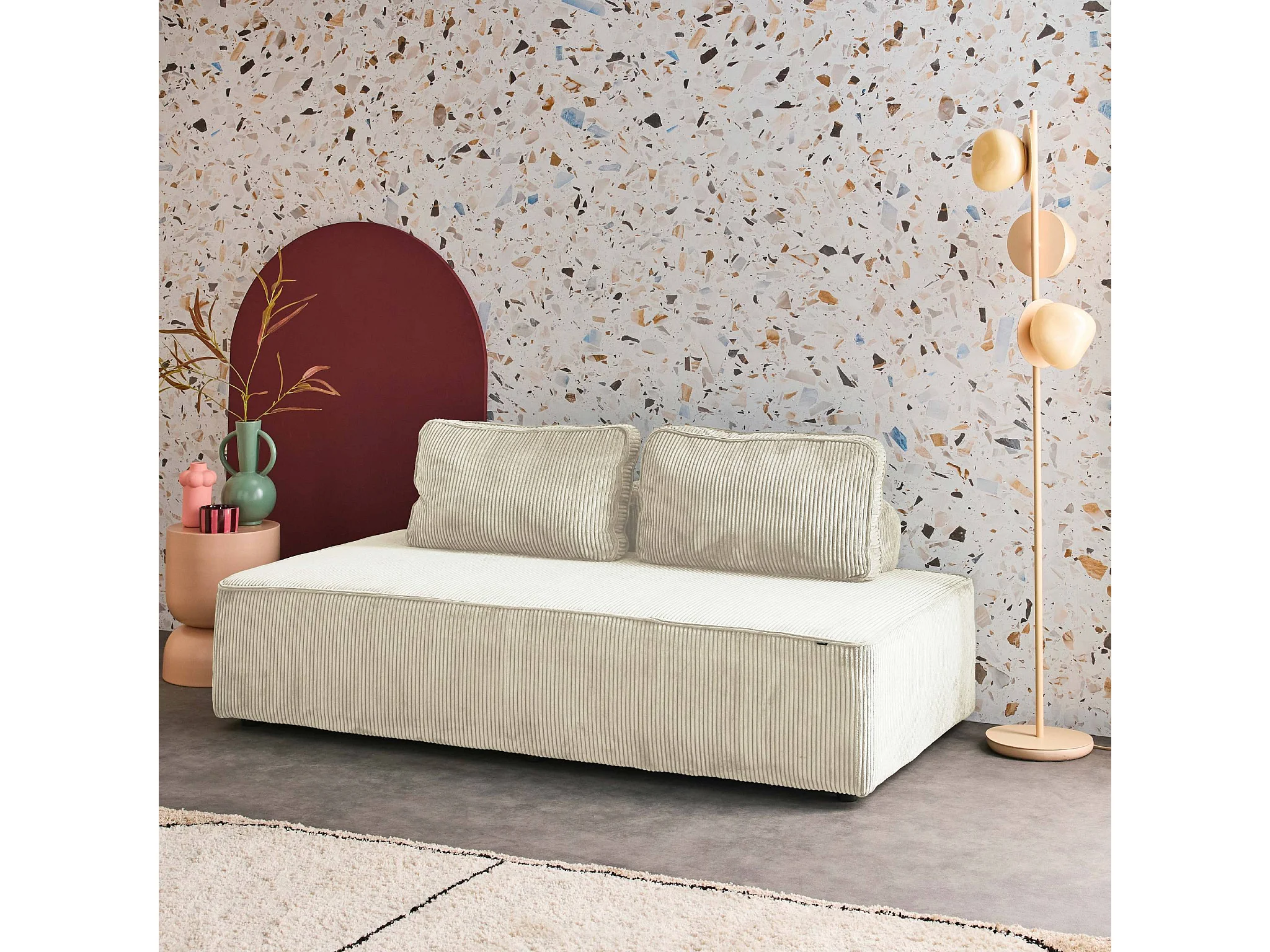 Sofá modular de pana, 2 plazas crema