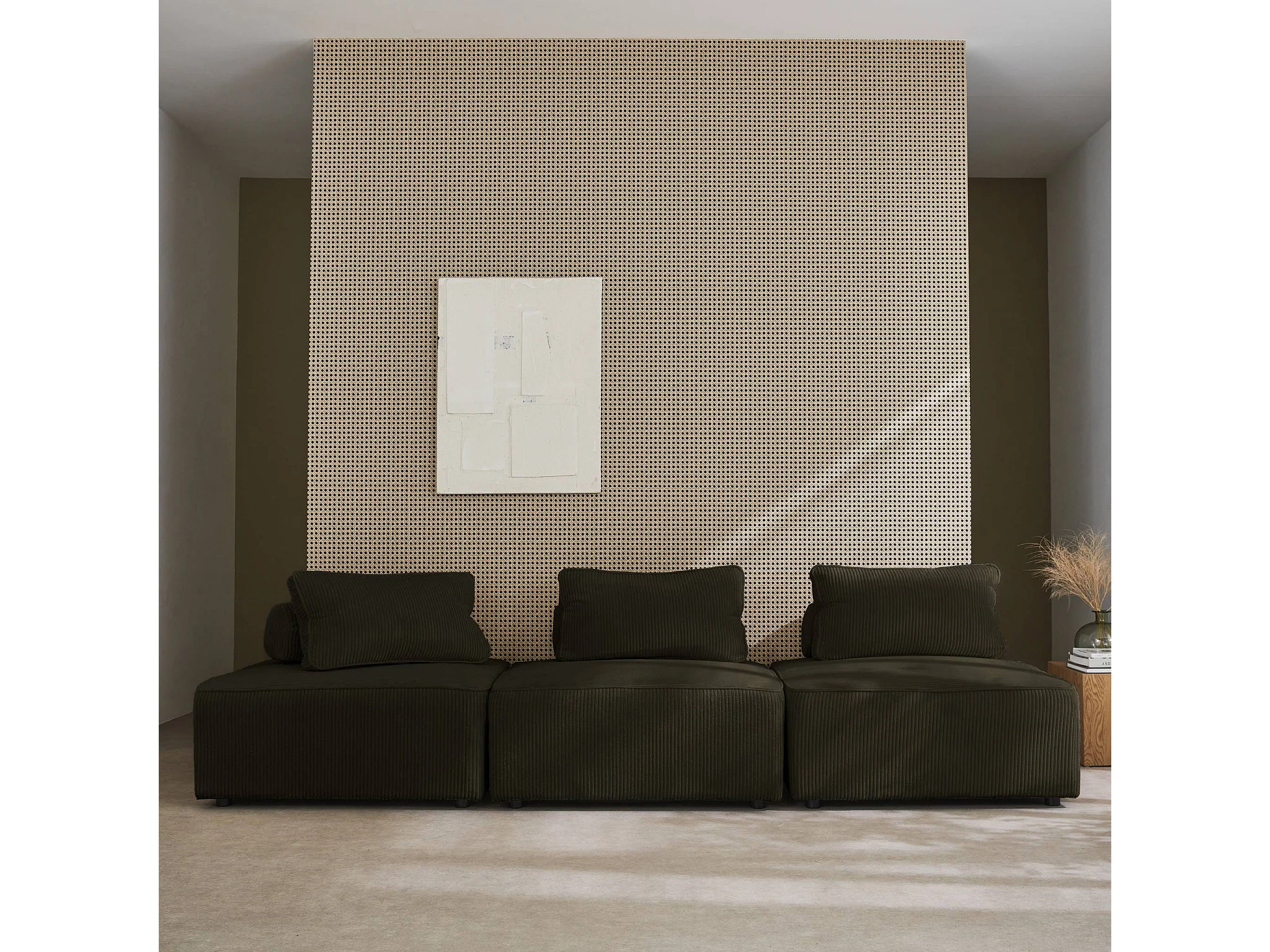 Sofá modular de pana, 3 plazas verde oscuro