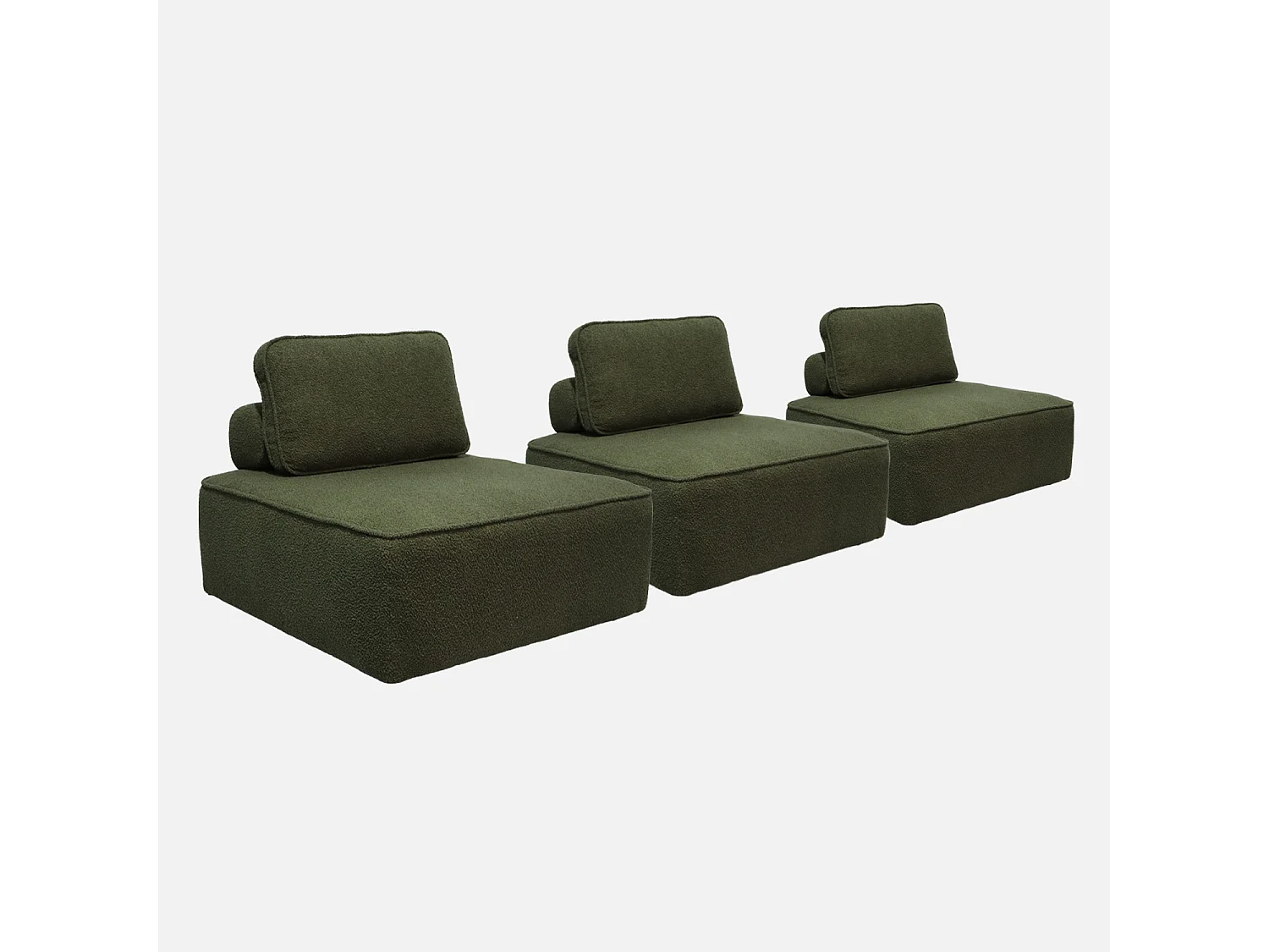 Sofá modular en tejido borreguito, 3 plazas verde kaki