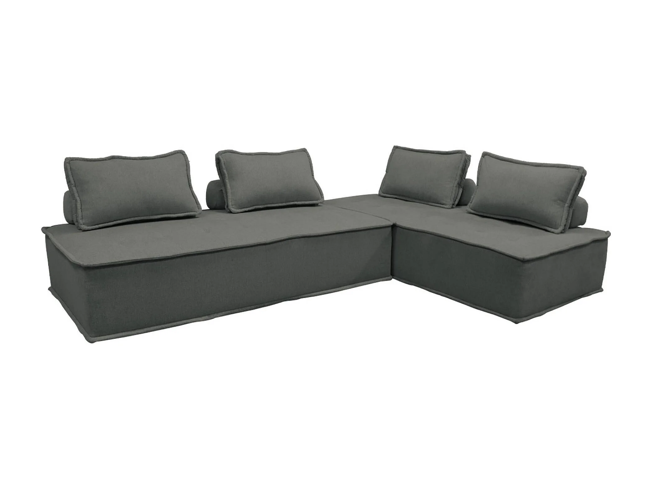 Sofá modular en tela lisa, 4 plazas gris oscuro