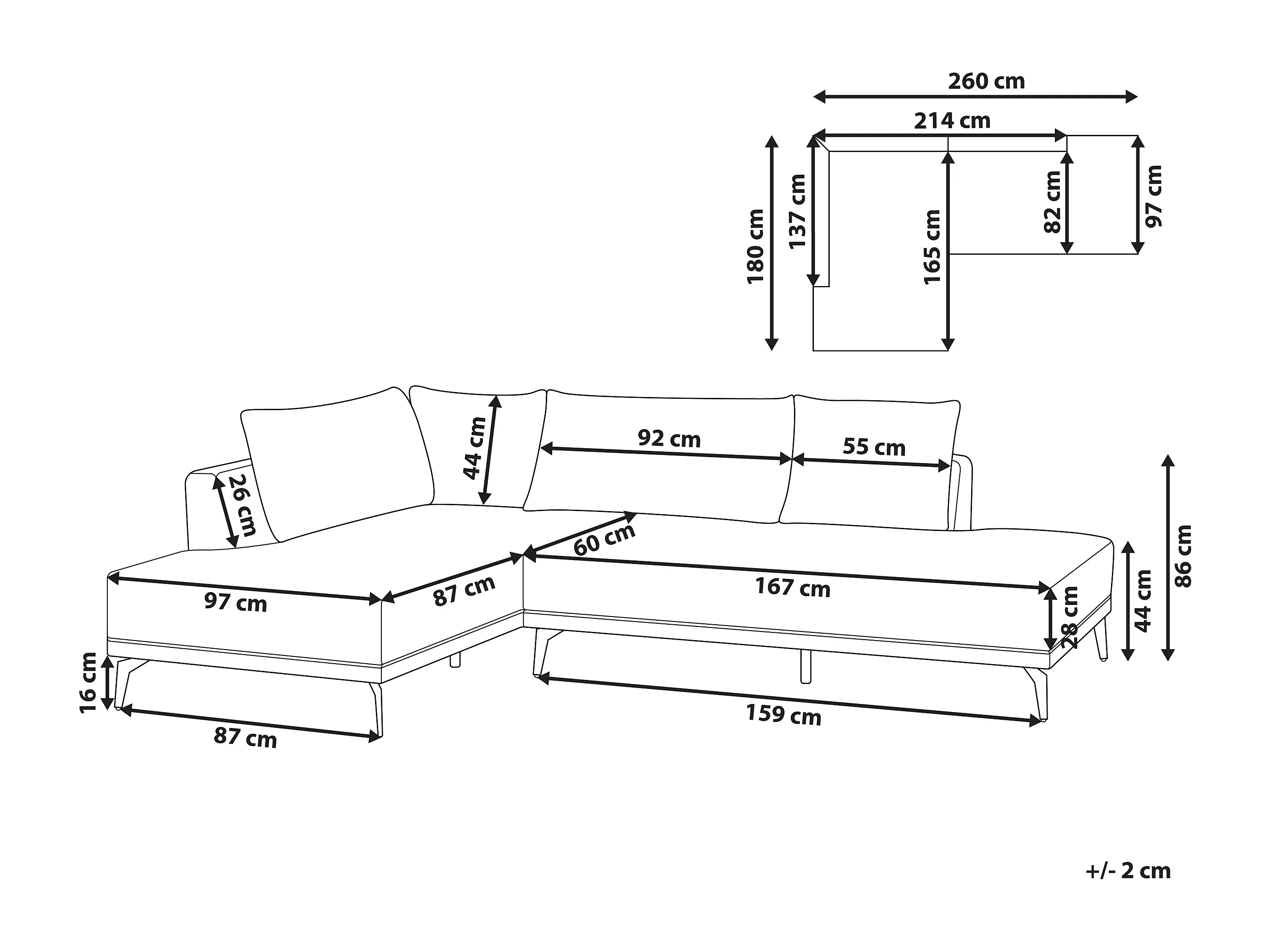 Sofá esquinero MYKEN Tela Blanco crema 3 plazas Derecha