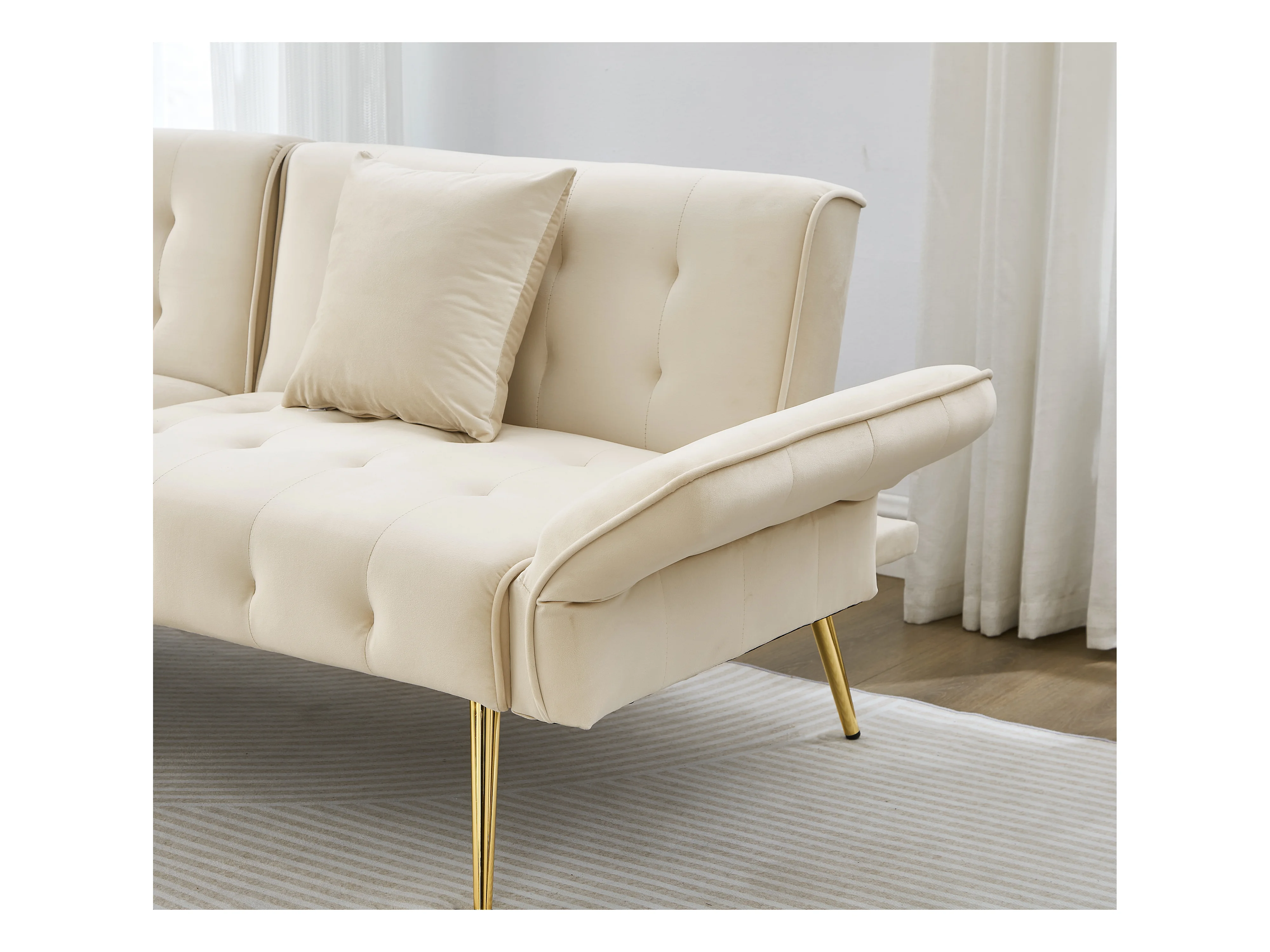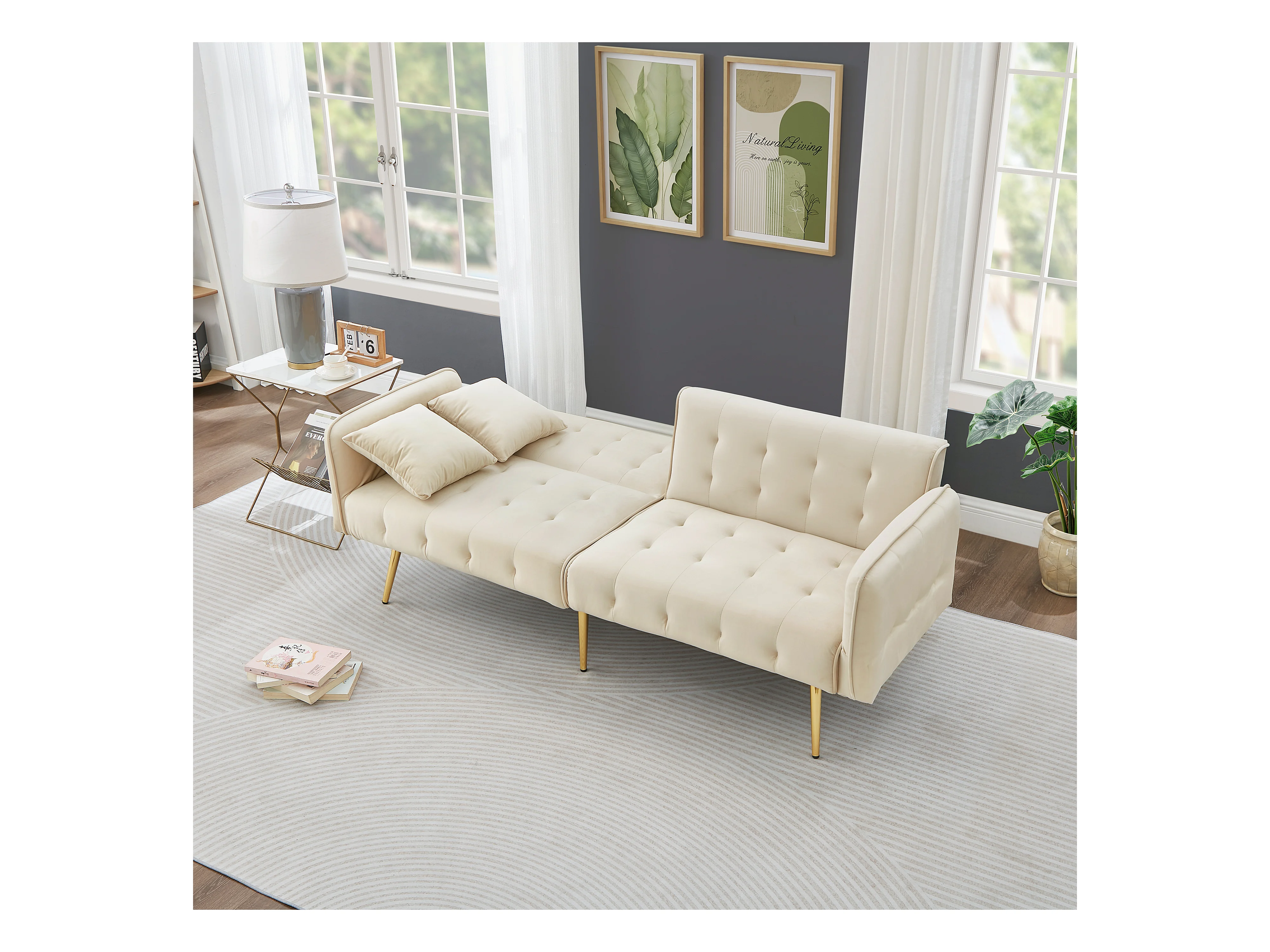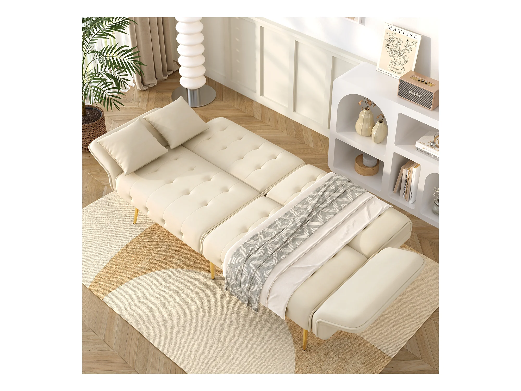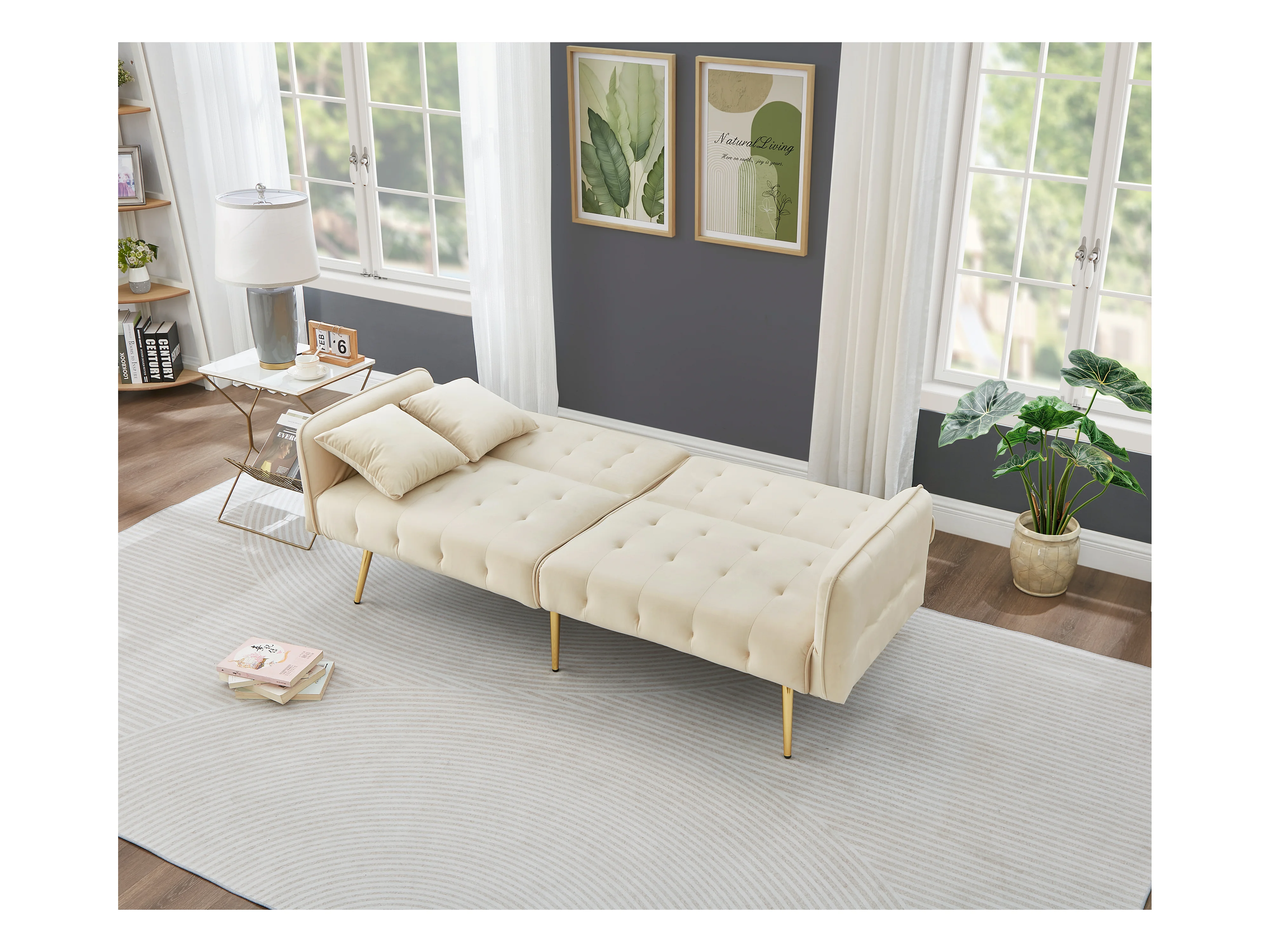 Sofá multifunción de 2 plazas - Respaldo ajustable - Reposabrazos ajustables - Terciopelo - Beige