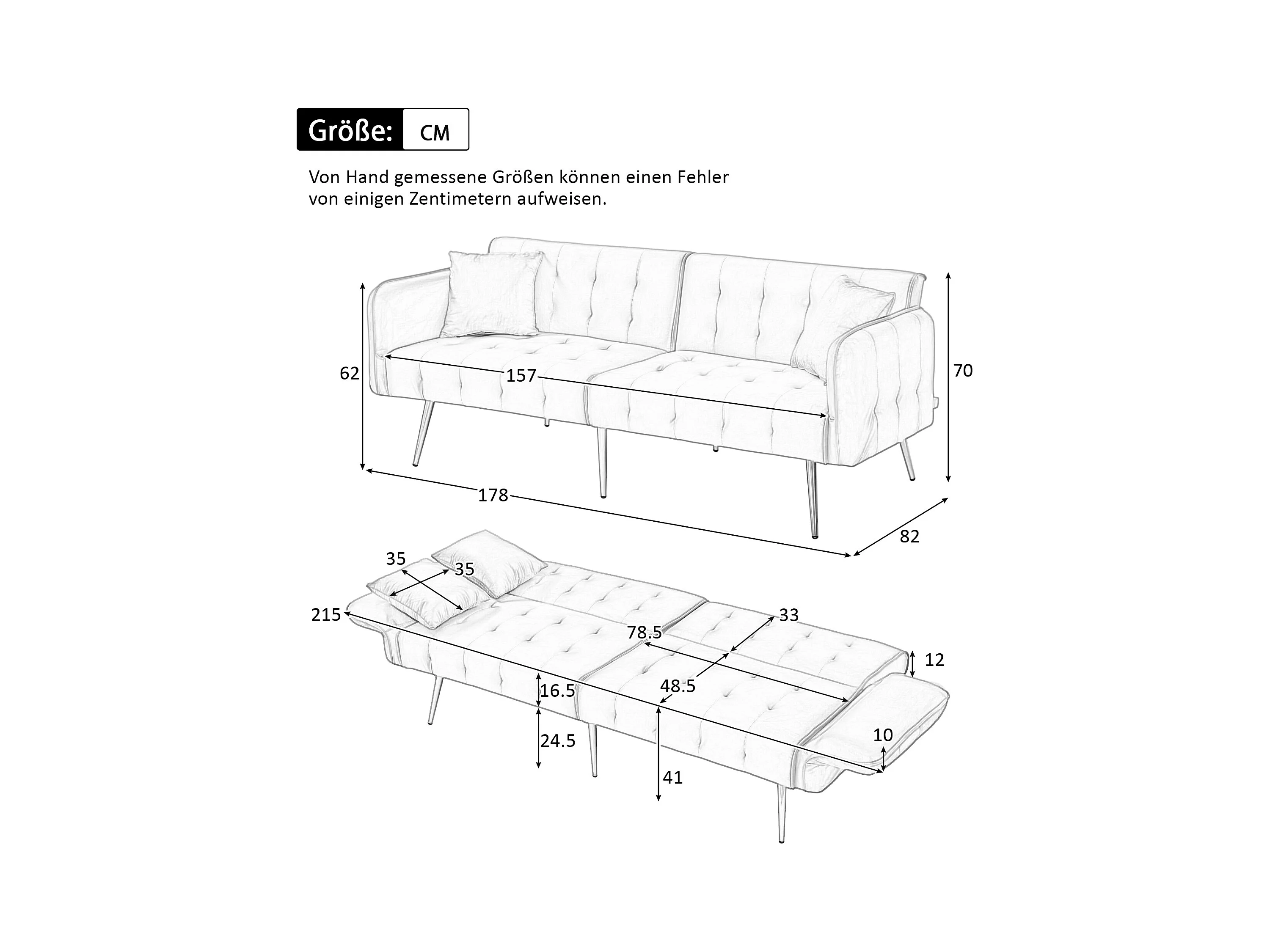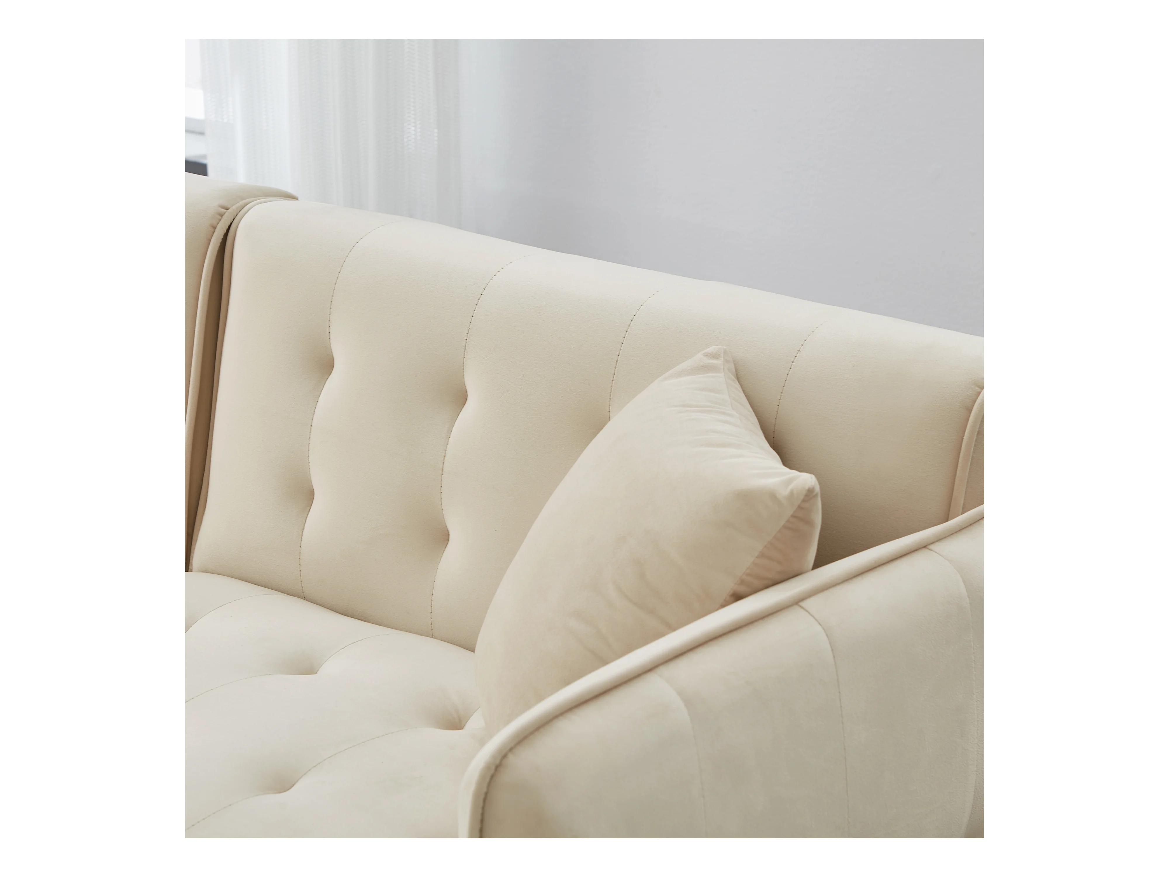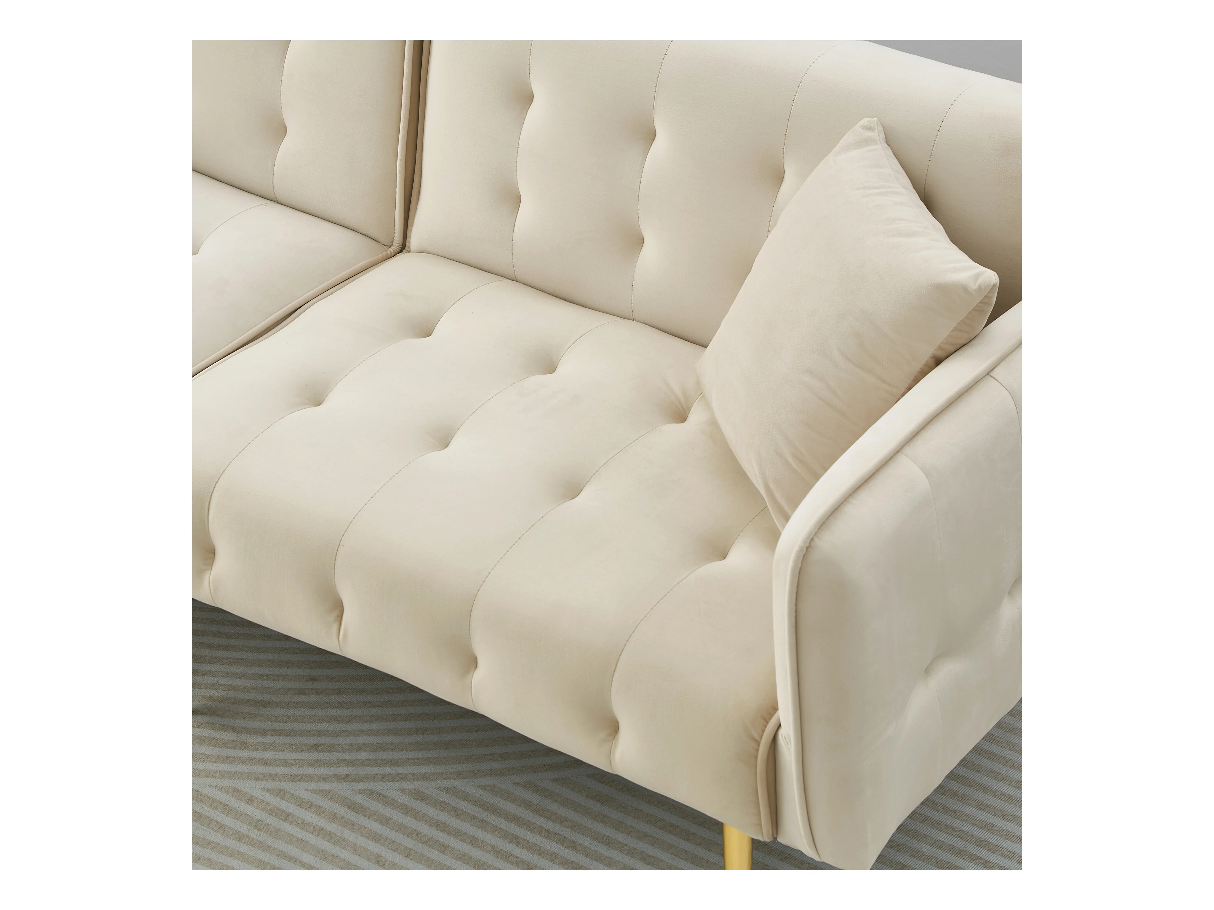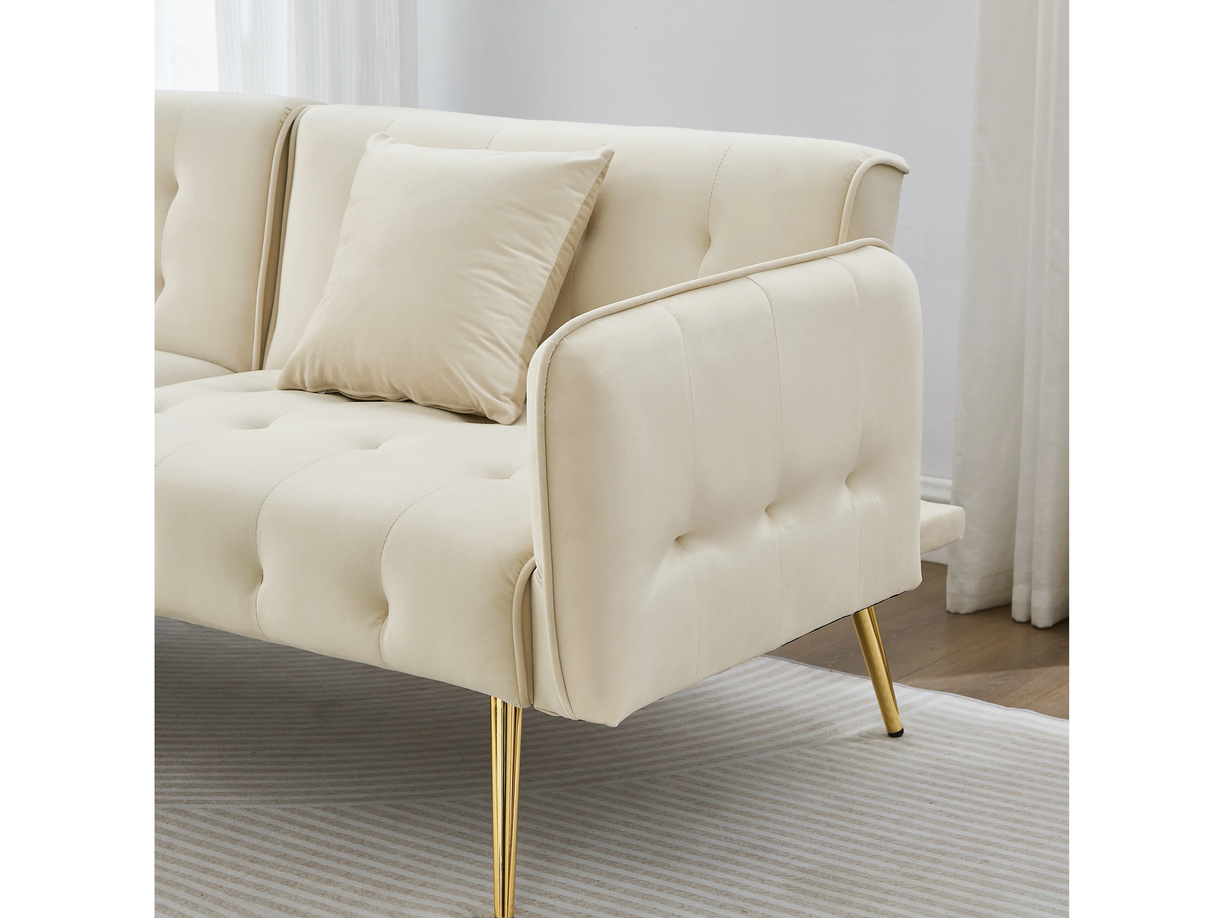 Sofá multifunción de 2 plazas - Respaldo ajustable - Reposabrazos ajustables - Terciopelo - Beige