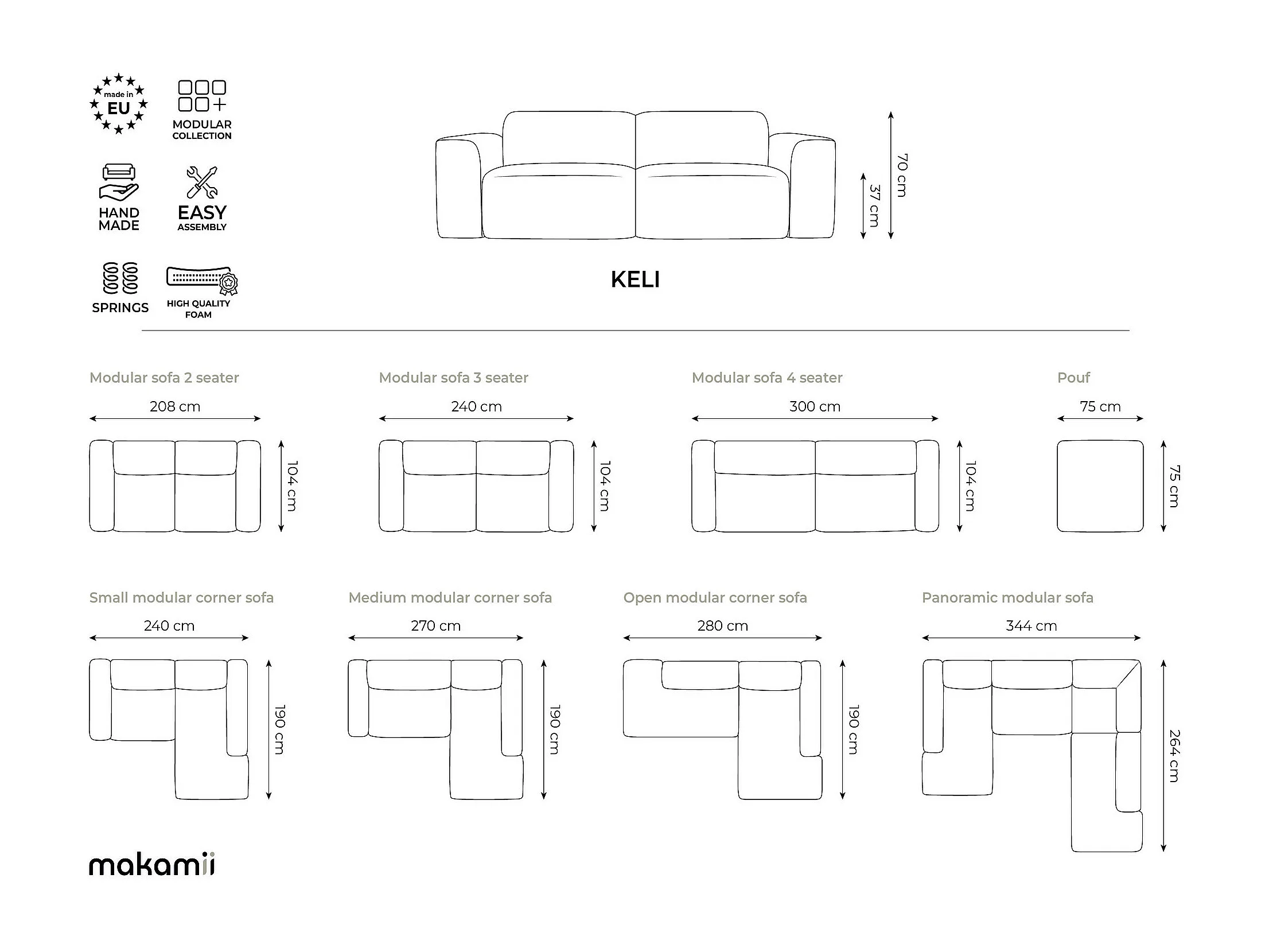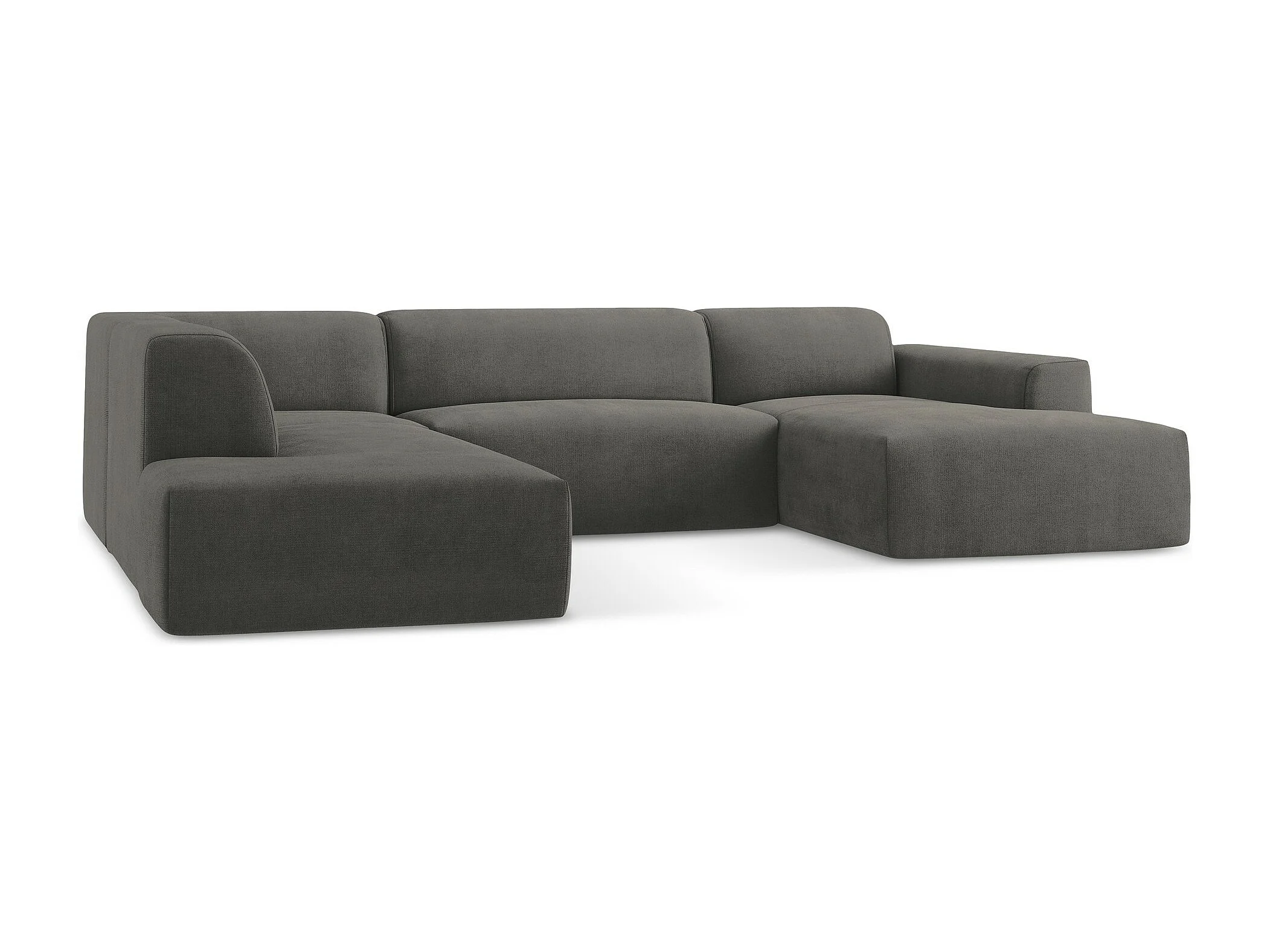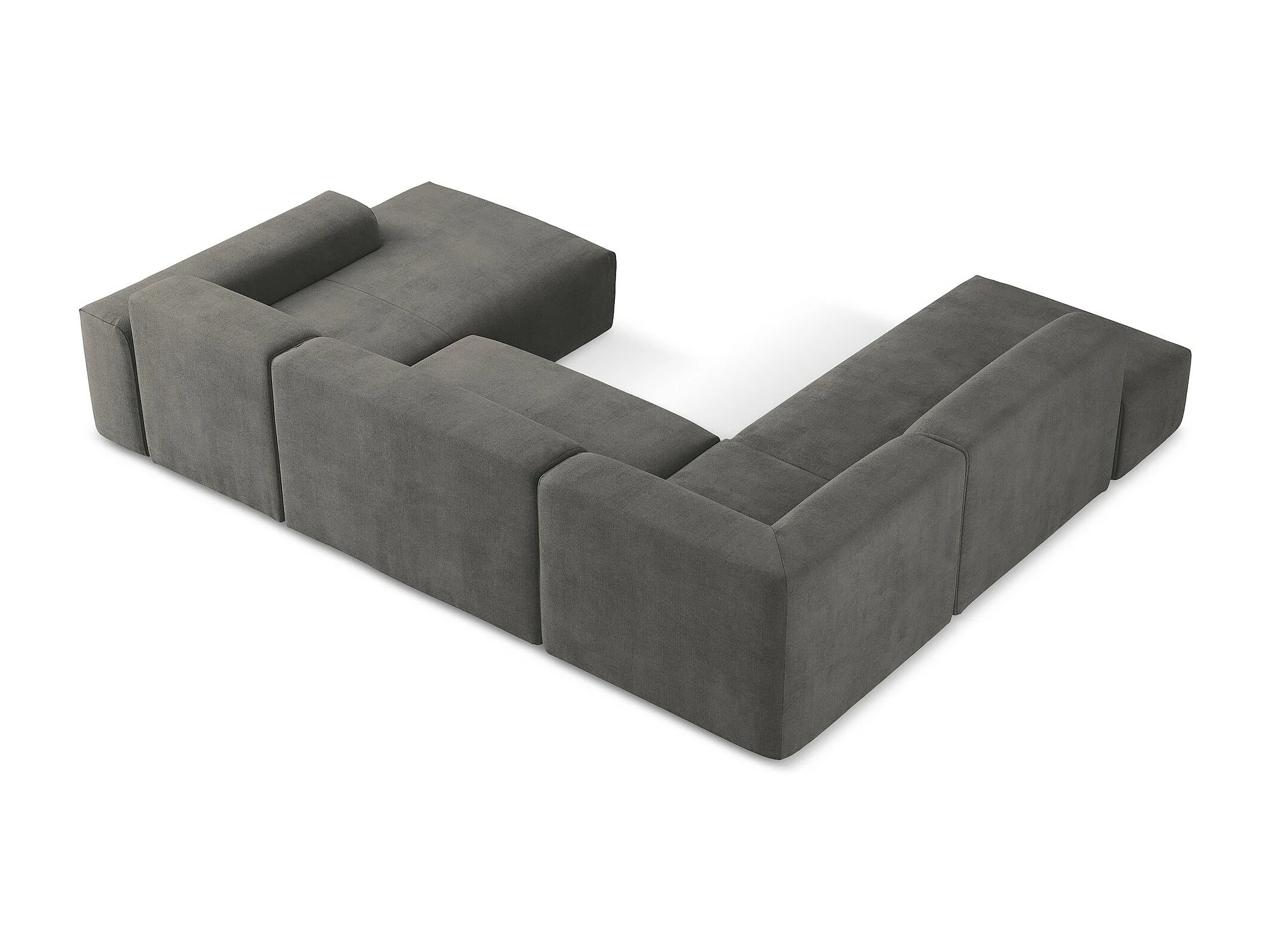Sofá panorámico 5 plazas iziquierdo de tela texturizada gris oscuro - KELI