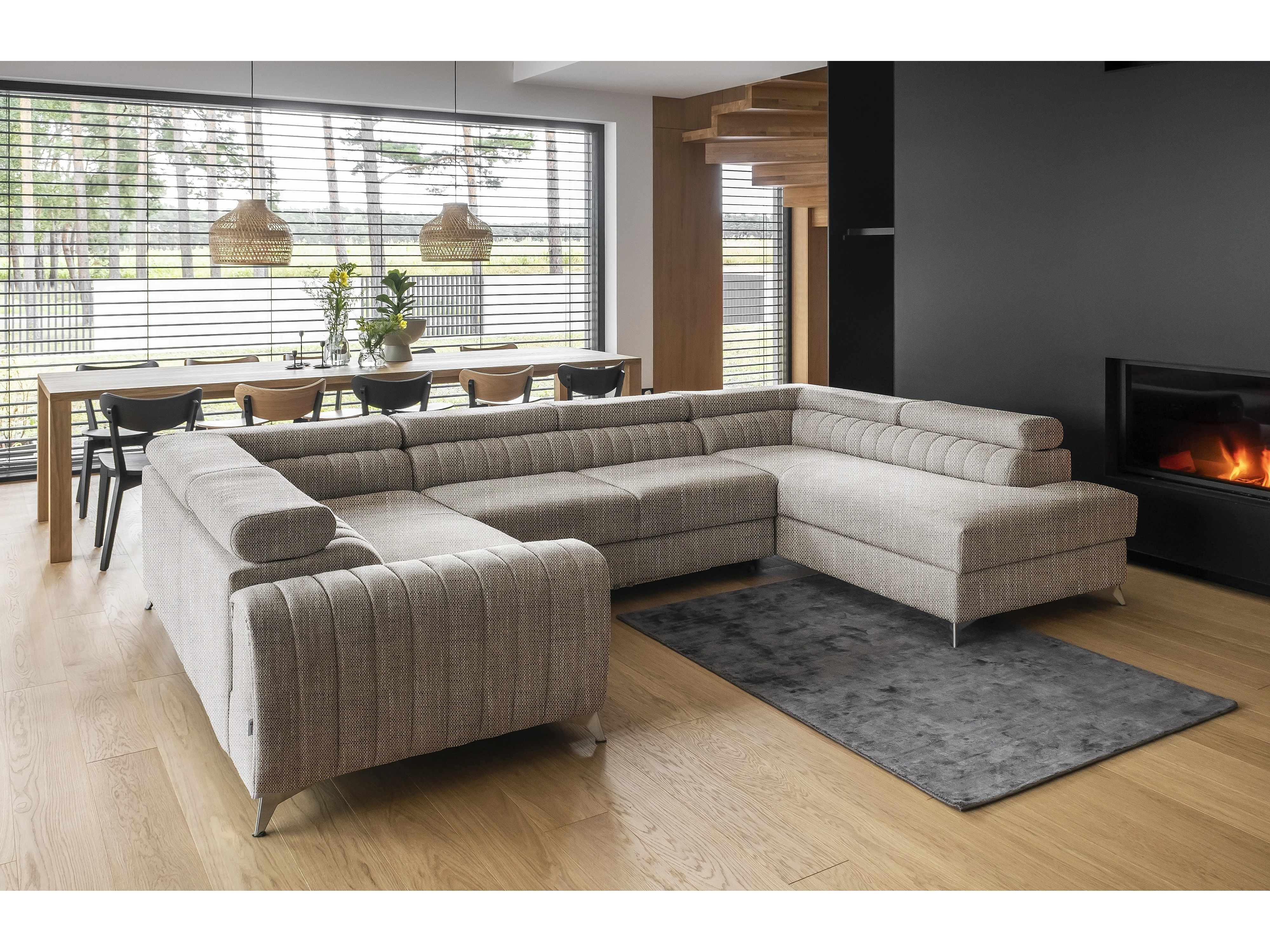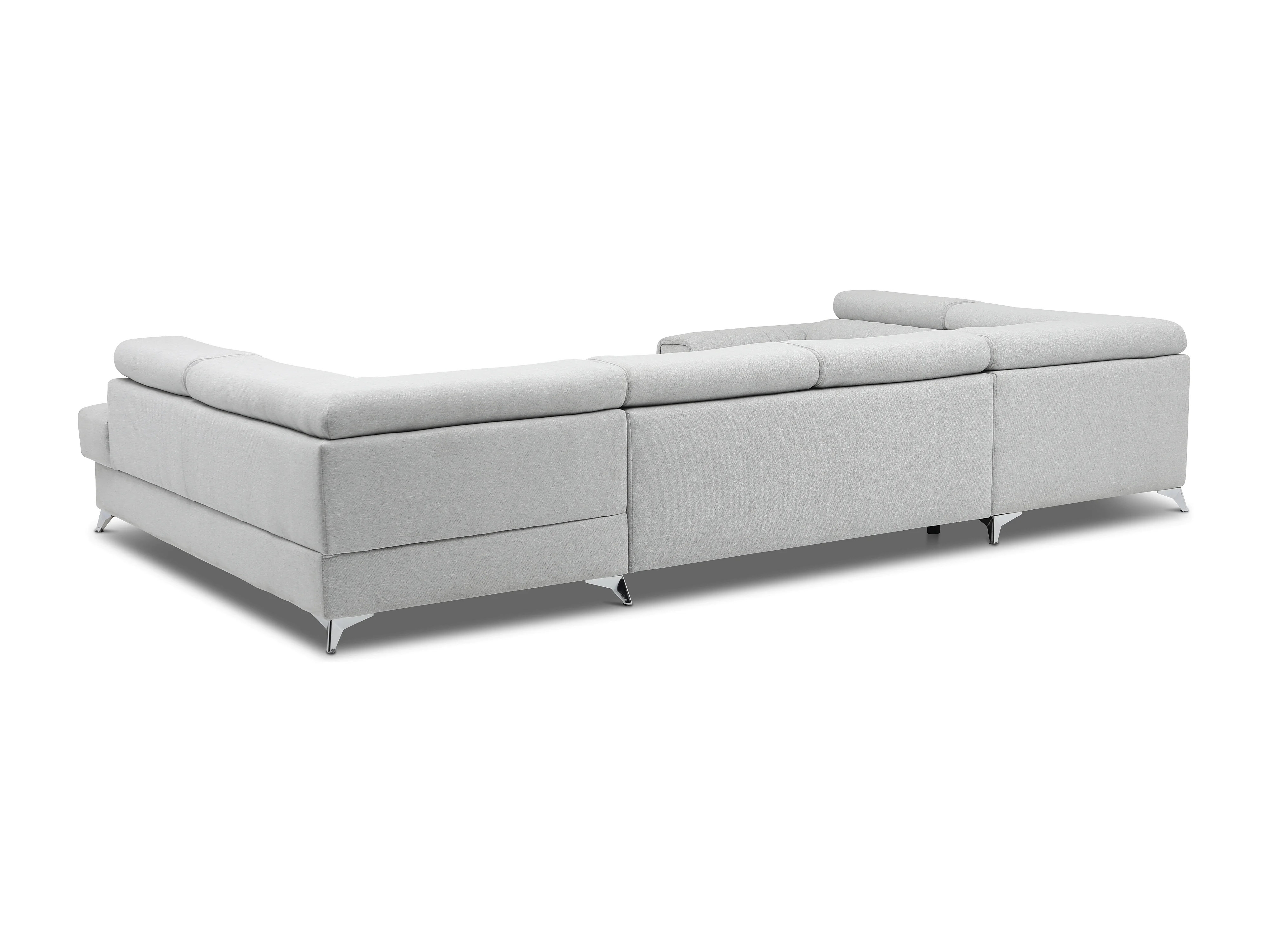 Sofá panorámico convertible de tela LOUVE - Almacenamiento y reposacabezas ajustables-Beige jaspeado-Caja Lado derecho