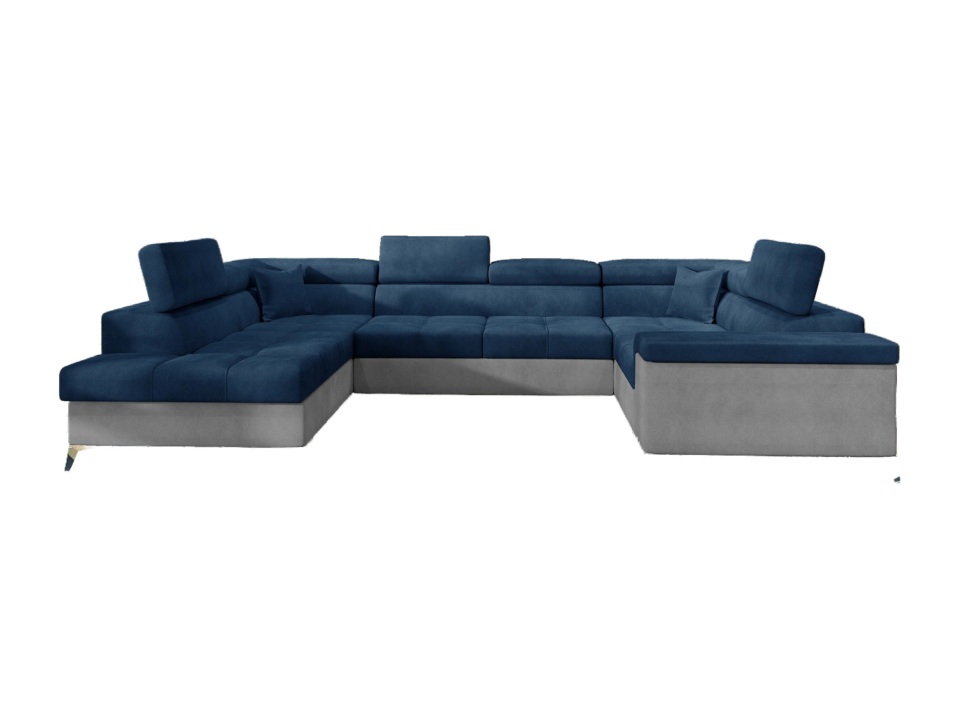 Sofá panorámico convertible TRIANO en terciopelo, con almacenaje y reposacabezas ajustables-Gris claro/Azul-Caja Lado izquierdo