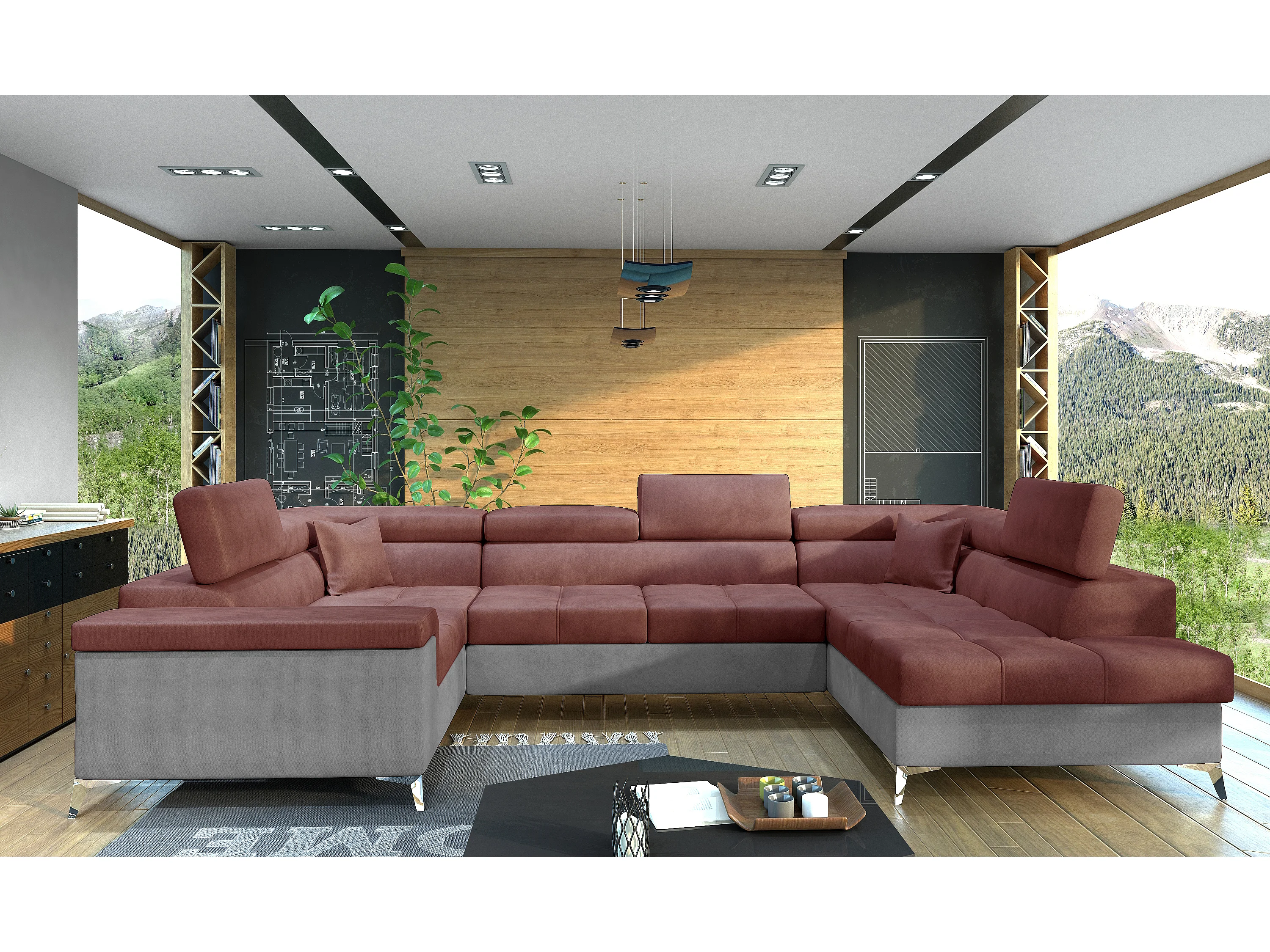 Sofá panorámico convertible TRIANO en terciopelo, con almacenaje y reposacabezas ajustables-Gris claro/Rosa cobre-Caja Lado derecho
