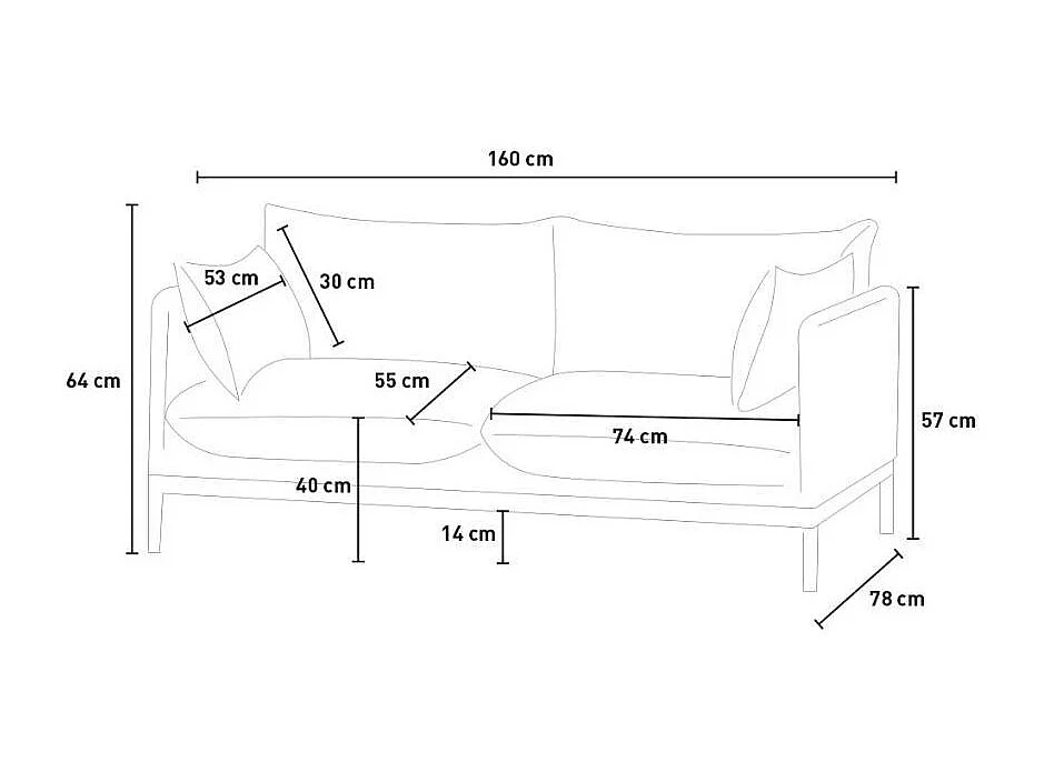 Sofá para el salón de 2 plazas moderno de tela gris tapizado Bonn