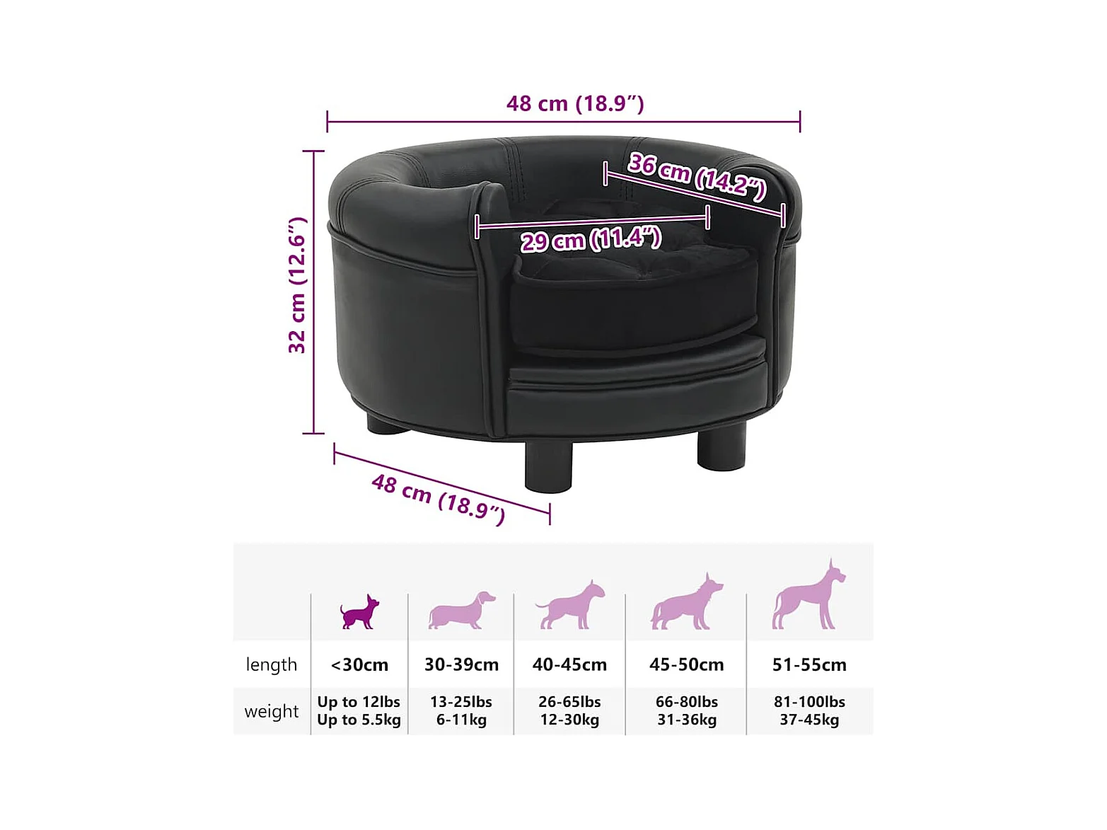 Sofá Perro Negro 48x48x32 cm Peluche y Piel Sintética